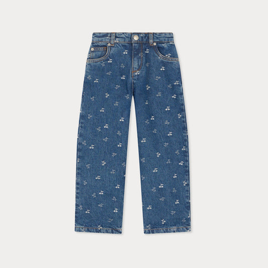 女童蓝色樱桃Logo牛仔裤