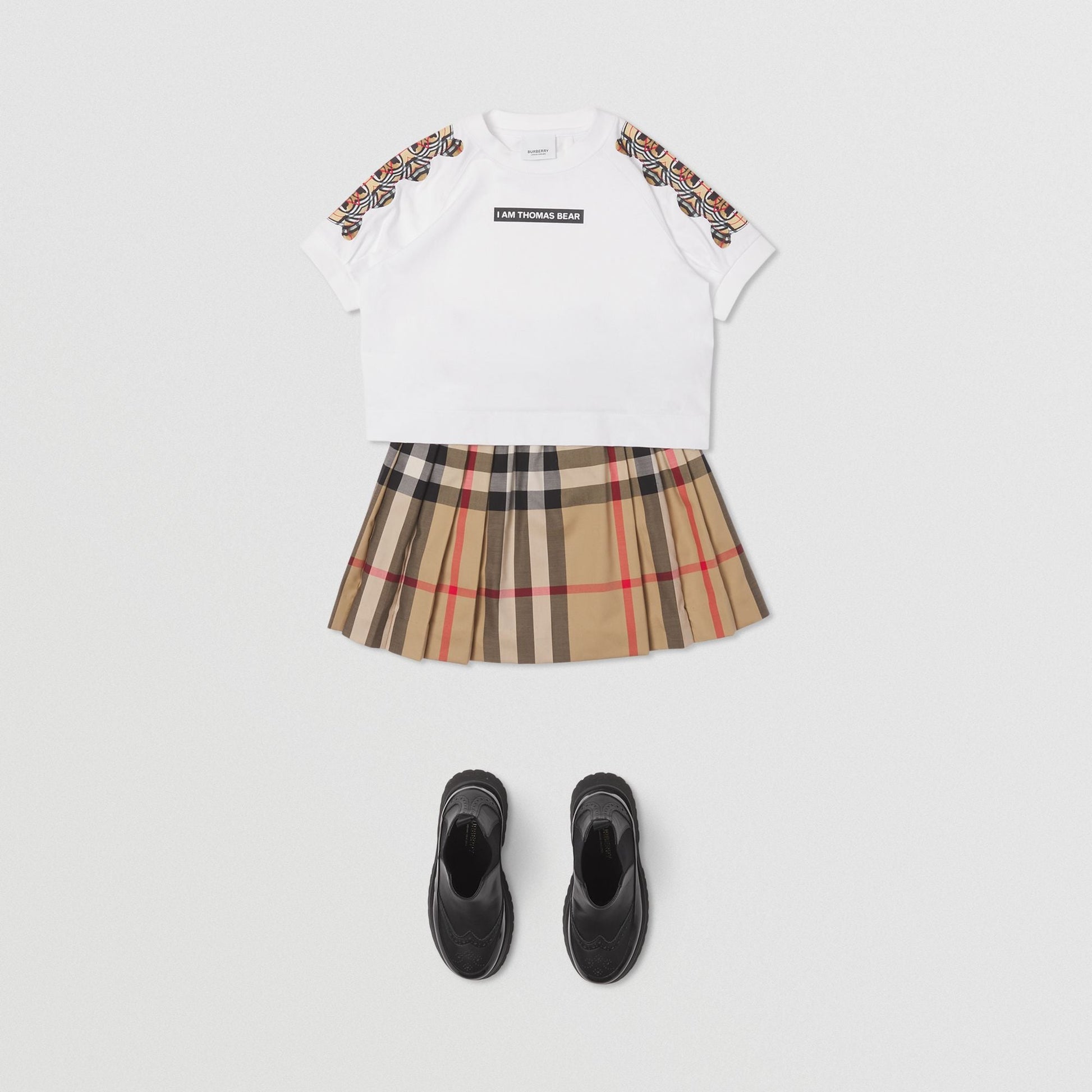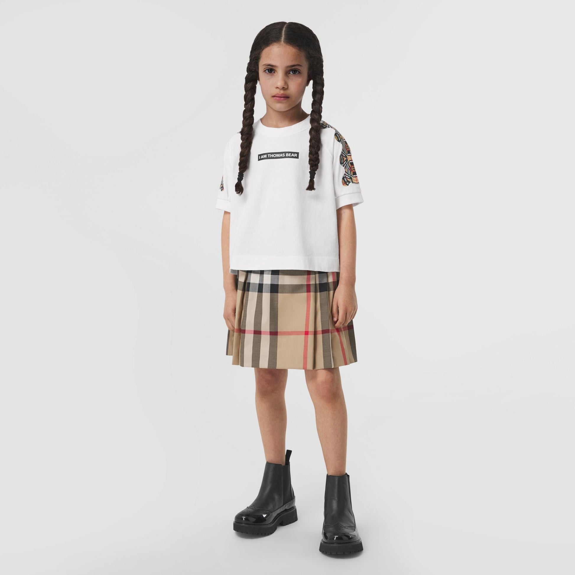 女童米色格子棉短裙