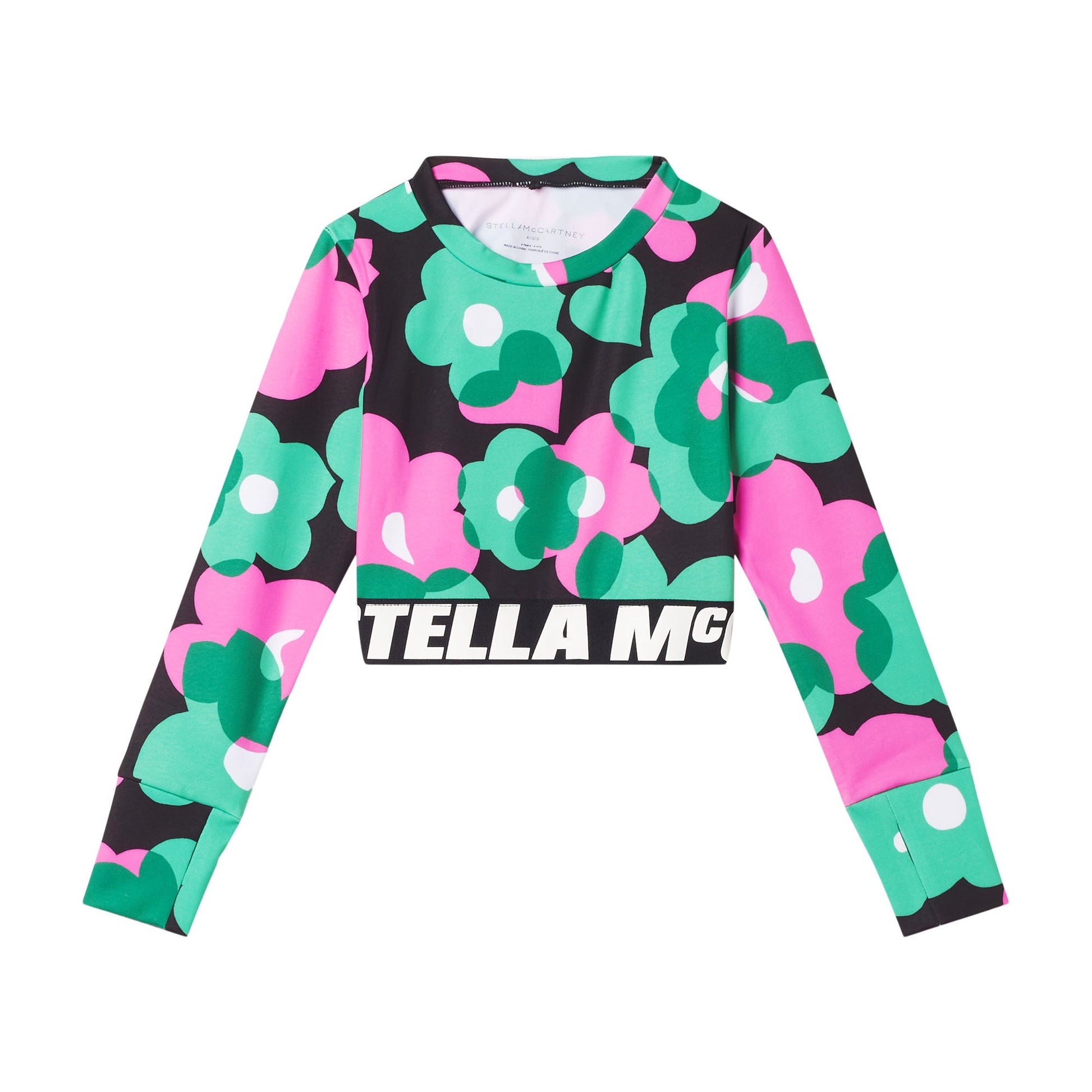 女童绿色花朵运动T恤