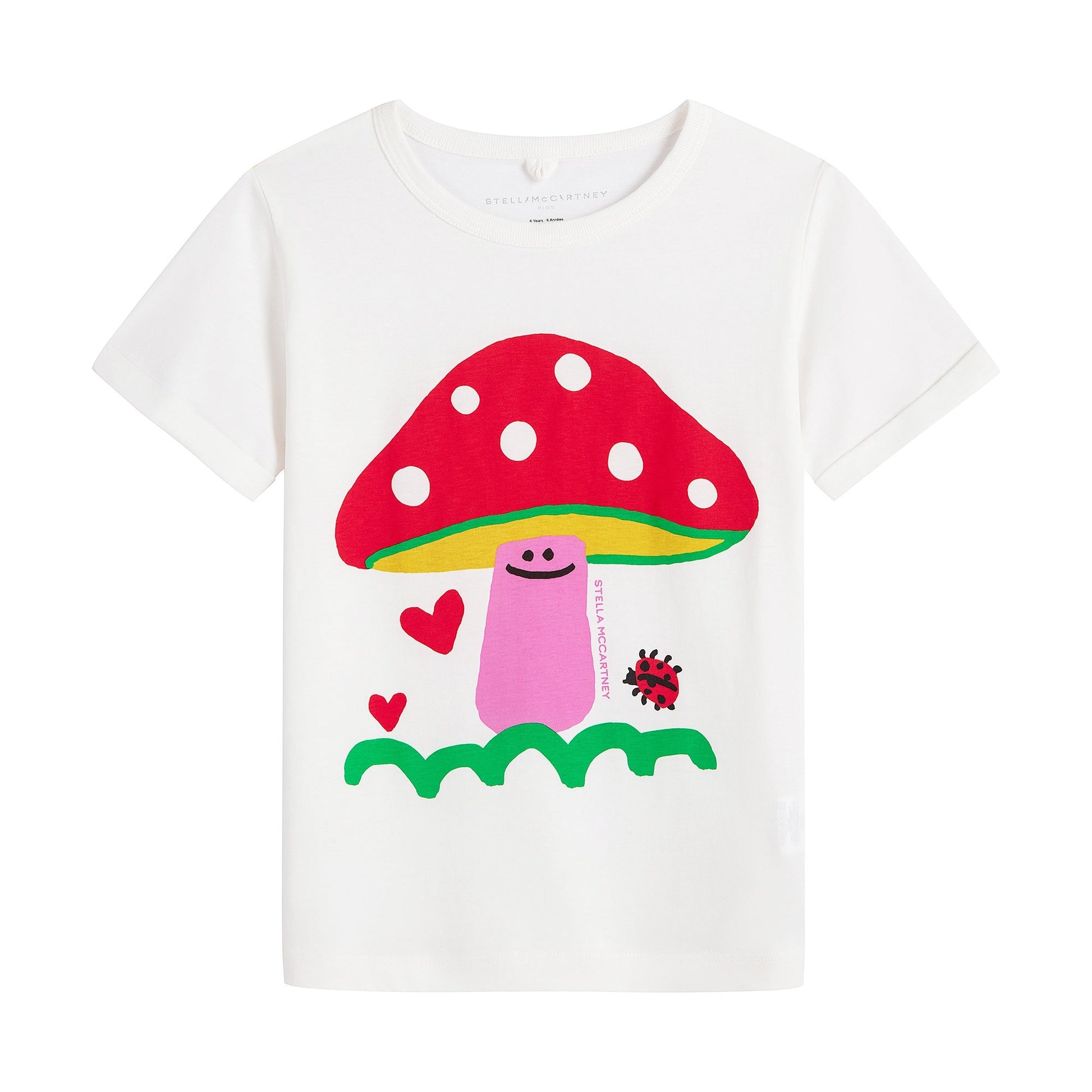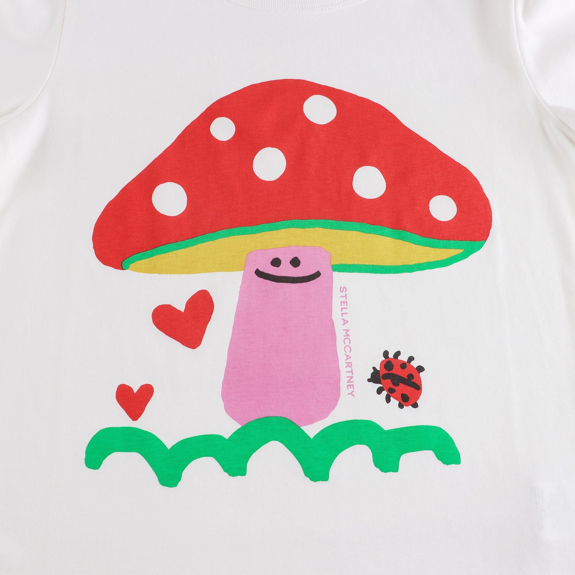 女童白色蘑菇印花棉T恤
