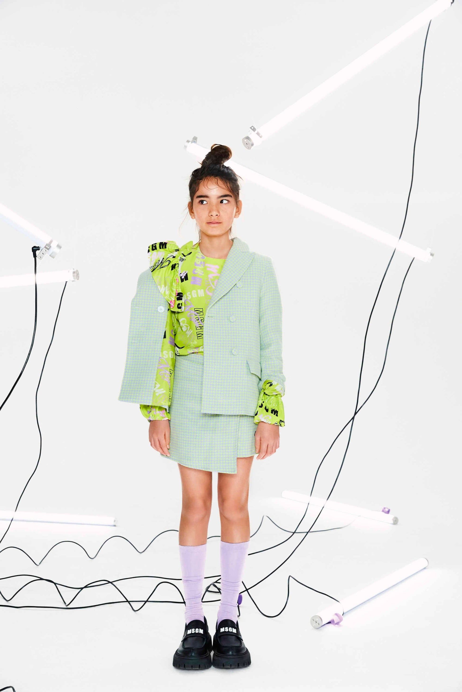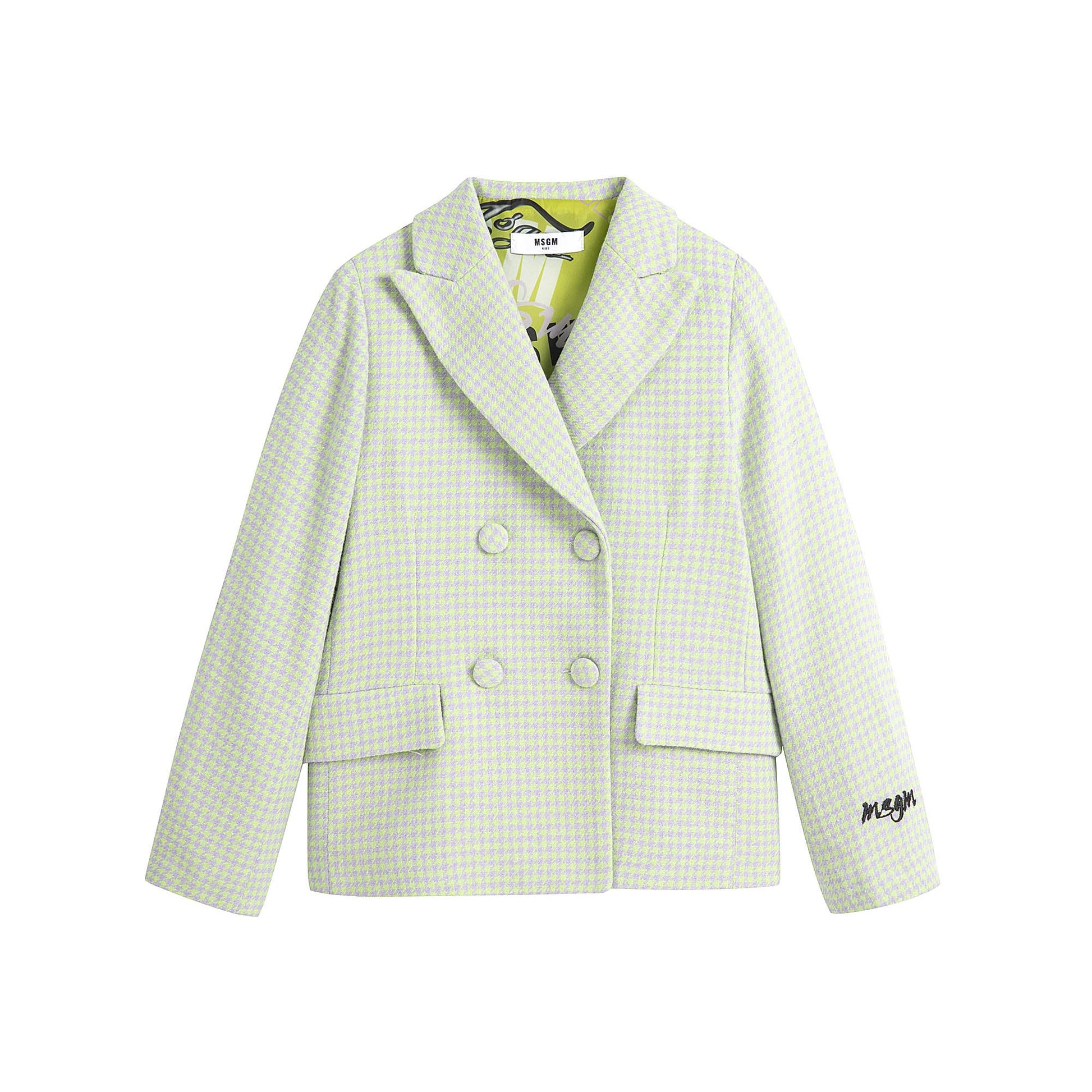 女童绿色格子西服外套