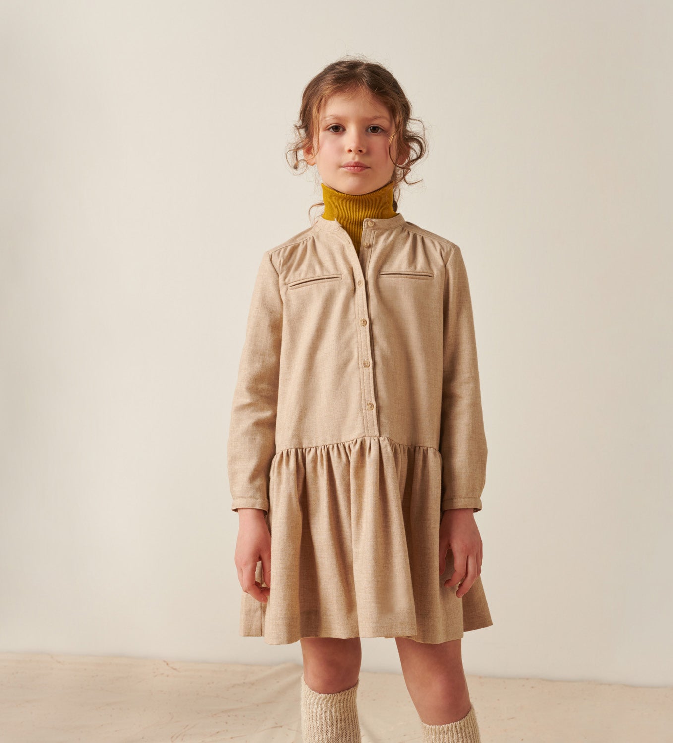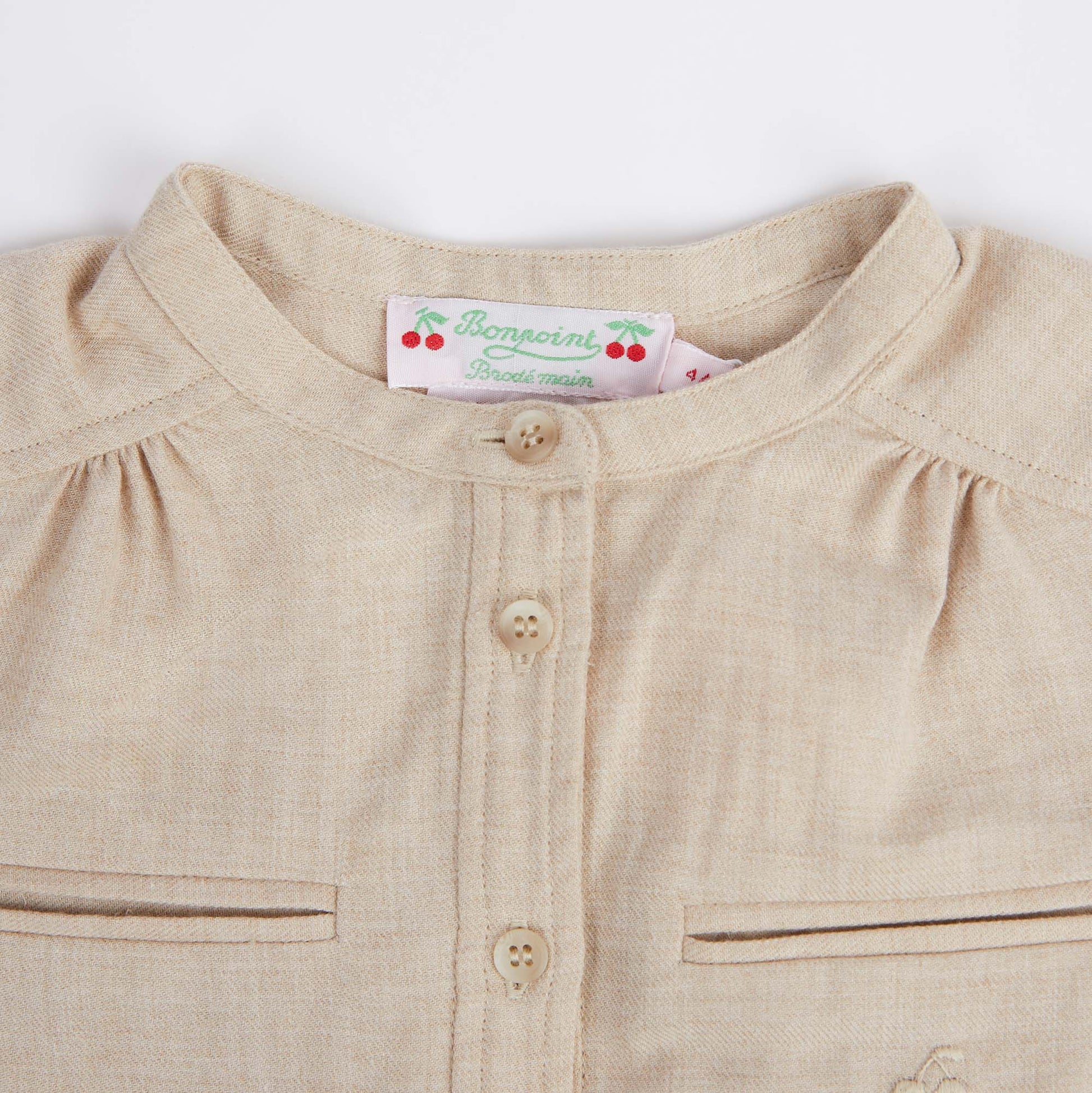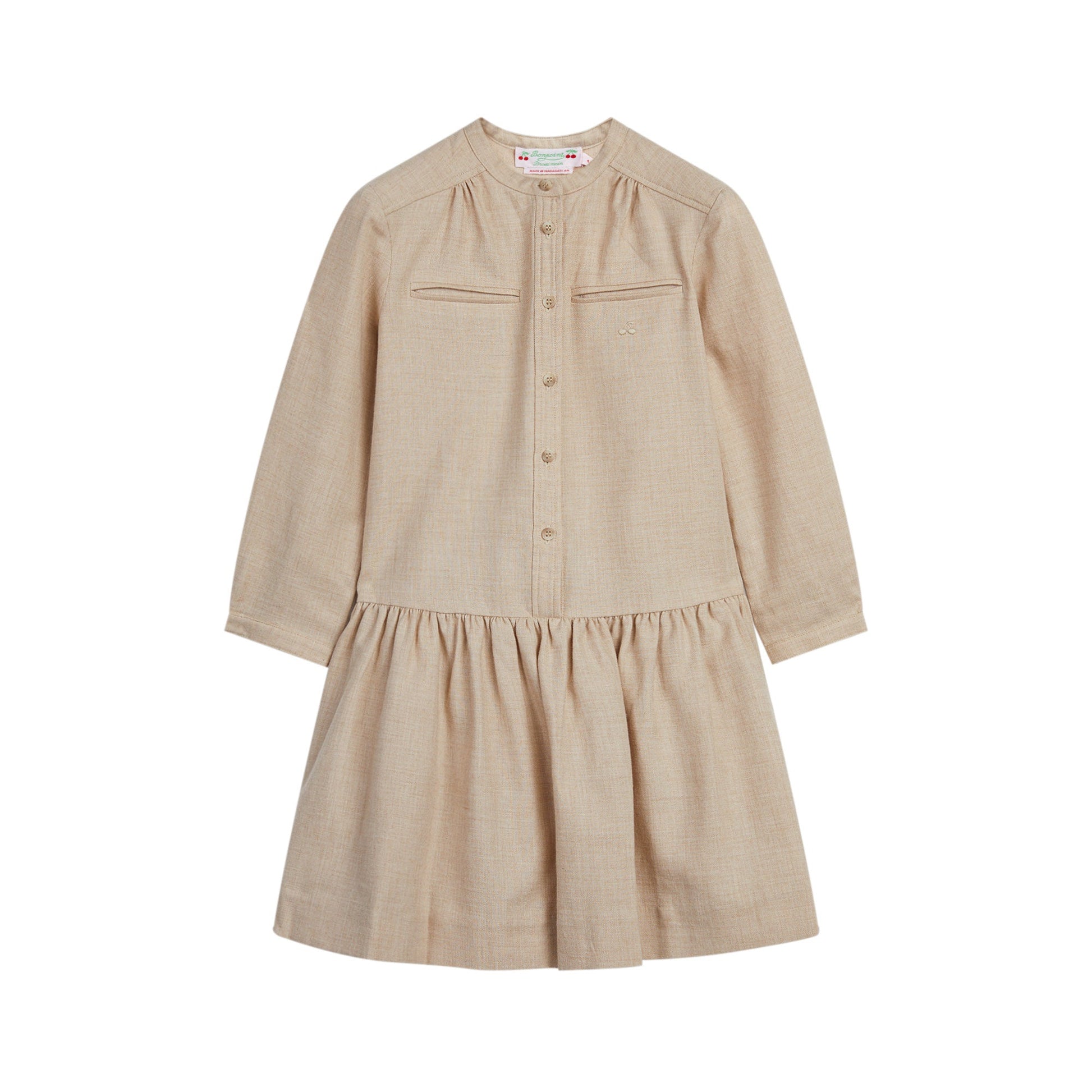 女童米色Logo棉连衣裙