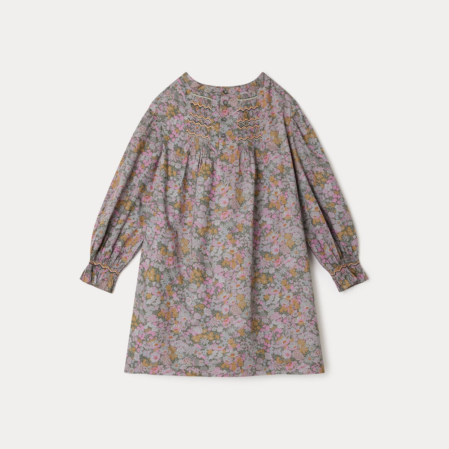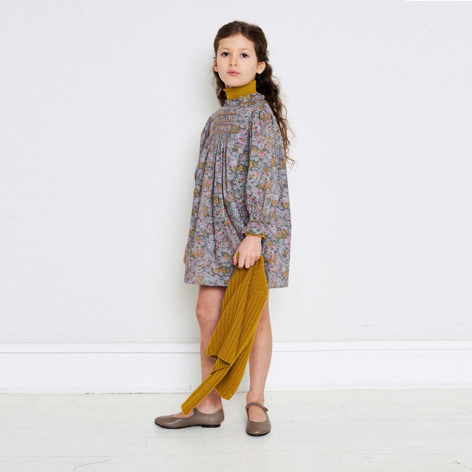 女童灰绿色碎花连衣裙