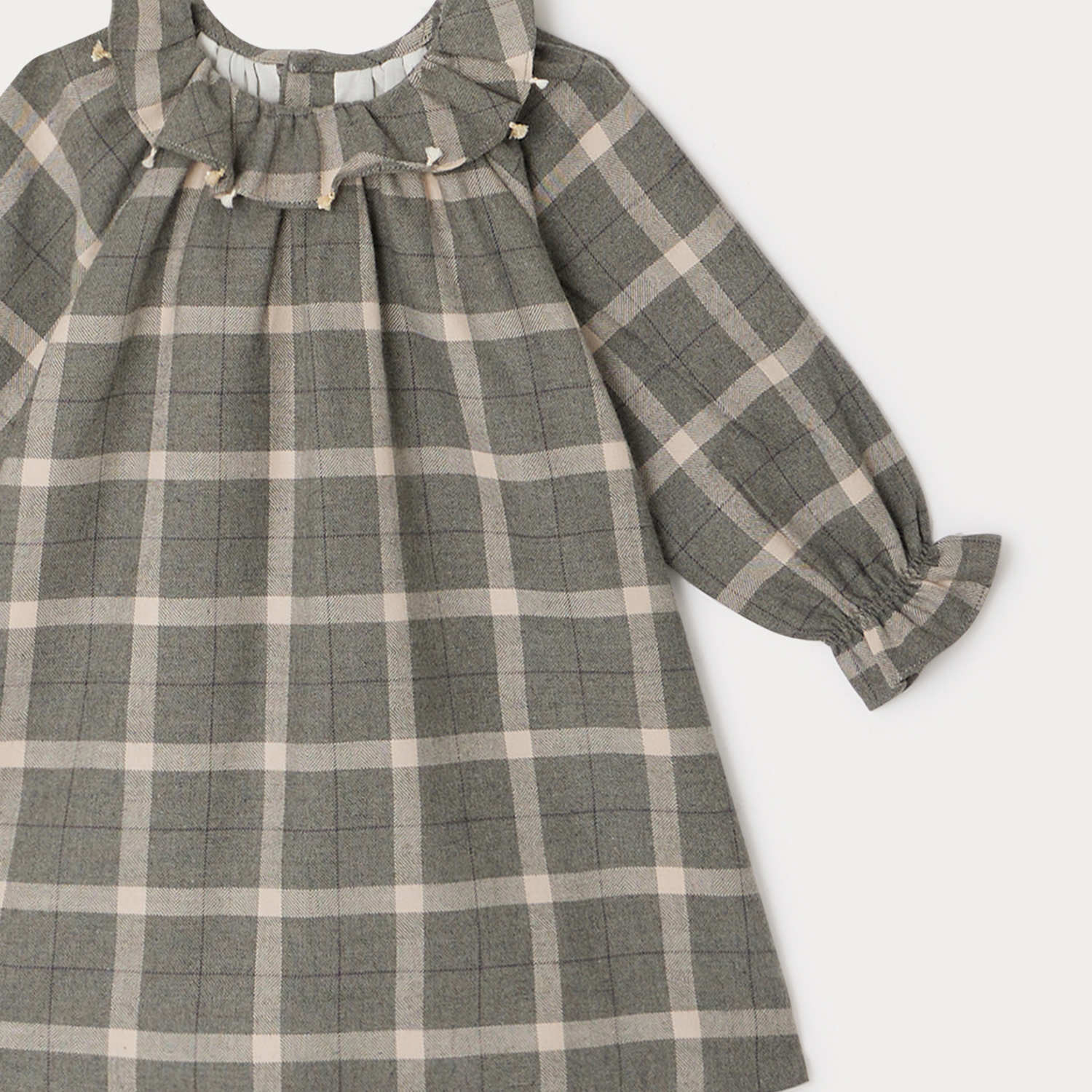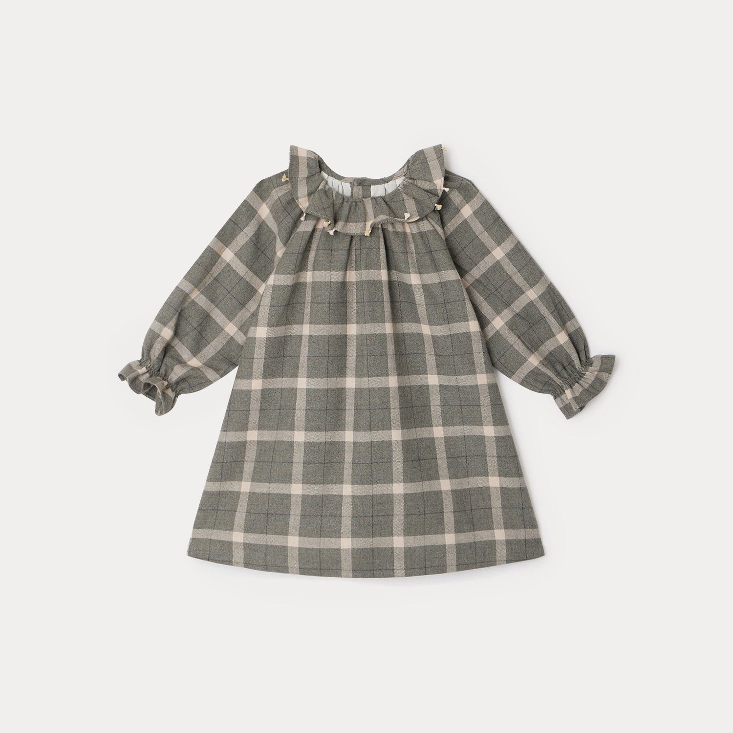 女婴灰色格子棉连衣裙