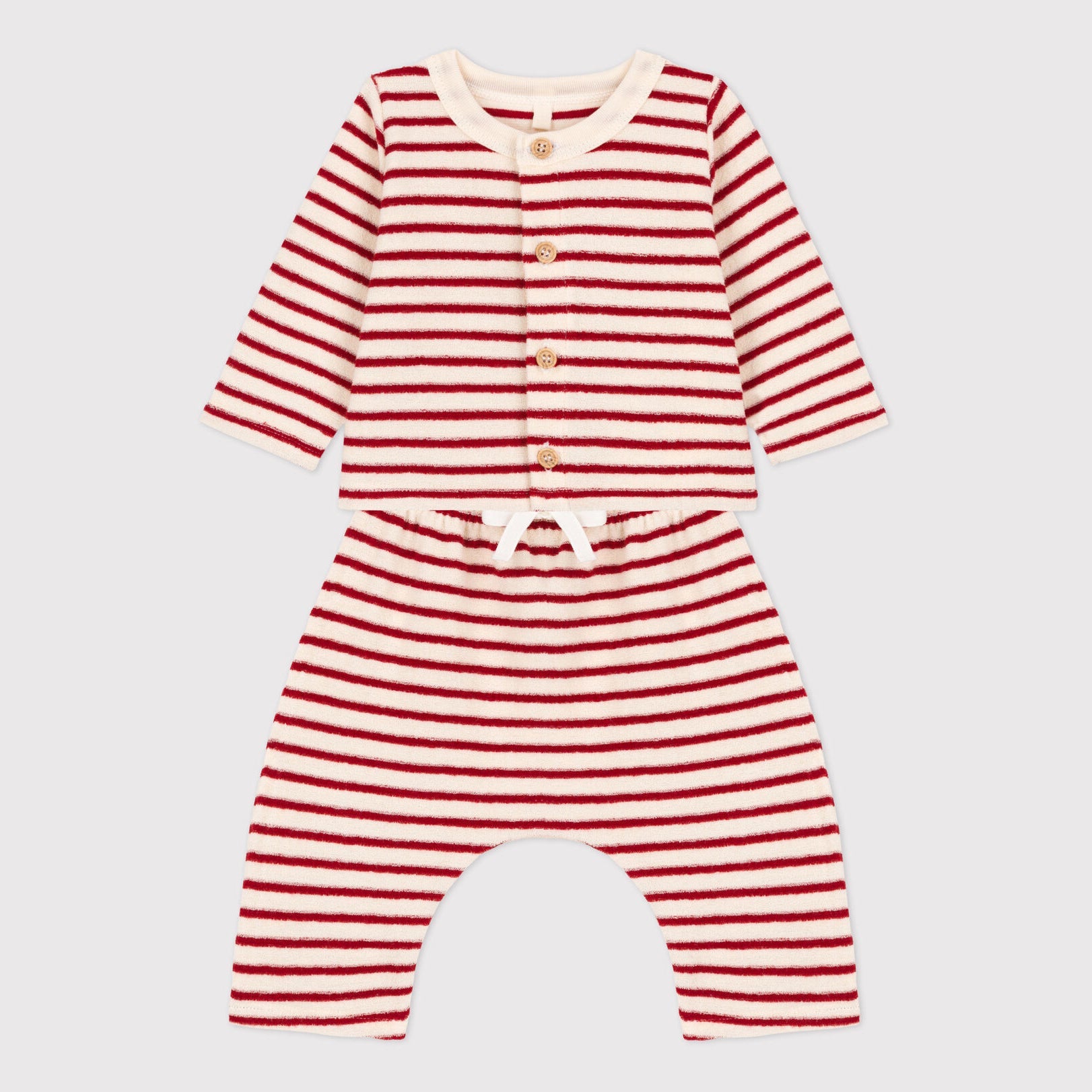 婴儿红色条纹棉套装