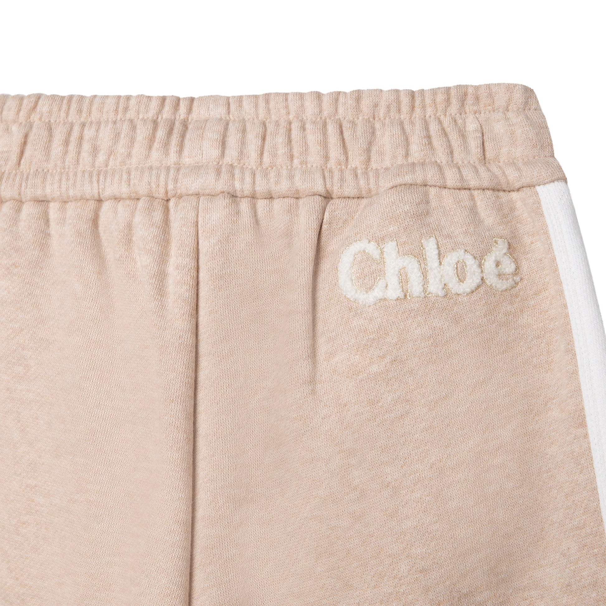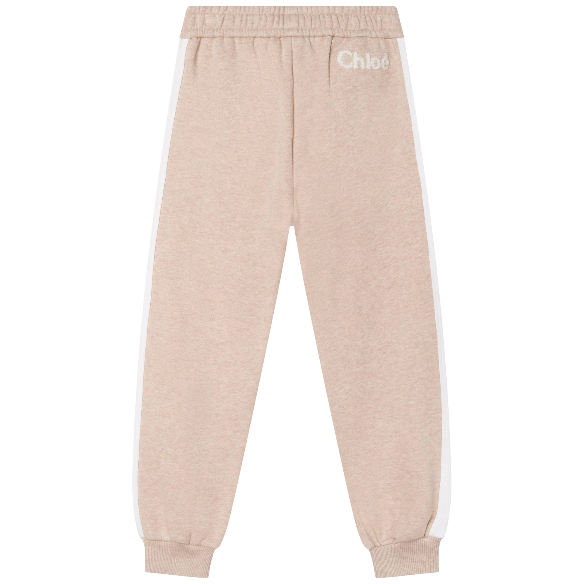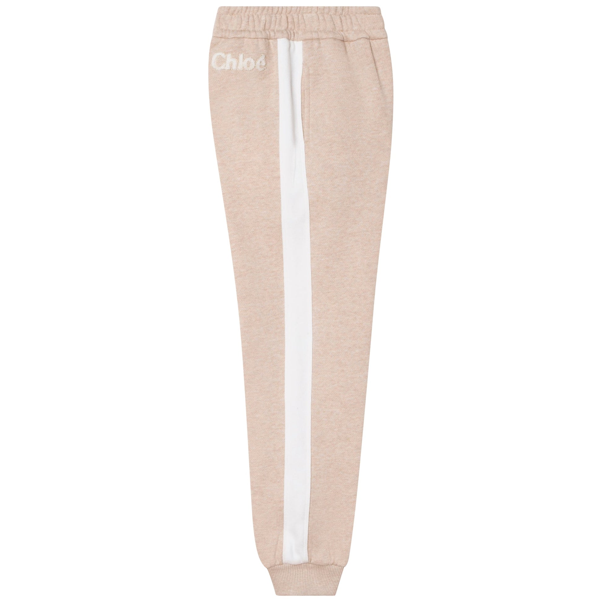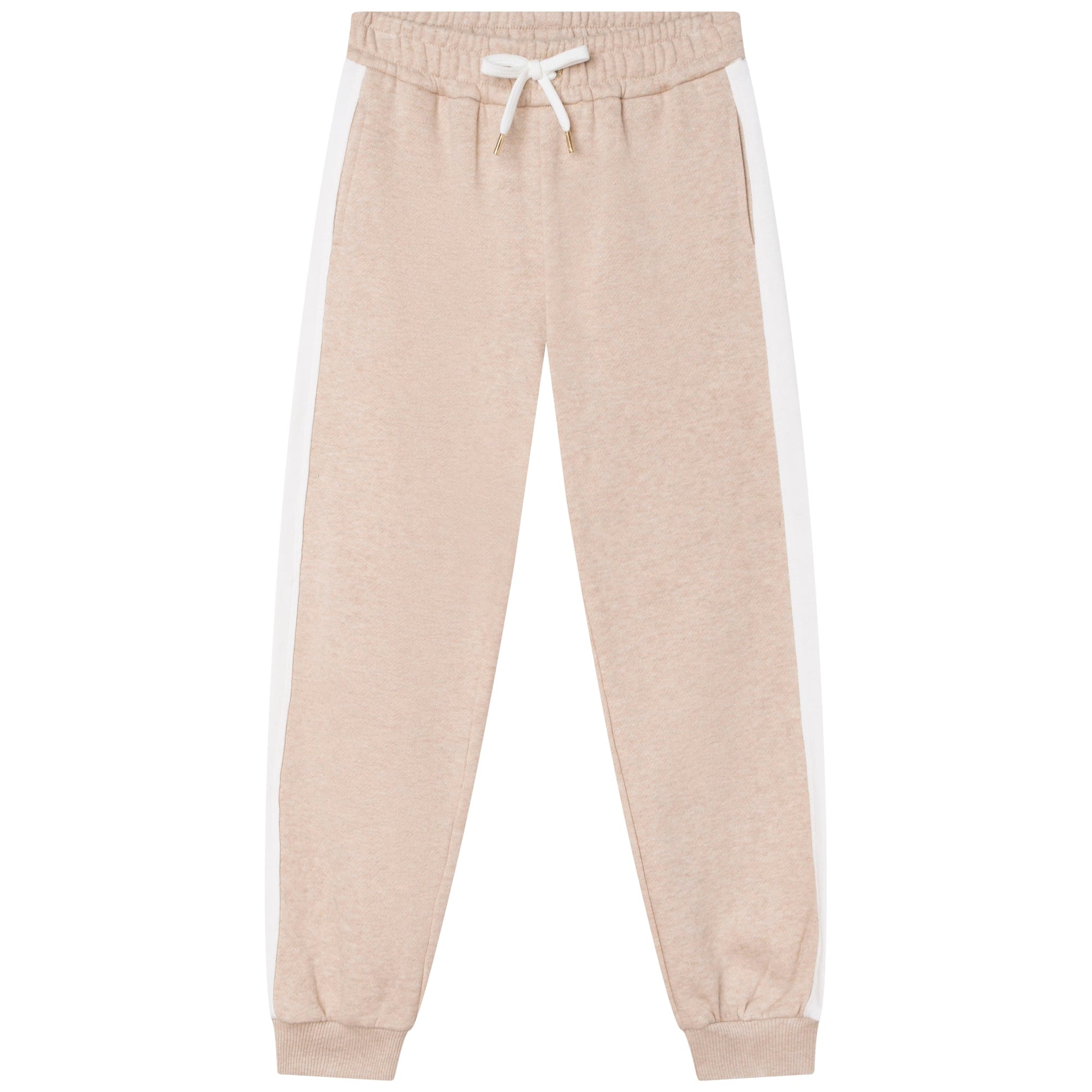 女童米色Logo棉长裤