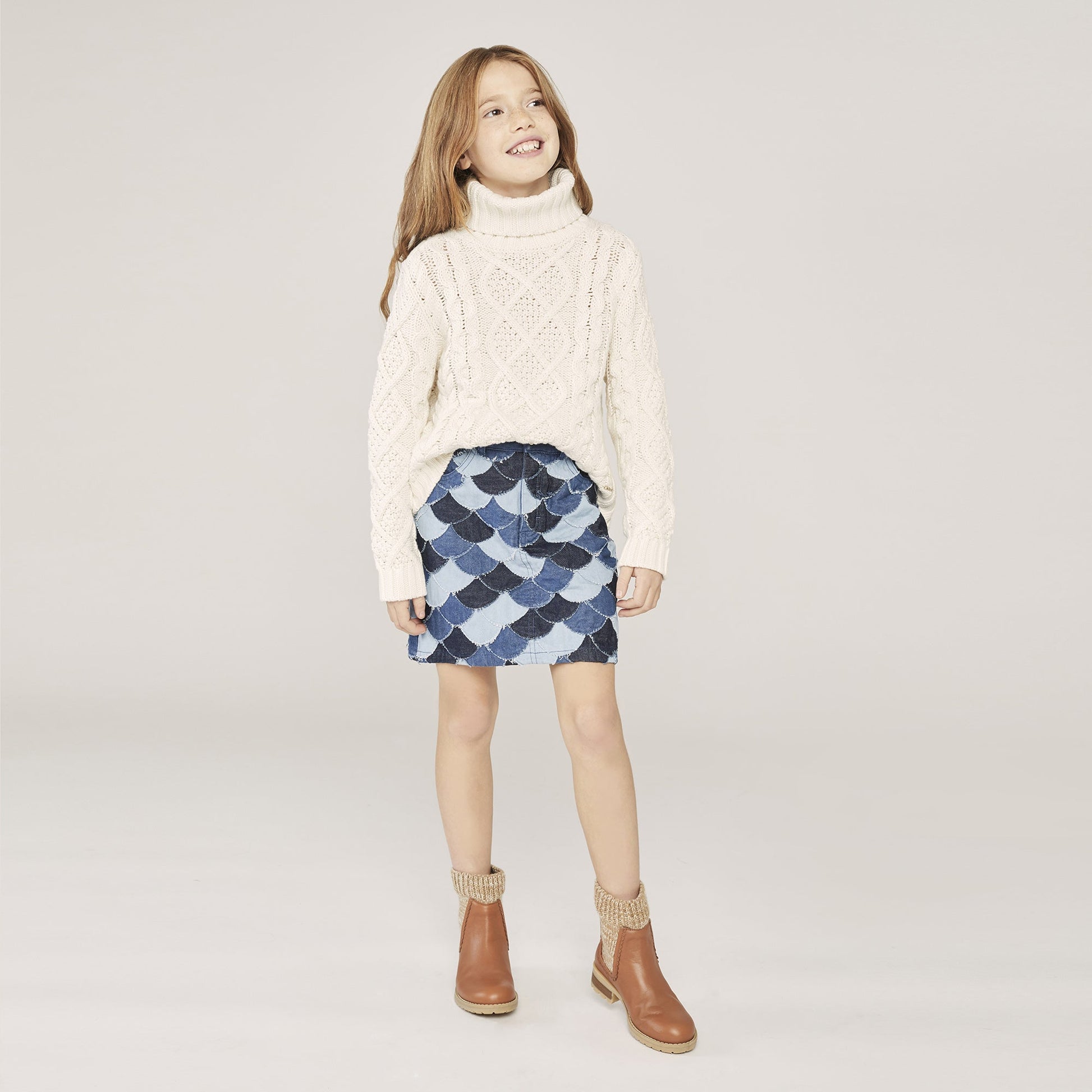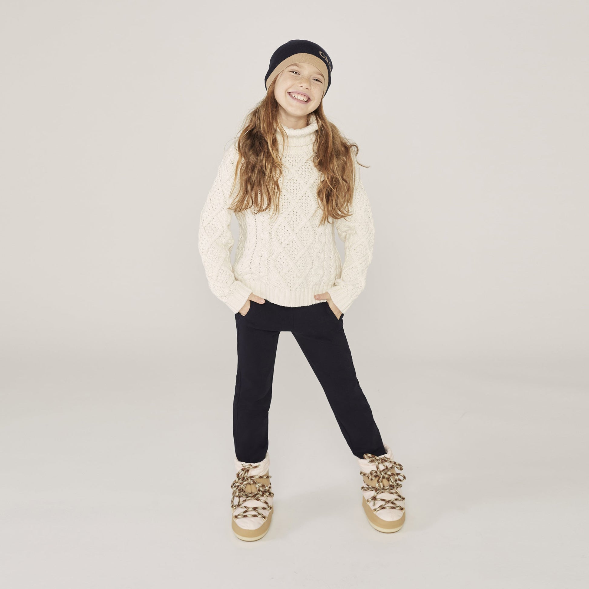 女童象牙白棉针织毛衣