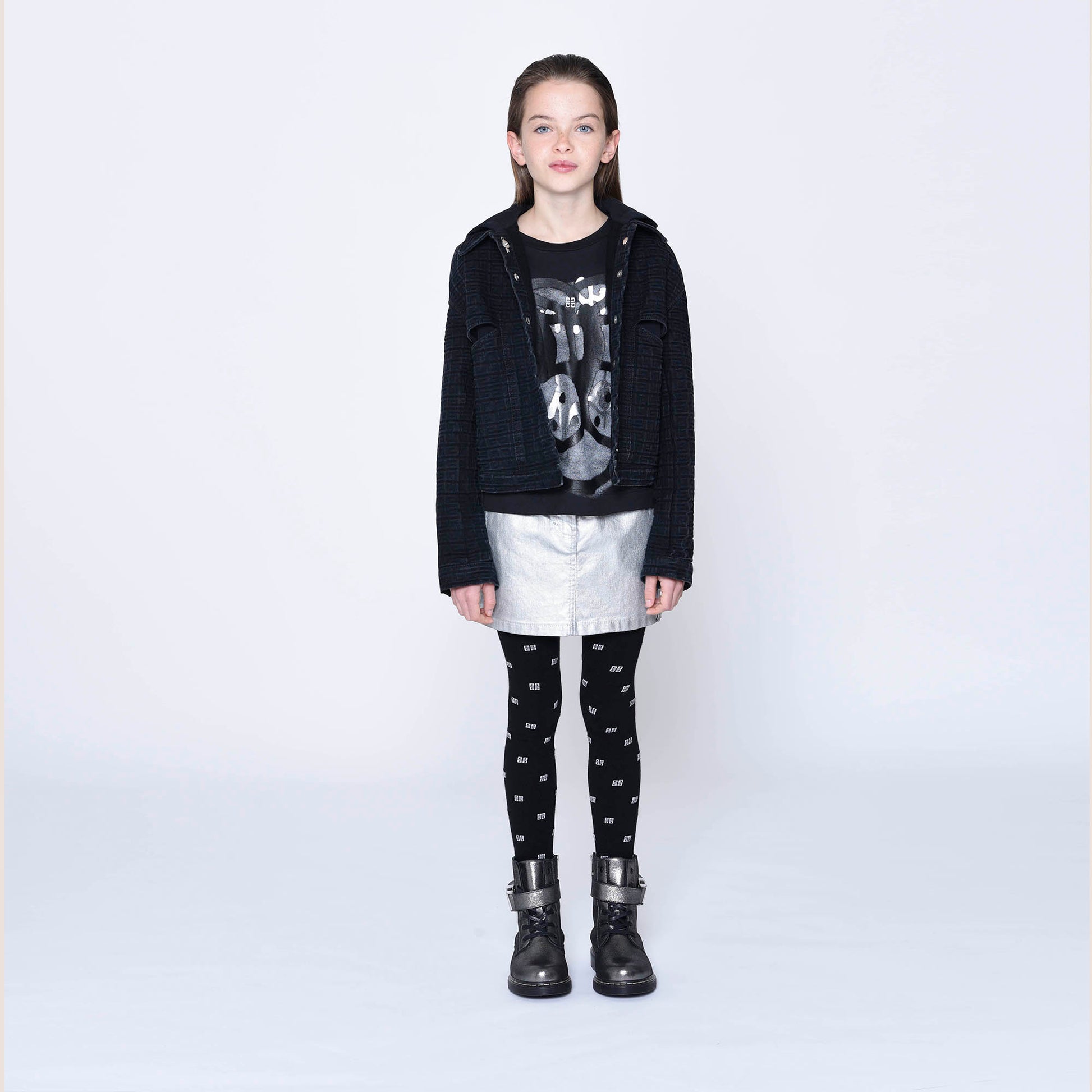 女童银色牛仔短裙