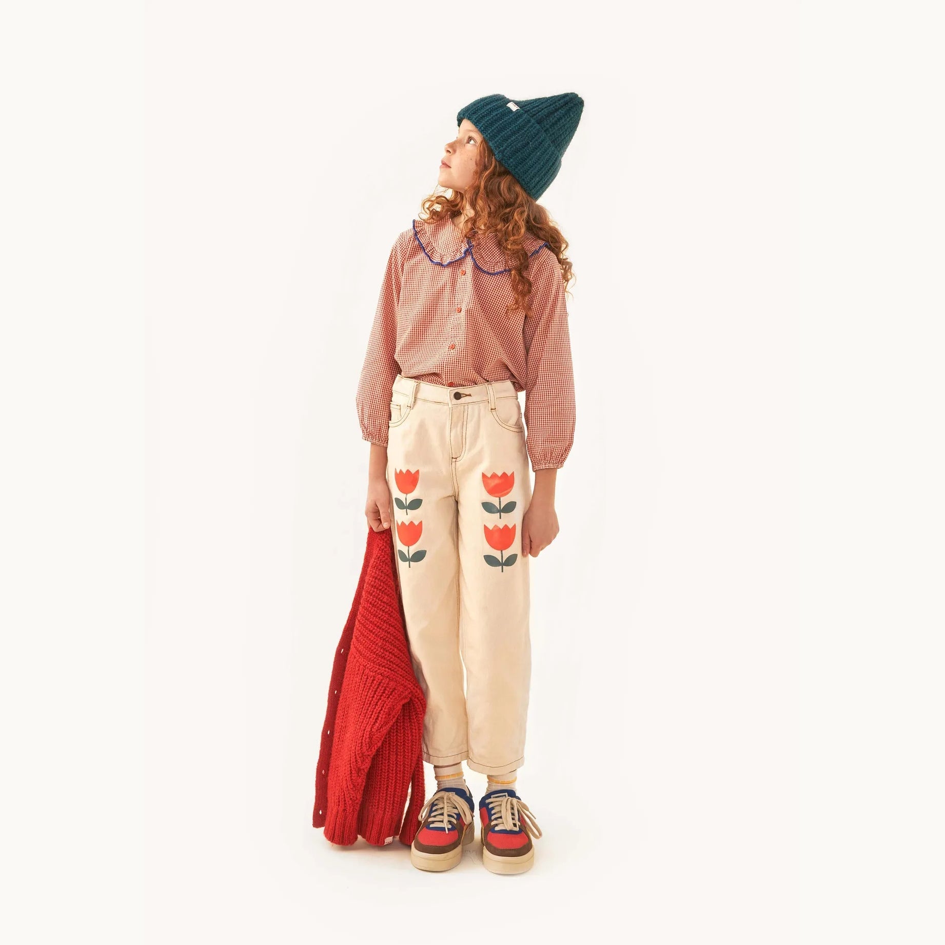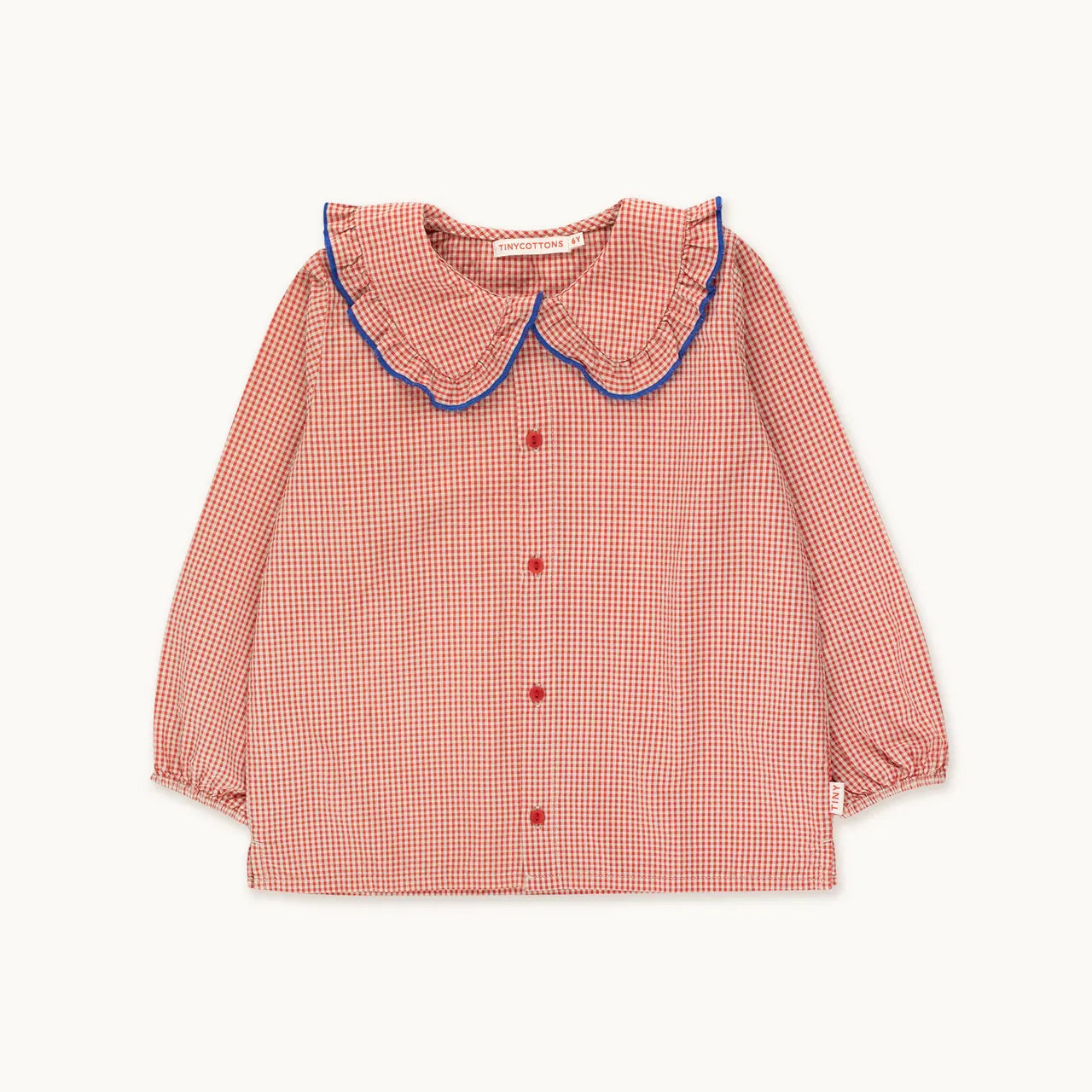 女童粉色格子荷叶领衬衫