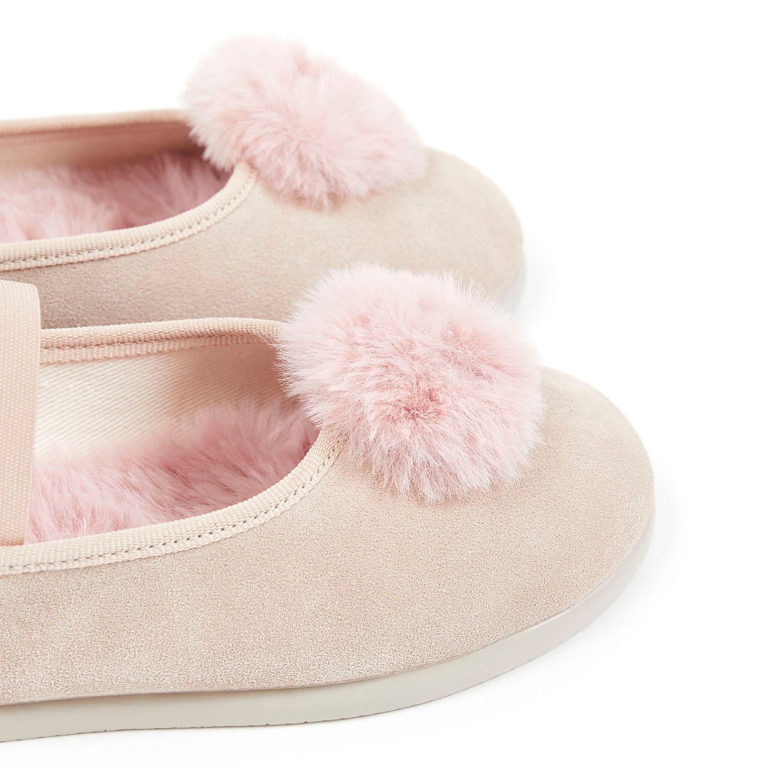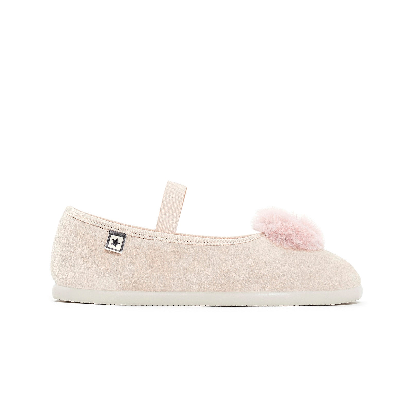 女童粉色绒球平底鞋