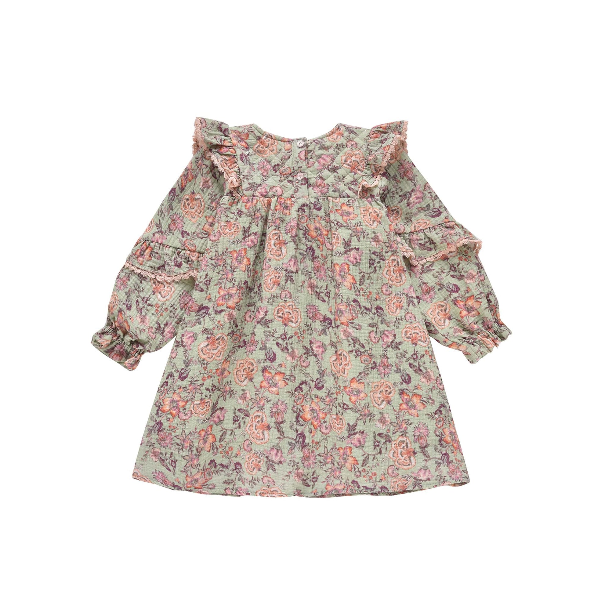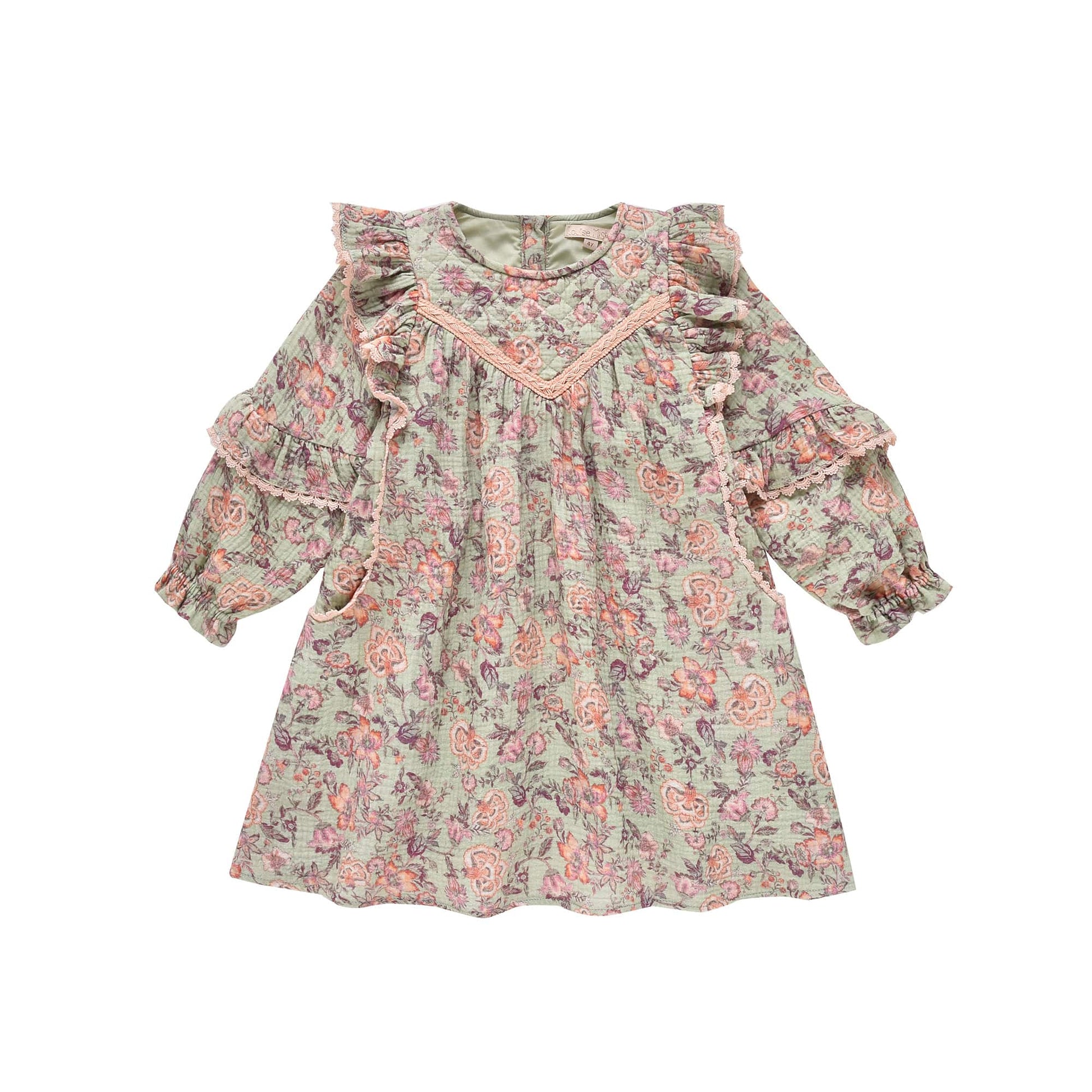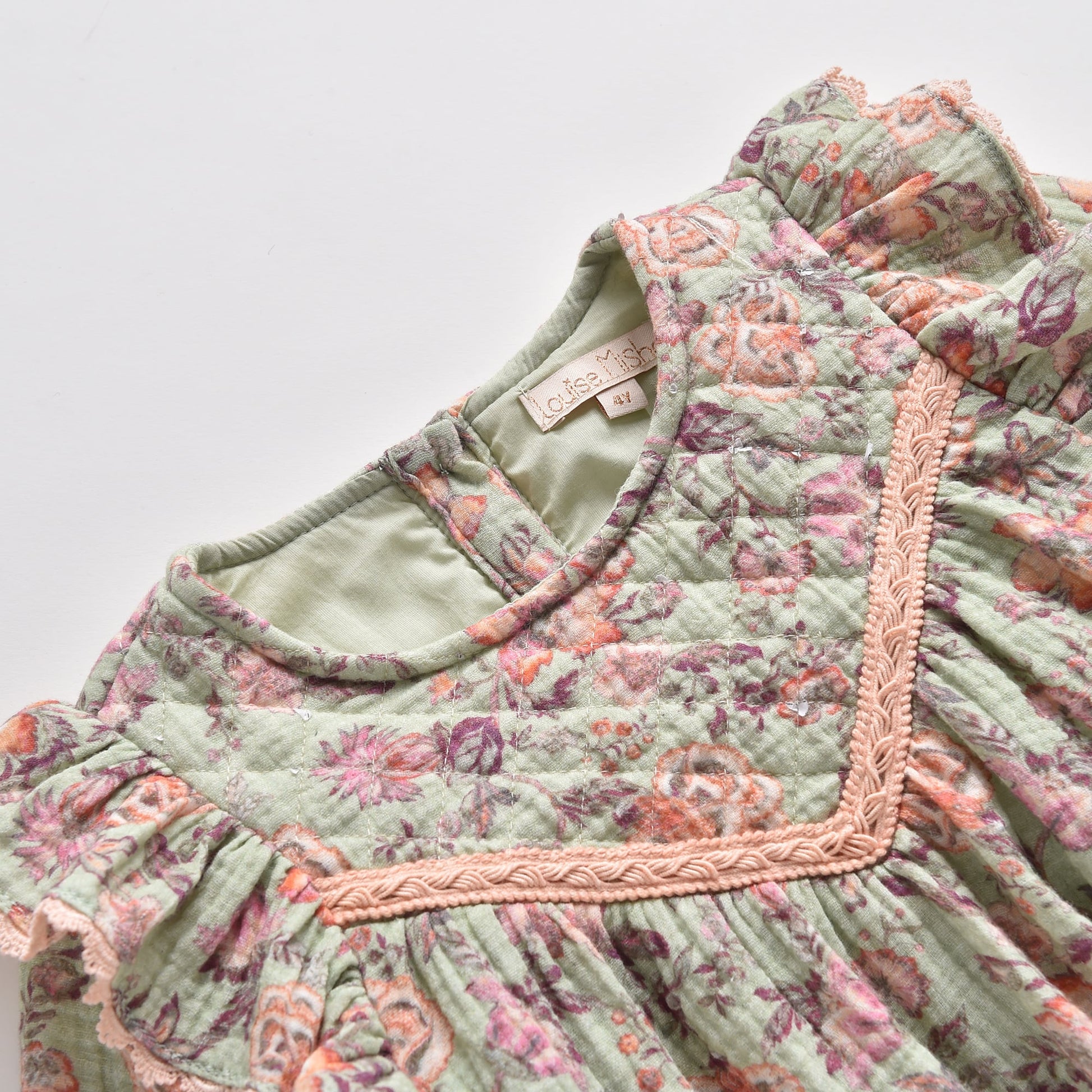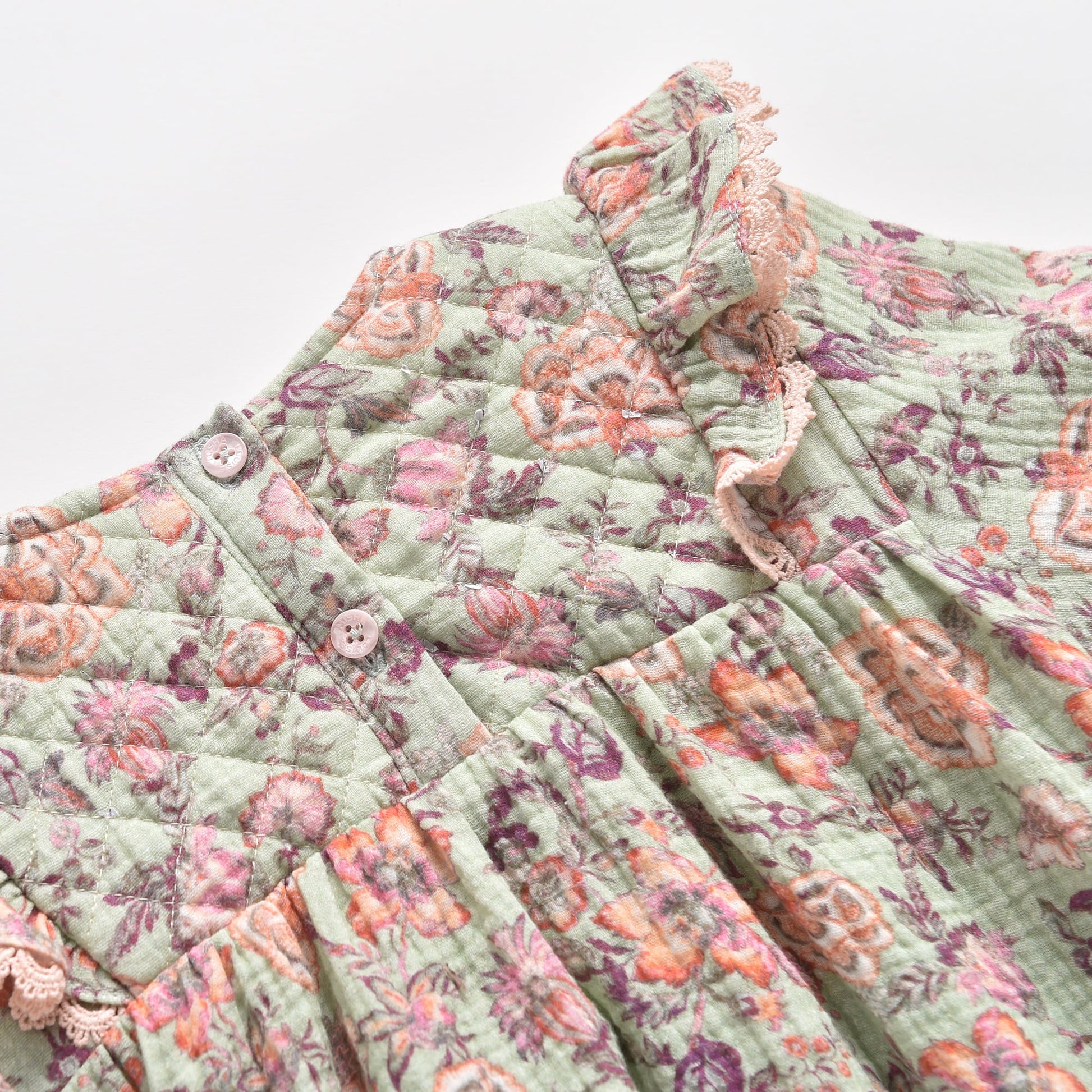女童浅绿色碎花棉连衣裙
