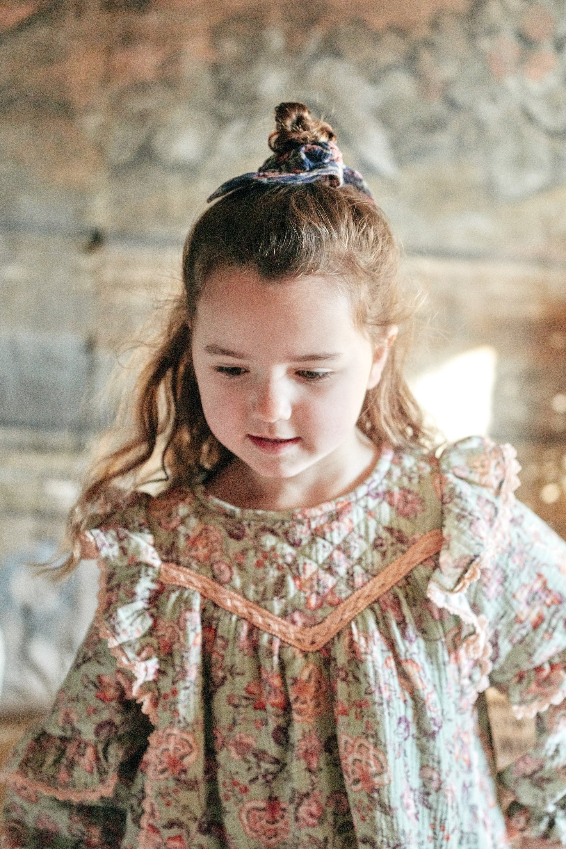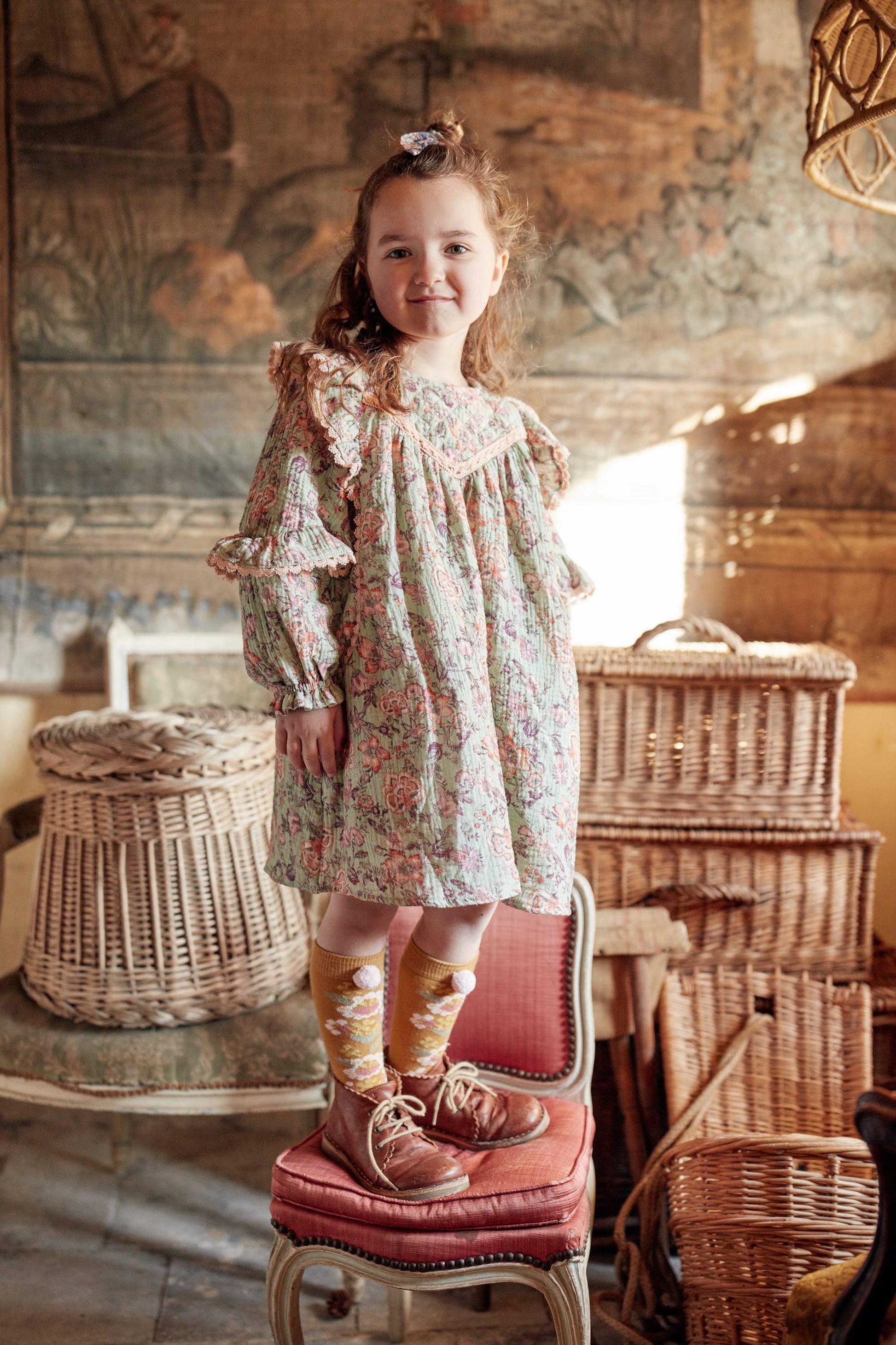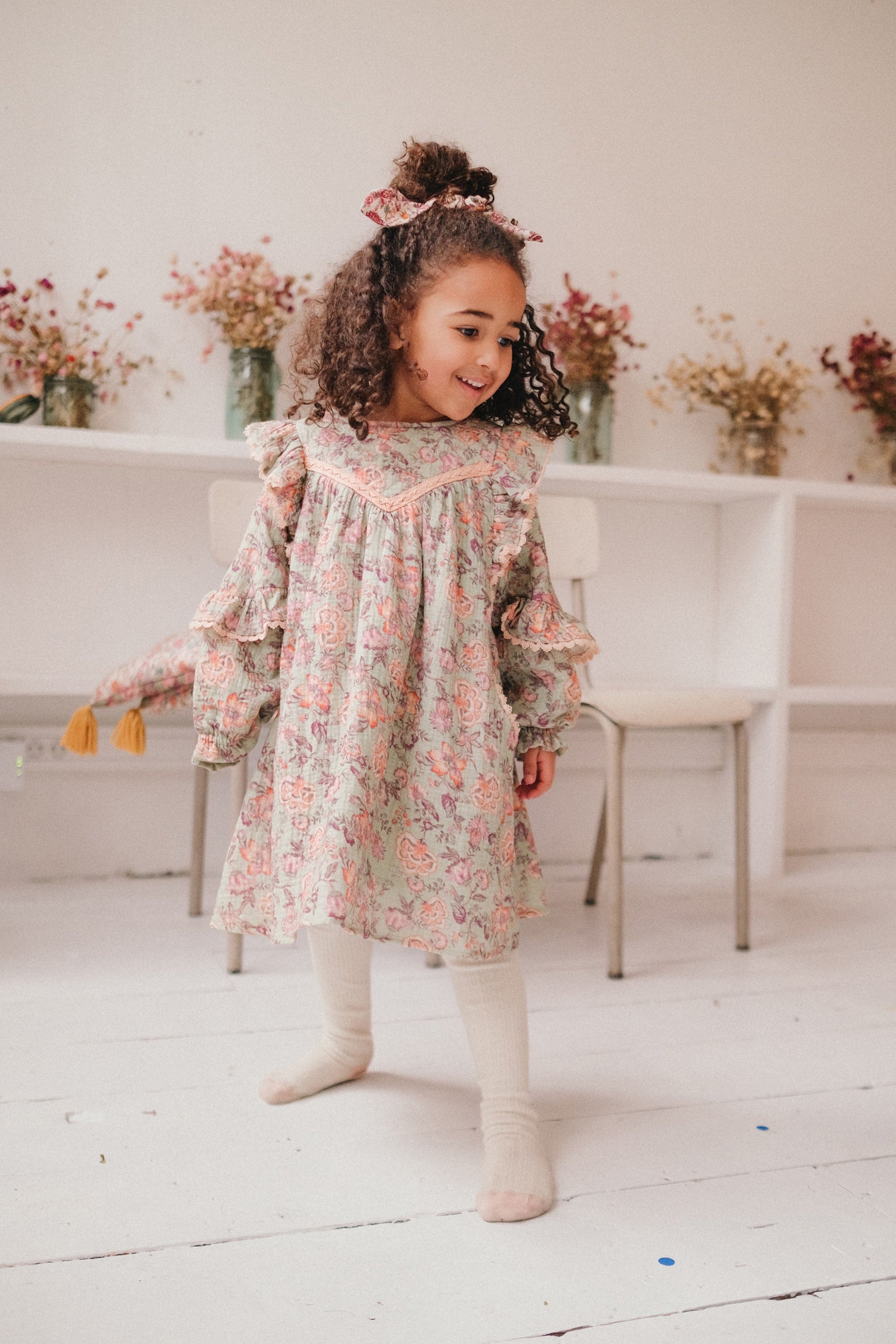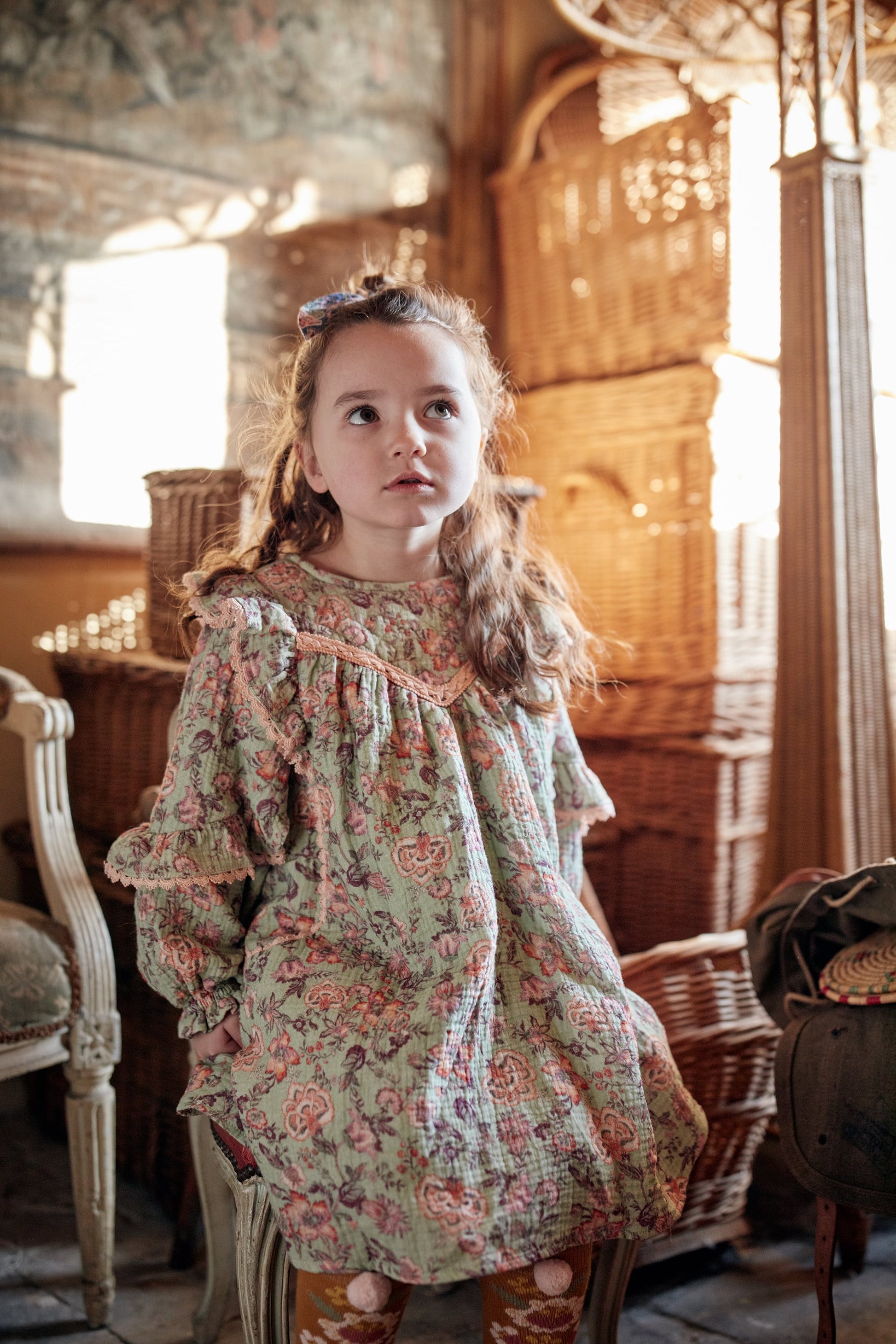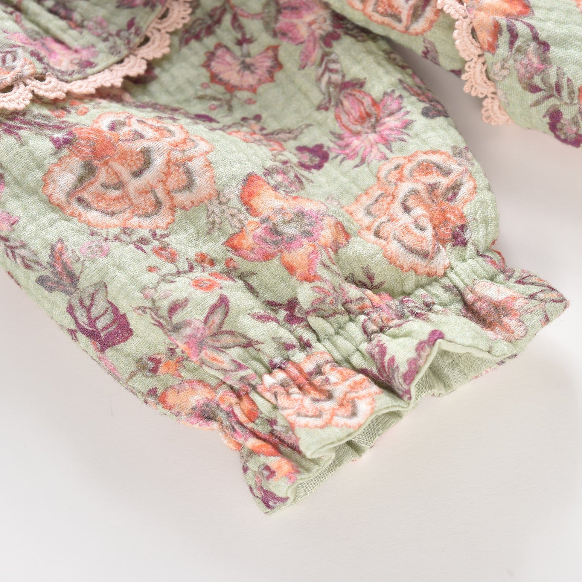 女童浅绿色碎花棉连衣裙