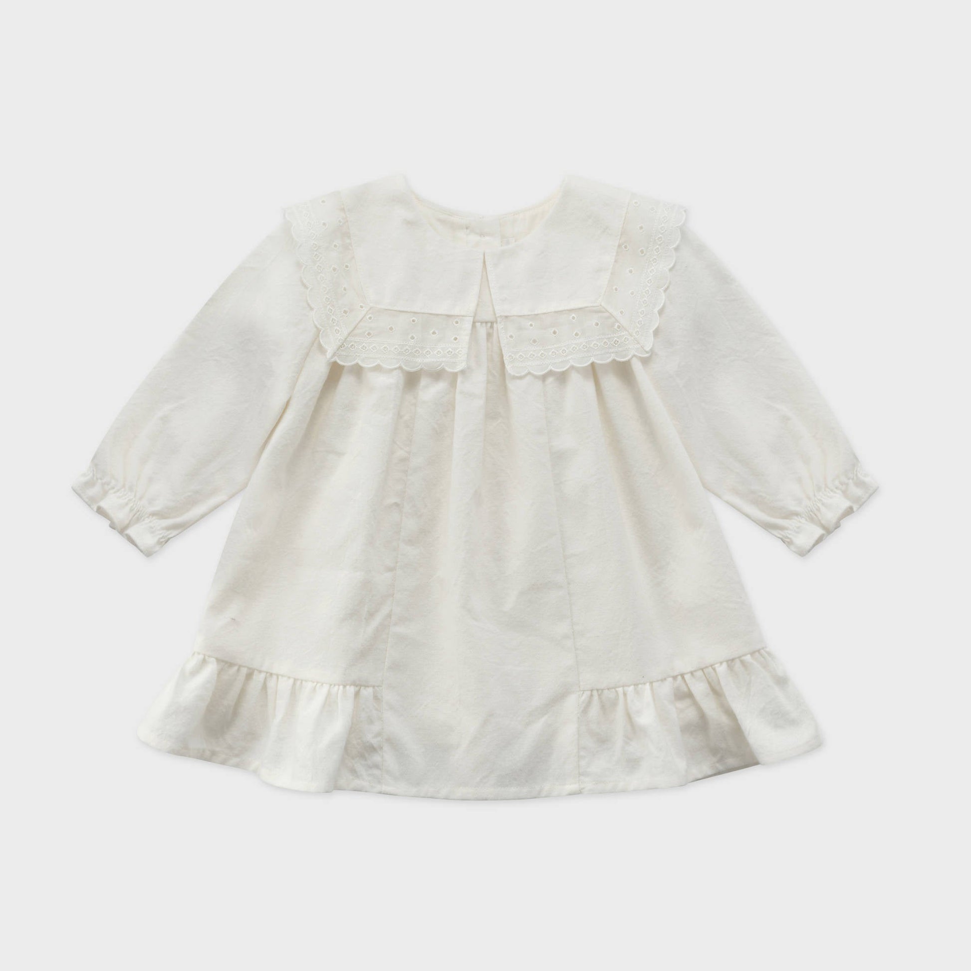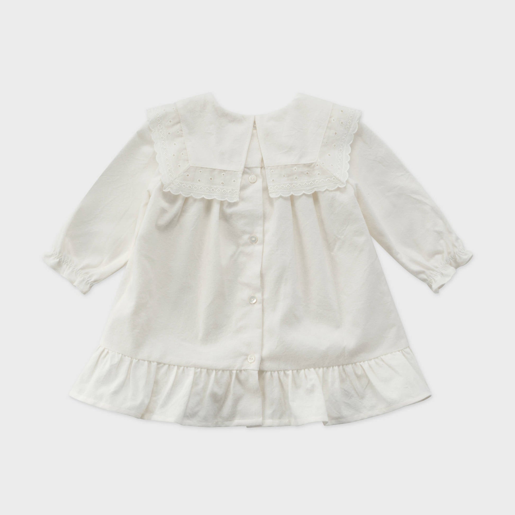 女婴白色荷叶边棉连衣裙