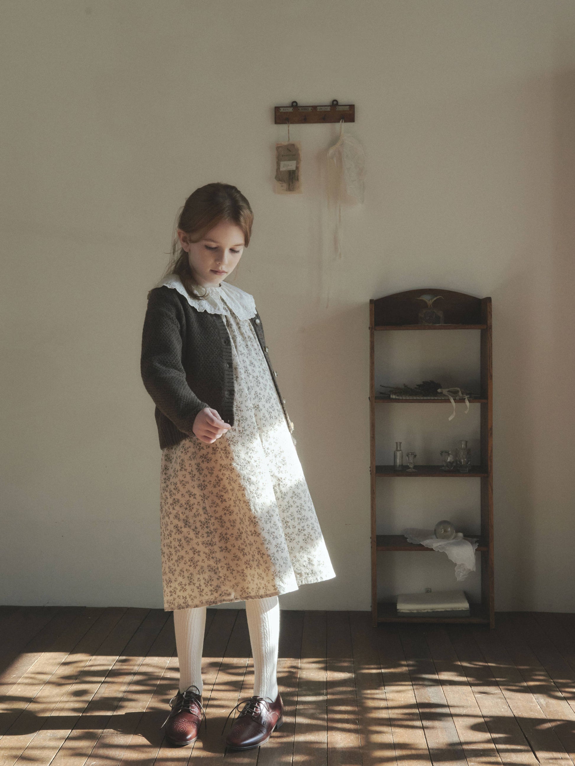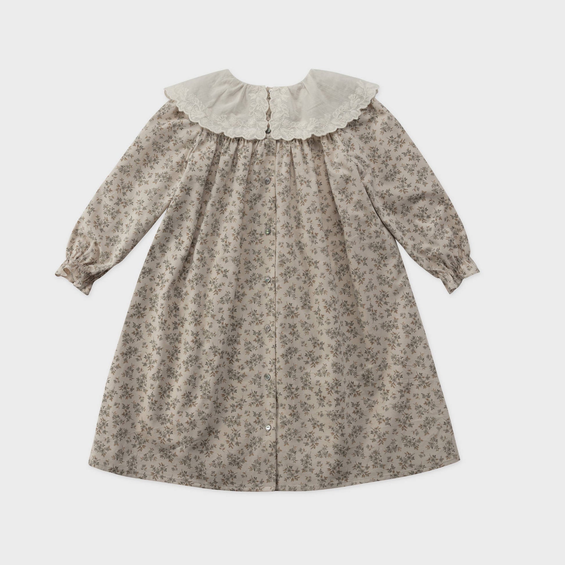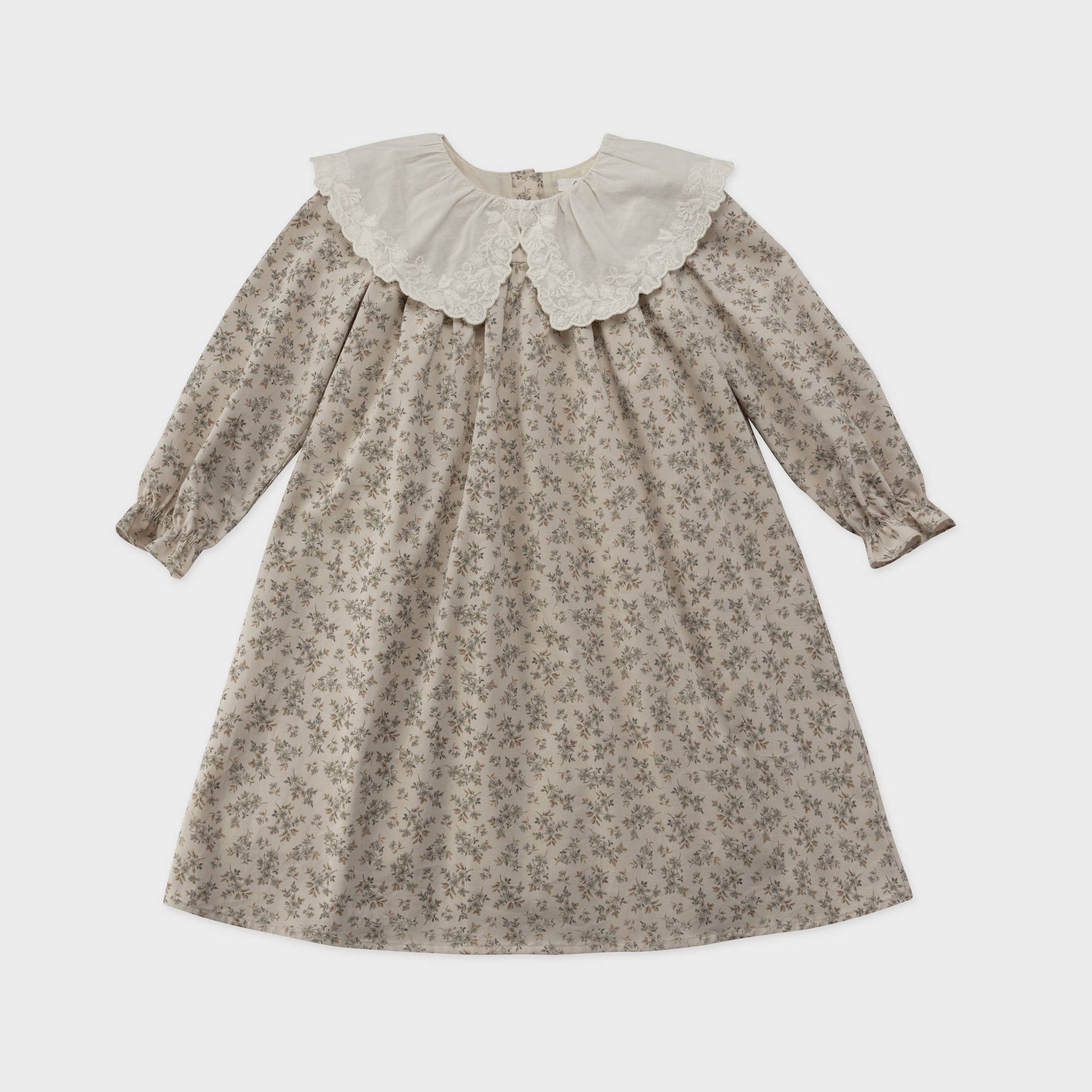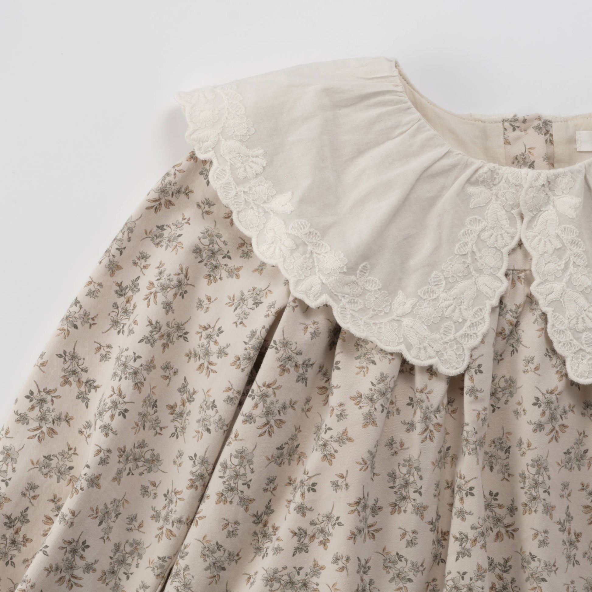 女童薄荷绿碎花蕾丝领棉连衣裙