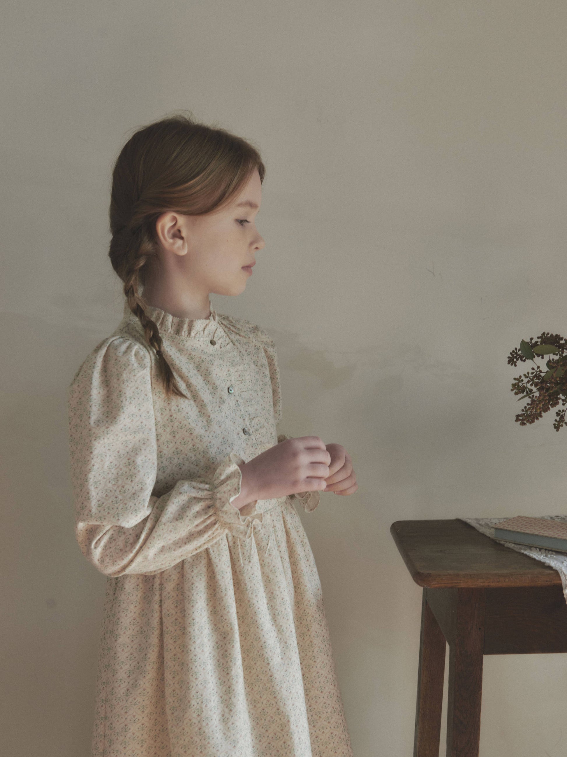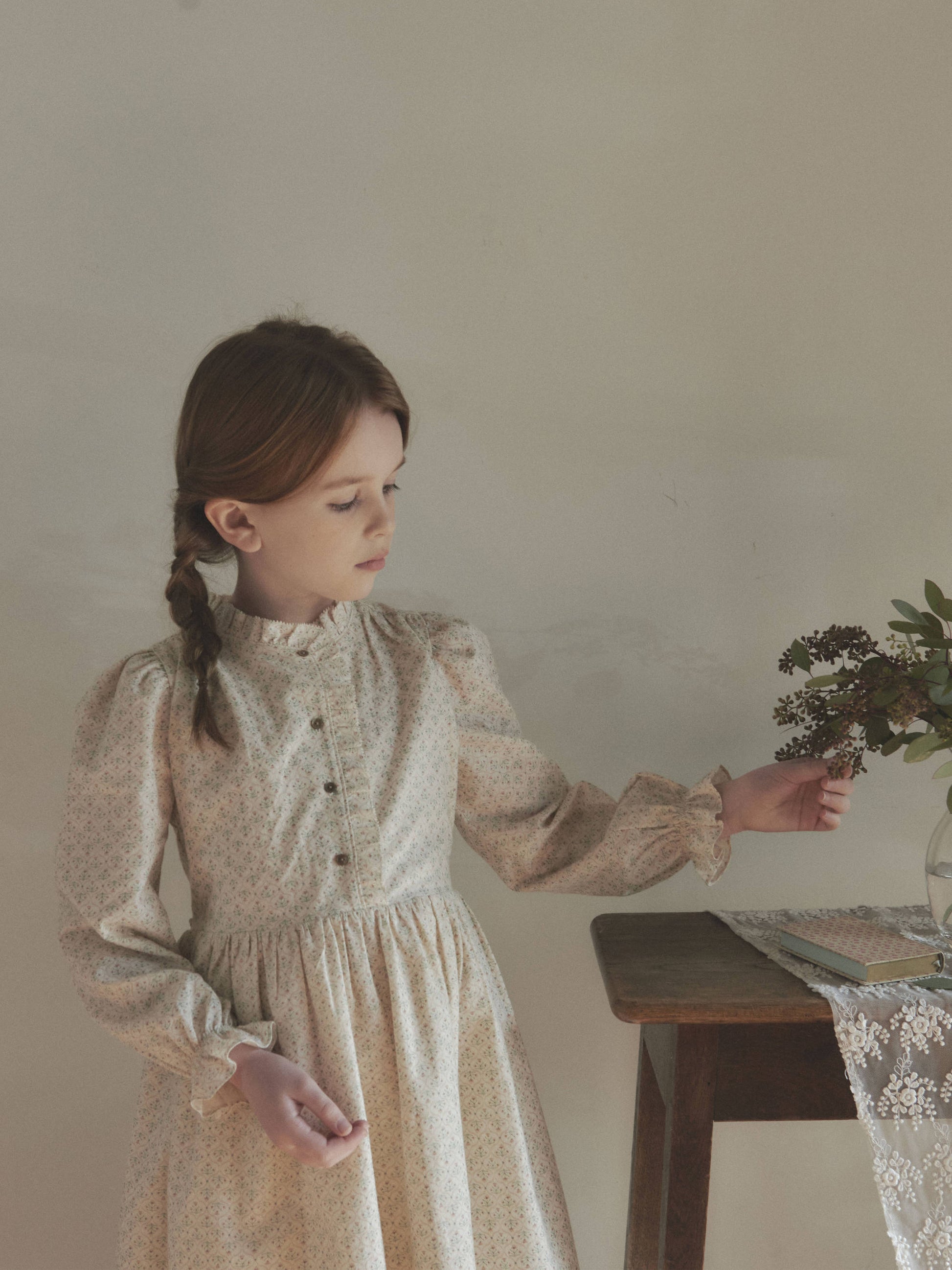 女童浅粉色碎花棉连衣裙
