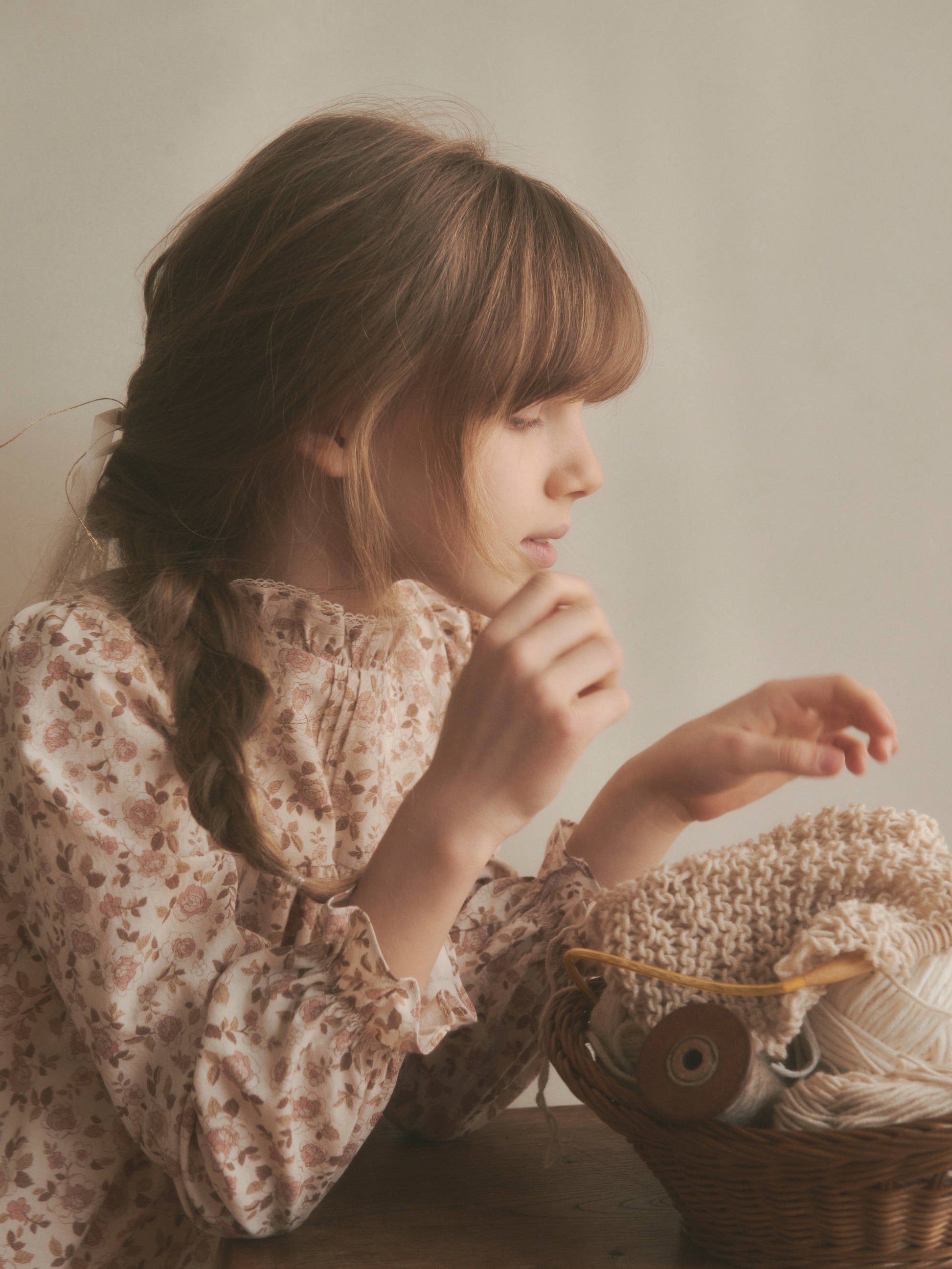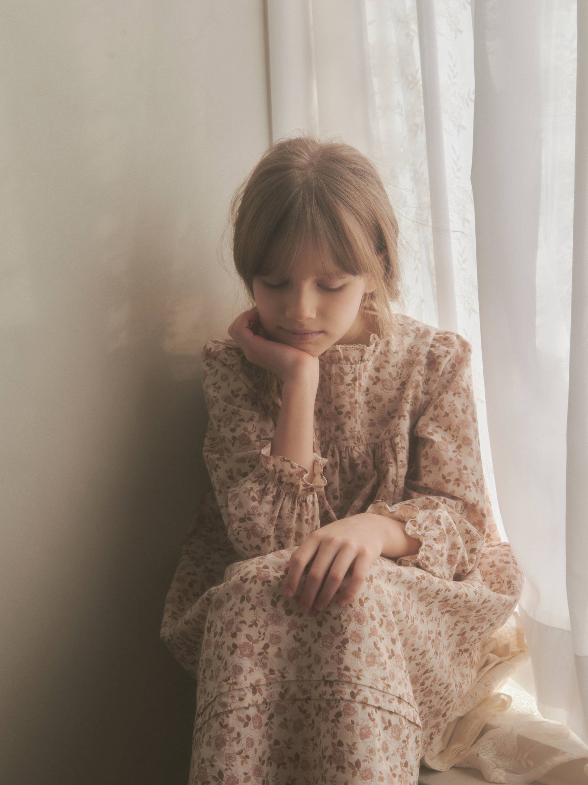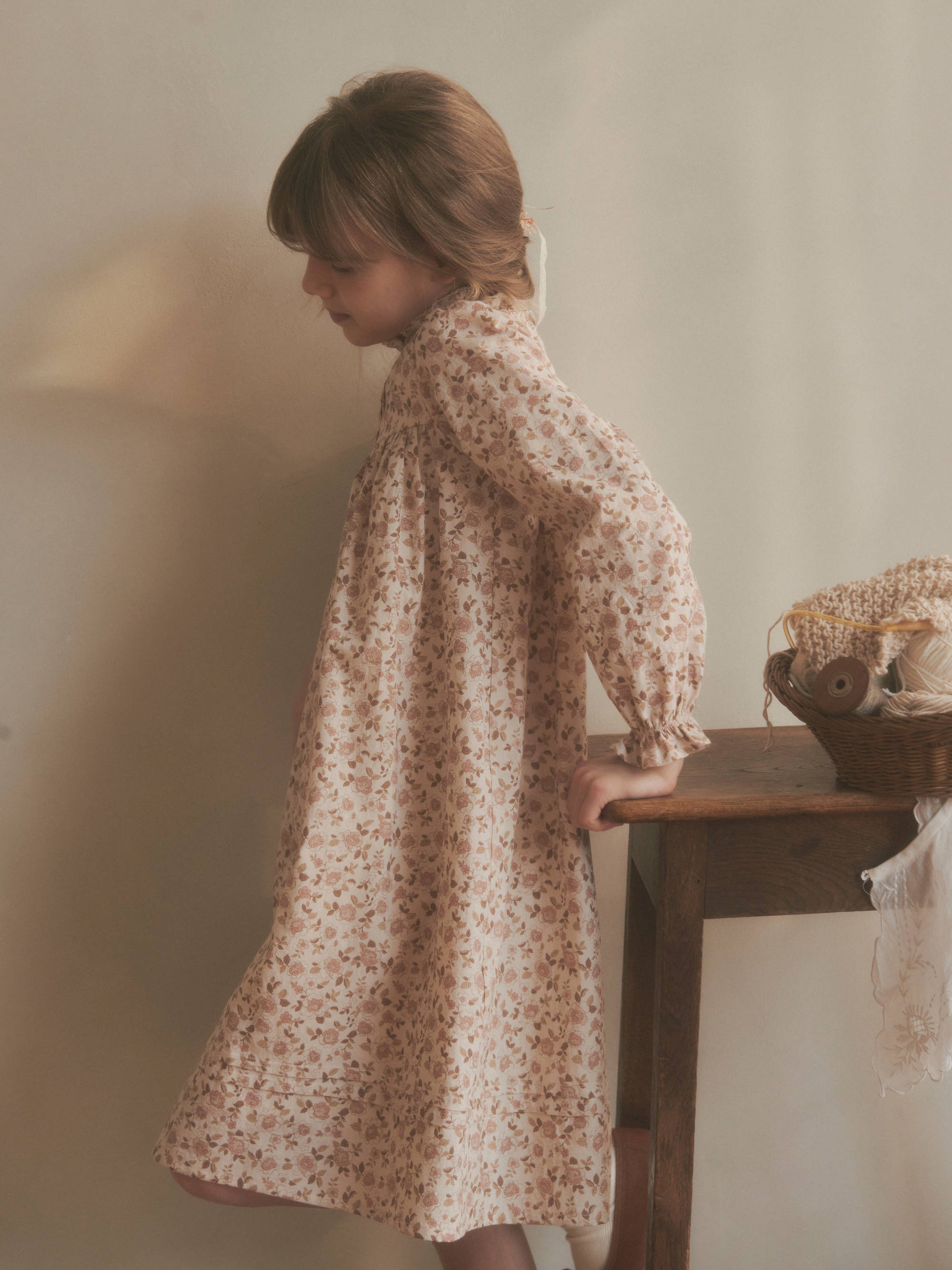 女童粉色碎花棉连衣裙