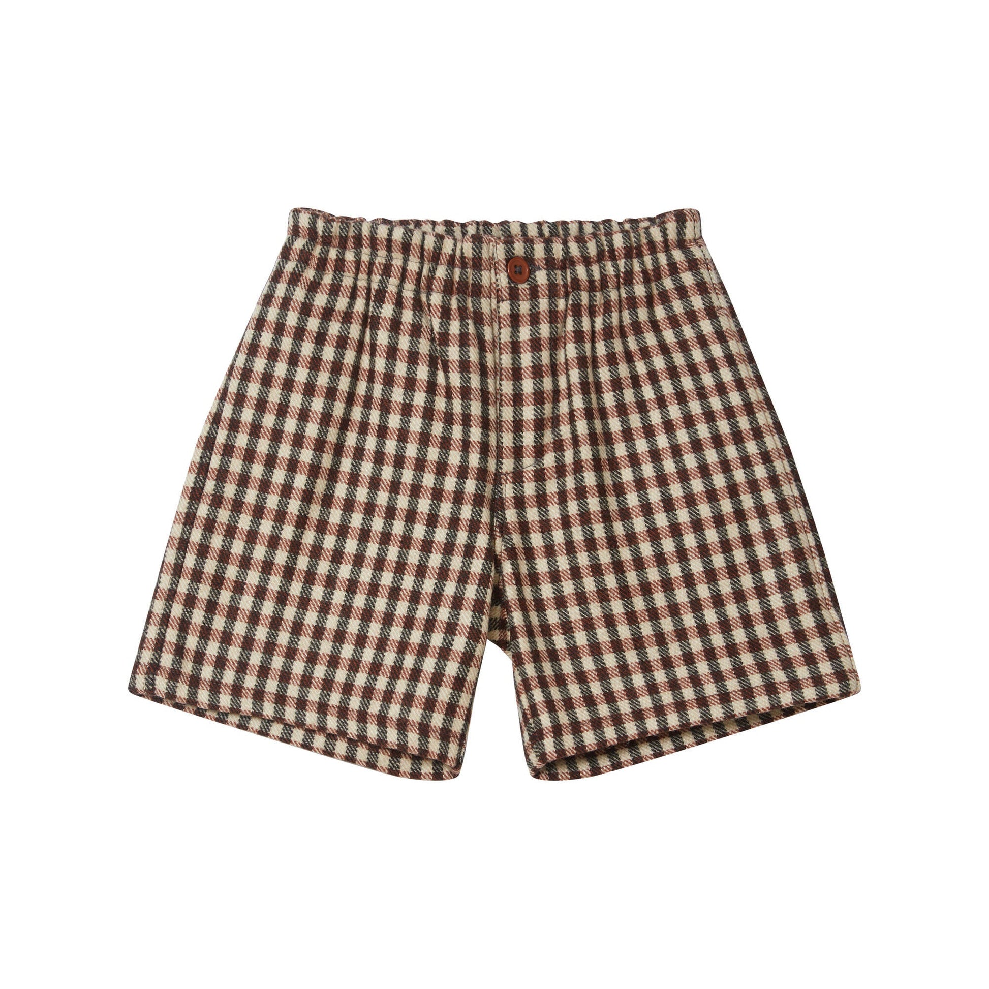 女童棕色格子羊毛短裤