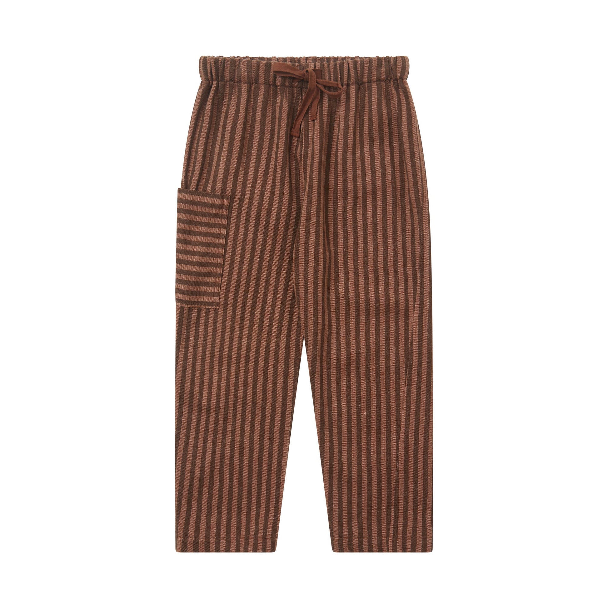 儿童紫红色条纹棉长裤