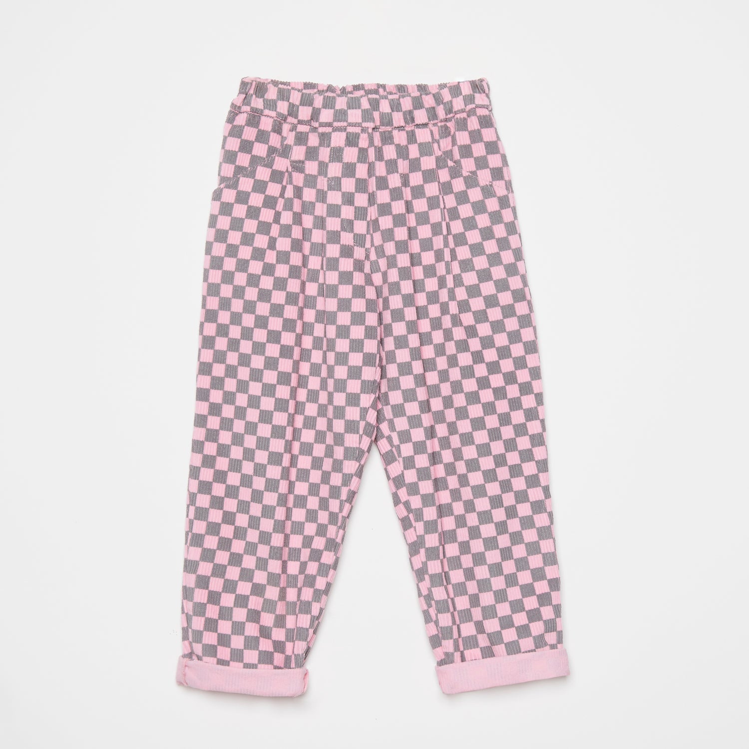 儿童粉色格子灯芯绒长裤