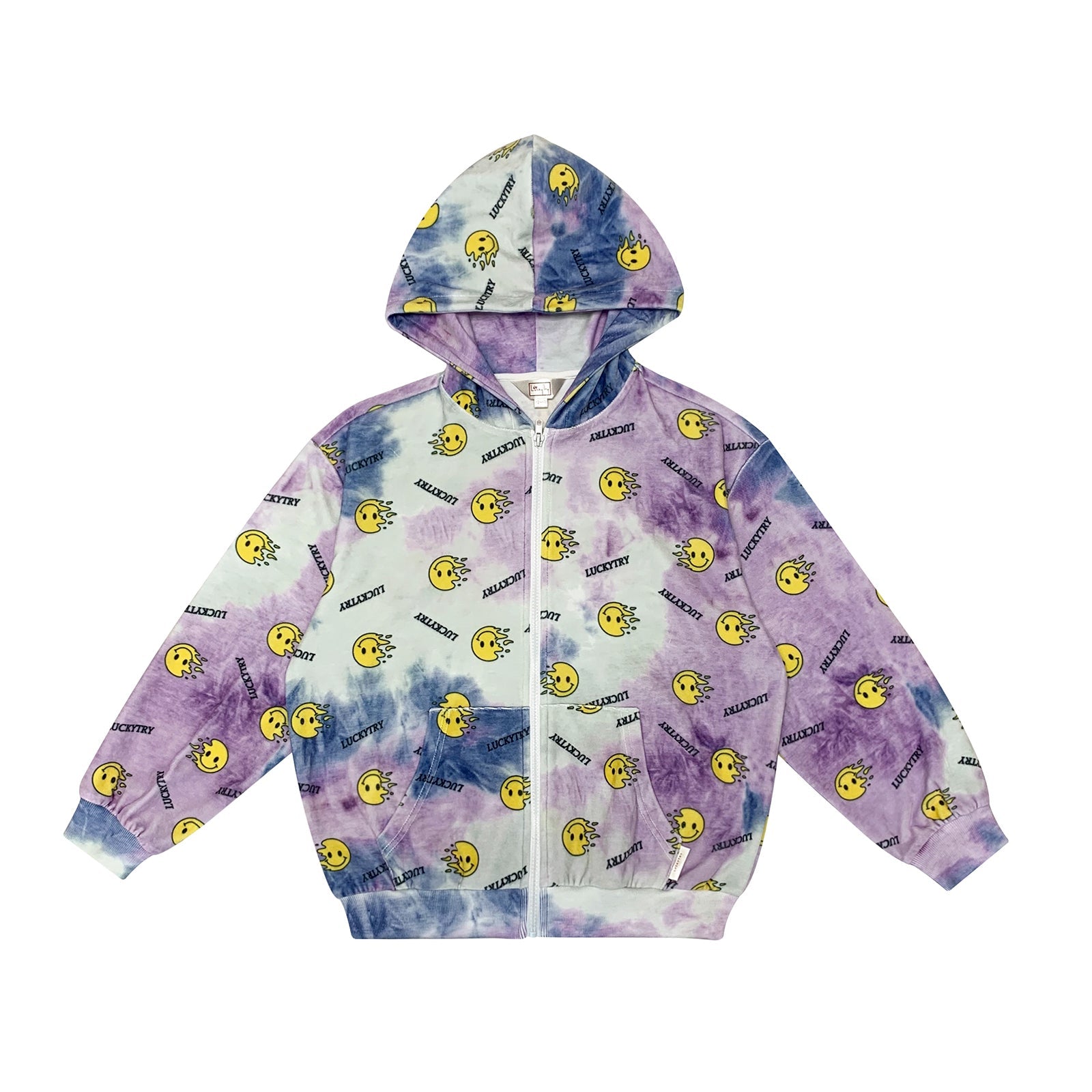 儿童紫色笑脸丝绒拉链上衣