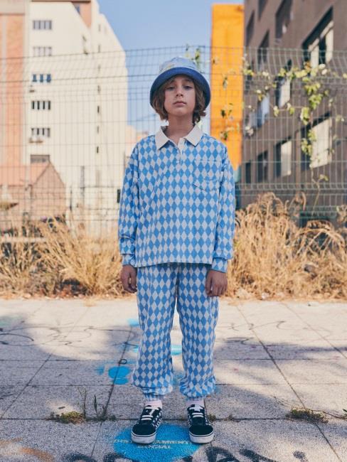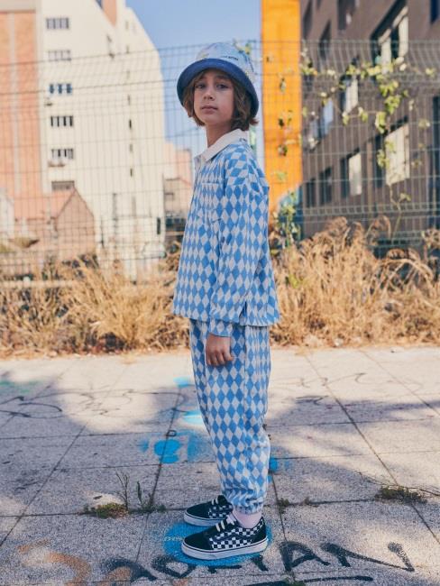 儿童蓝色格子长裤