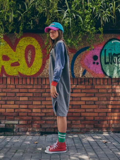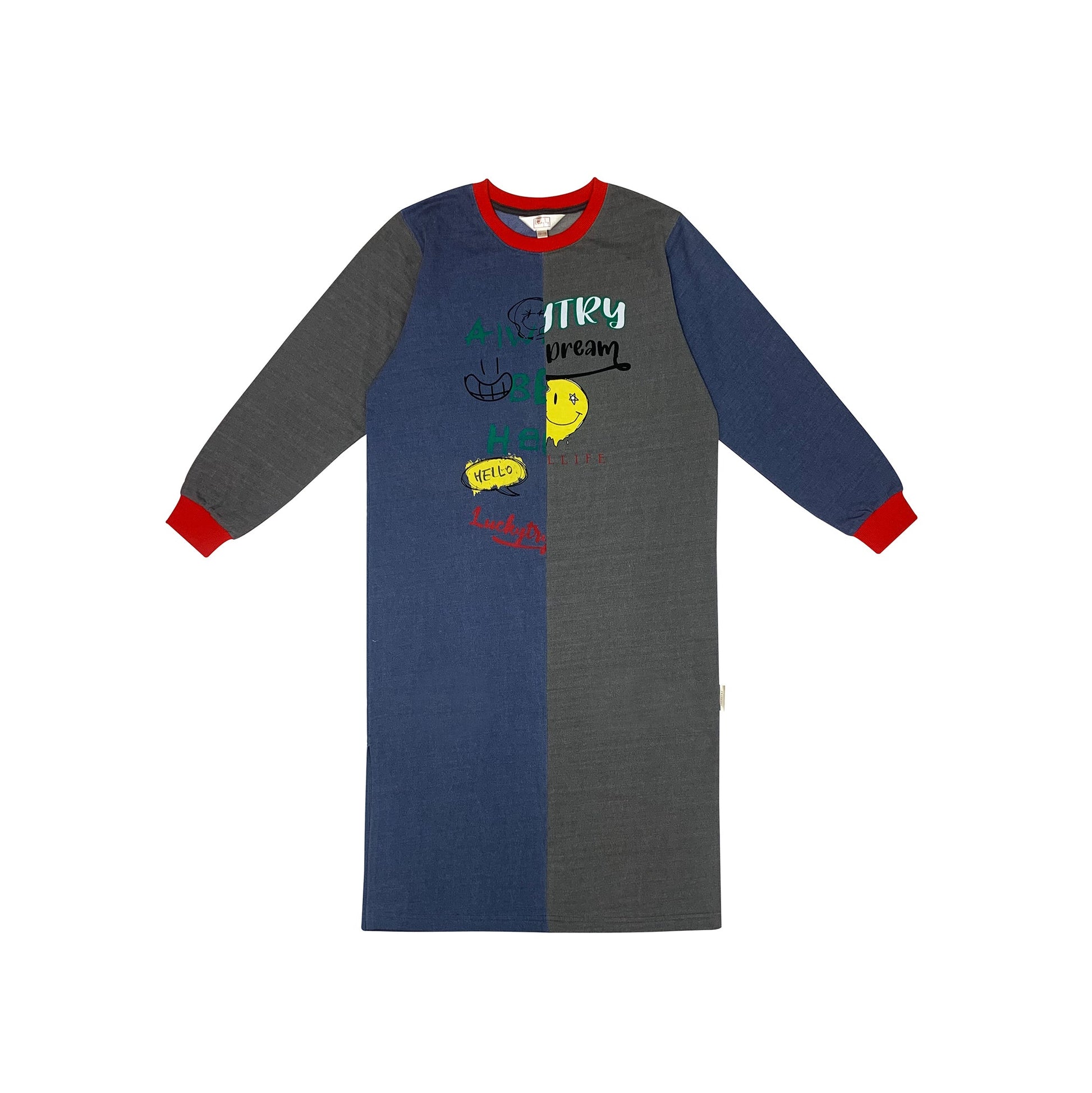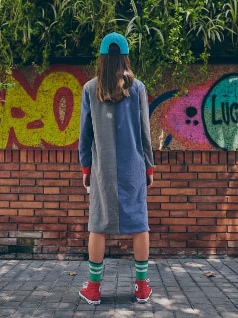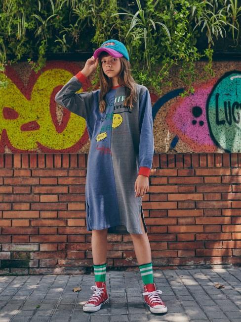 女童蓝色印花棉连衣裙