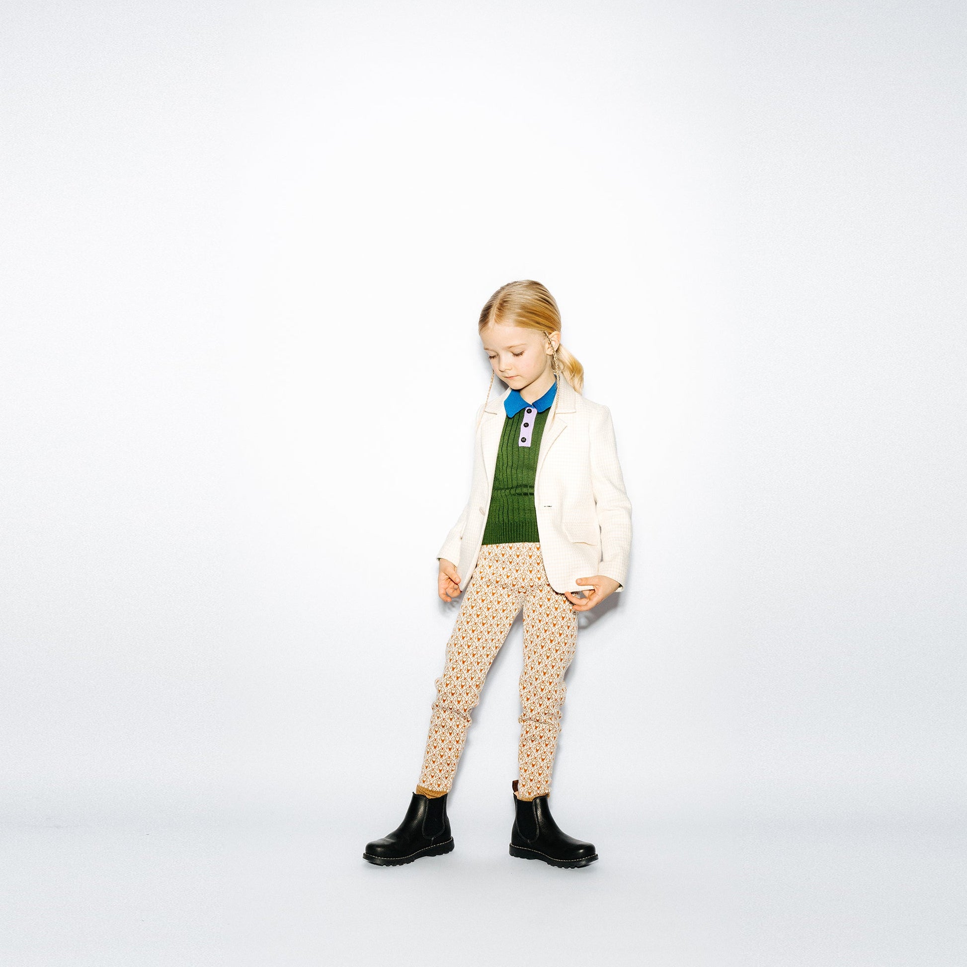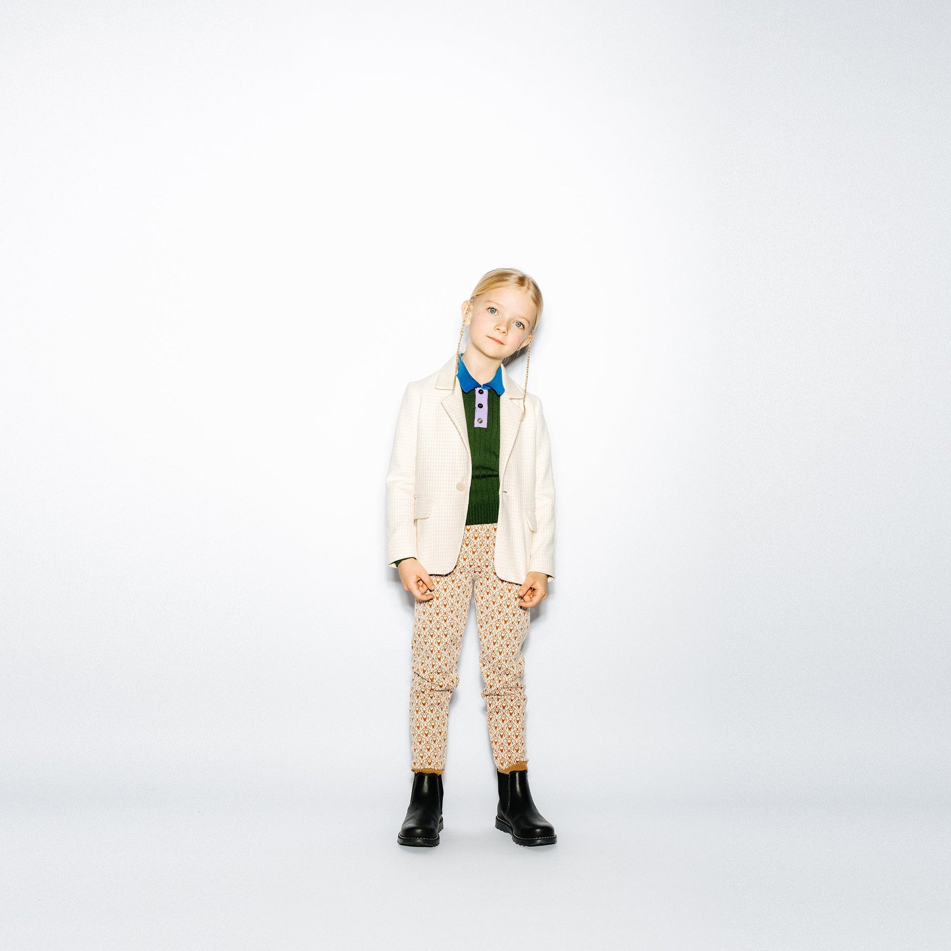 女童白色千鸟格西服外套