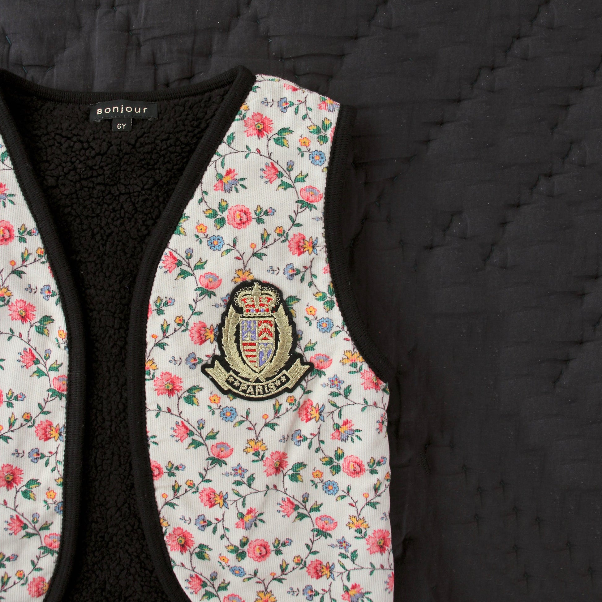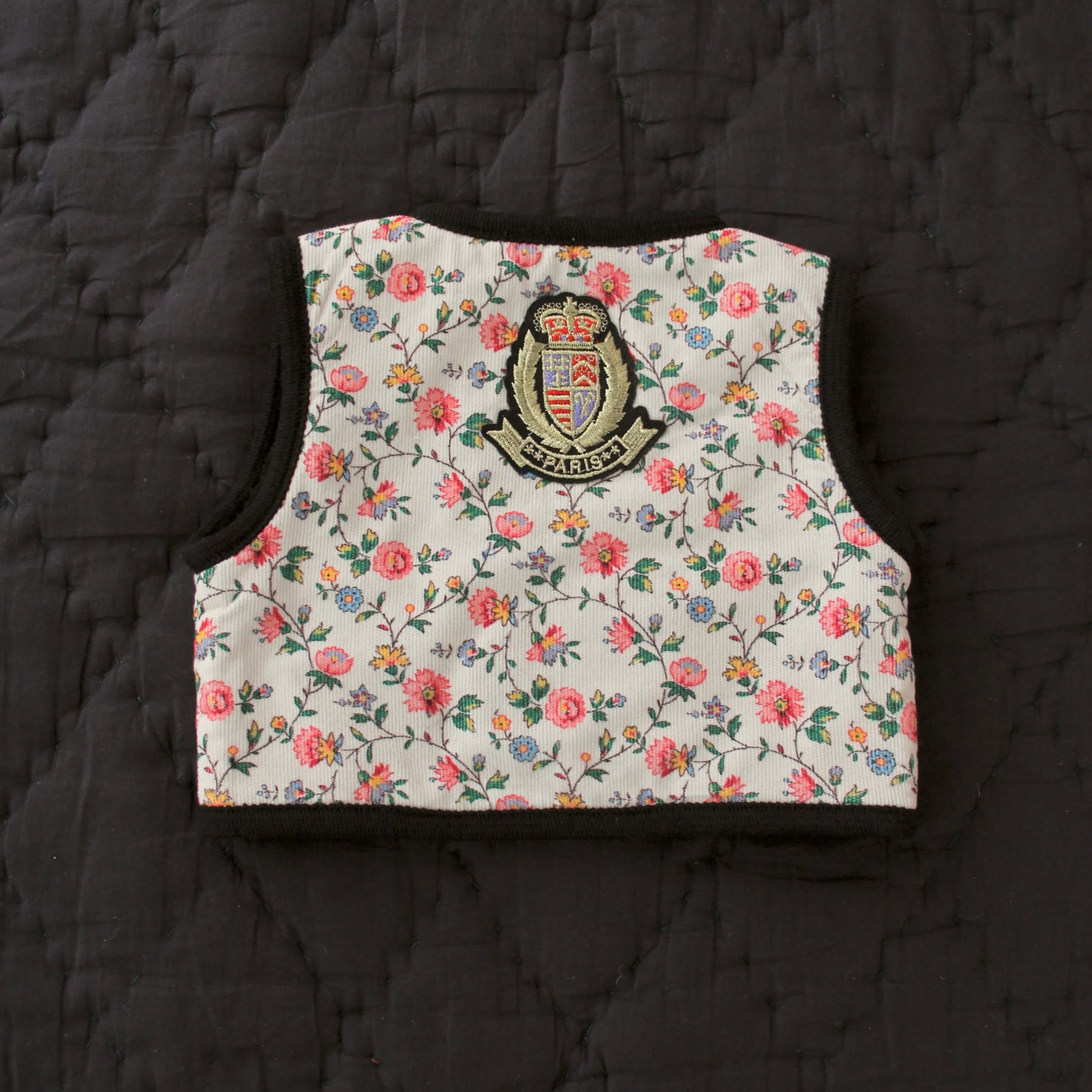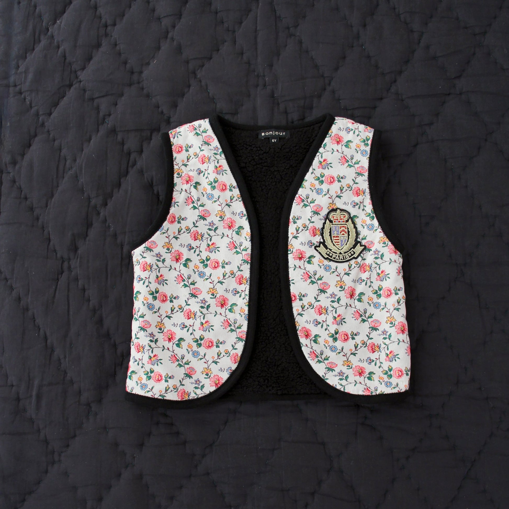 女童象牙白碎花双面马甲