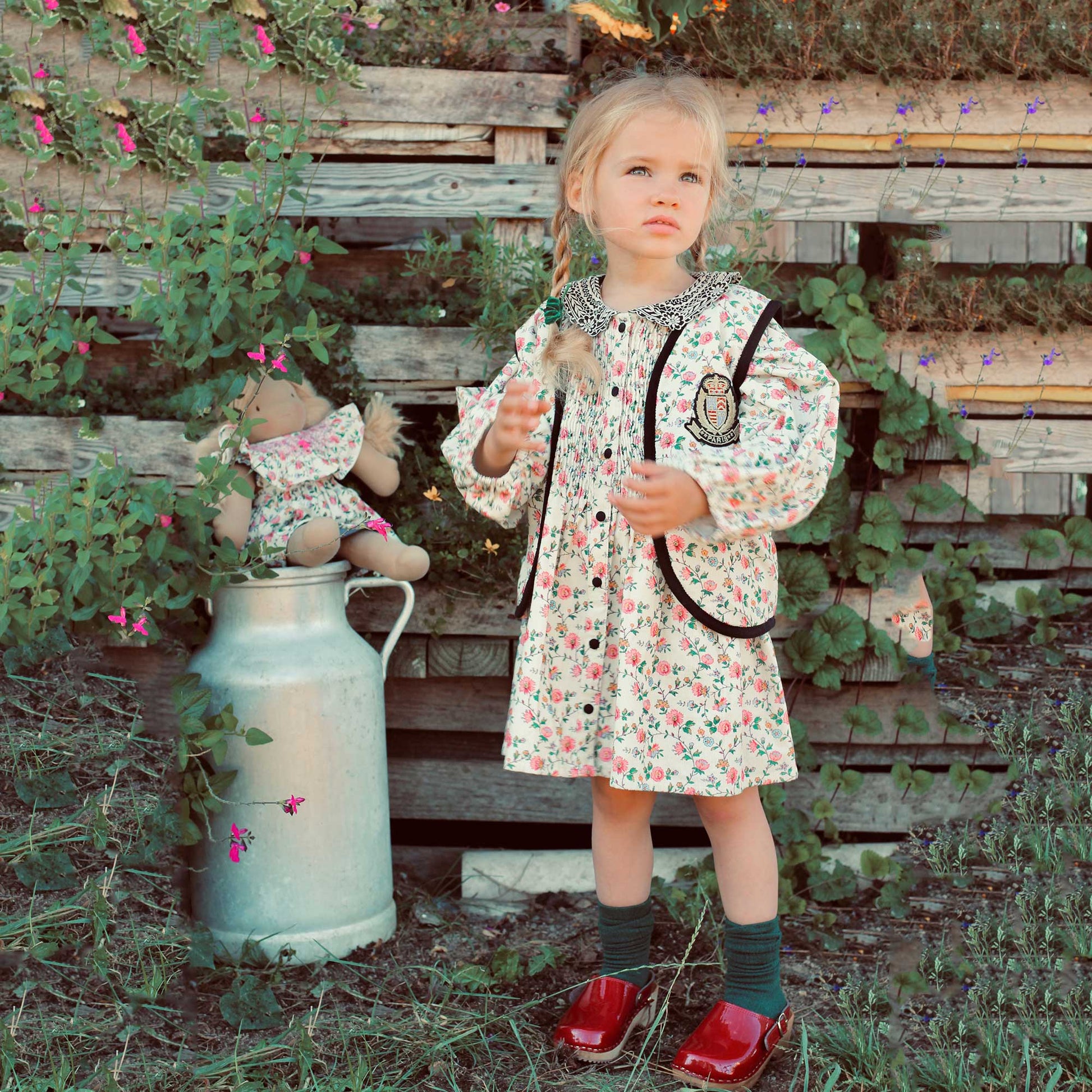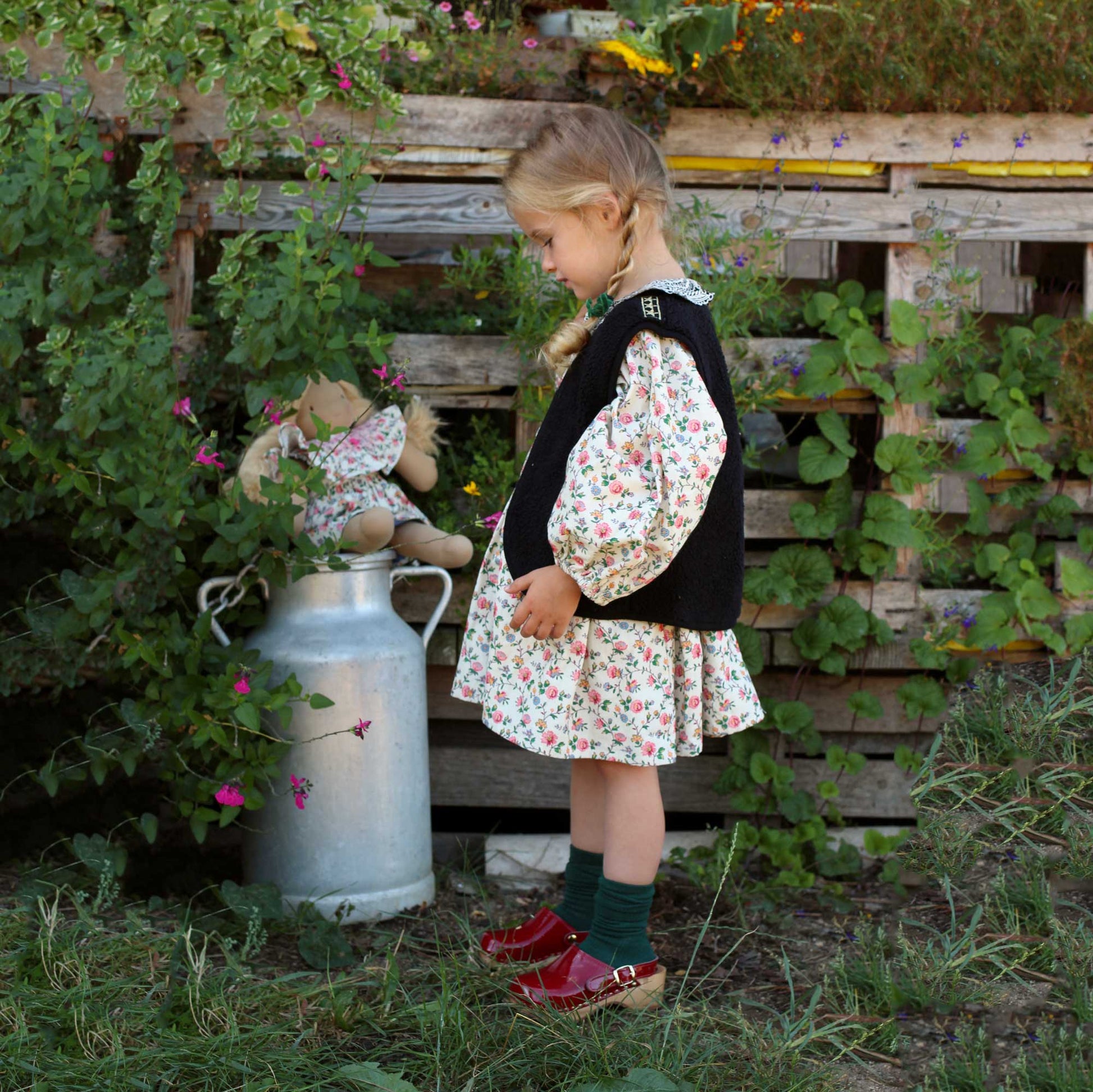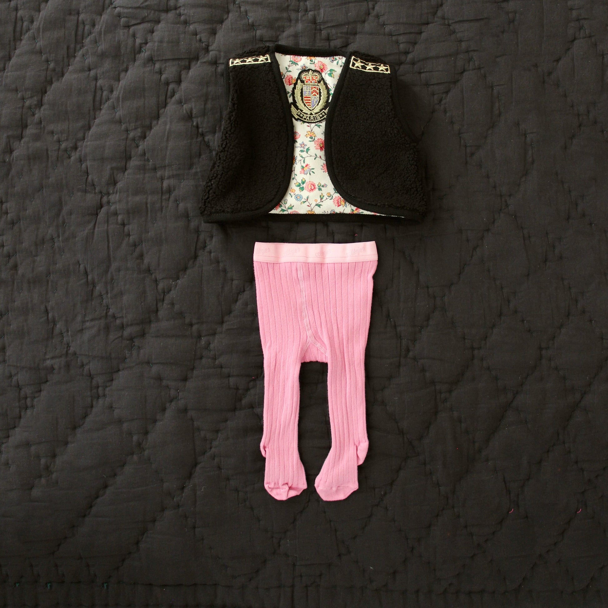 女童象牙白碎花双面马甲