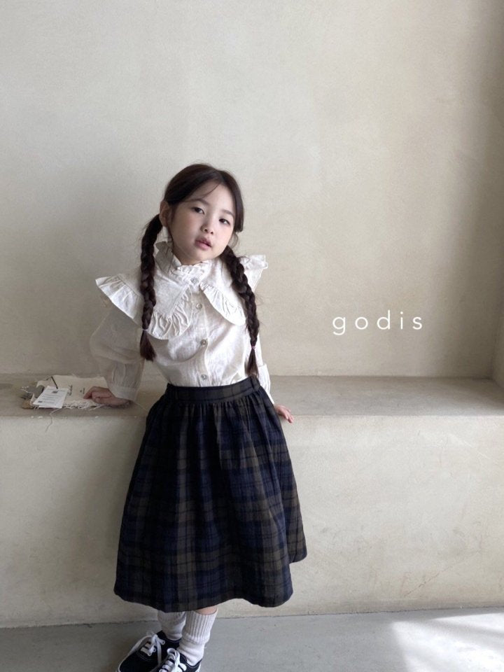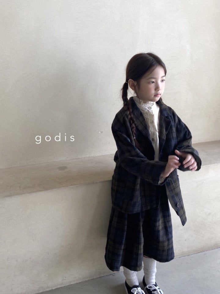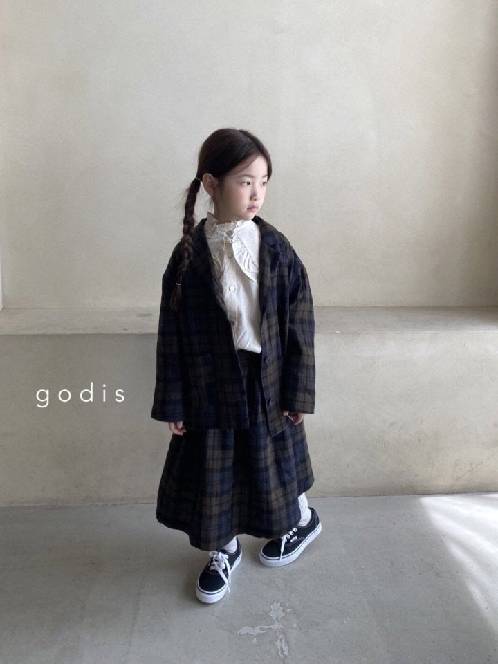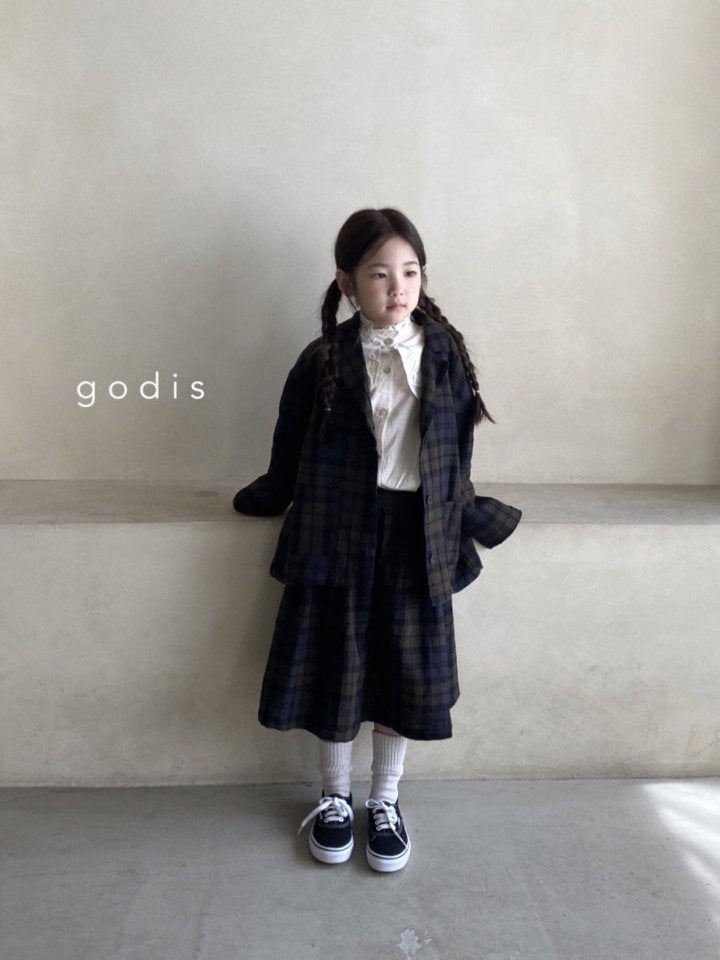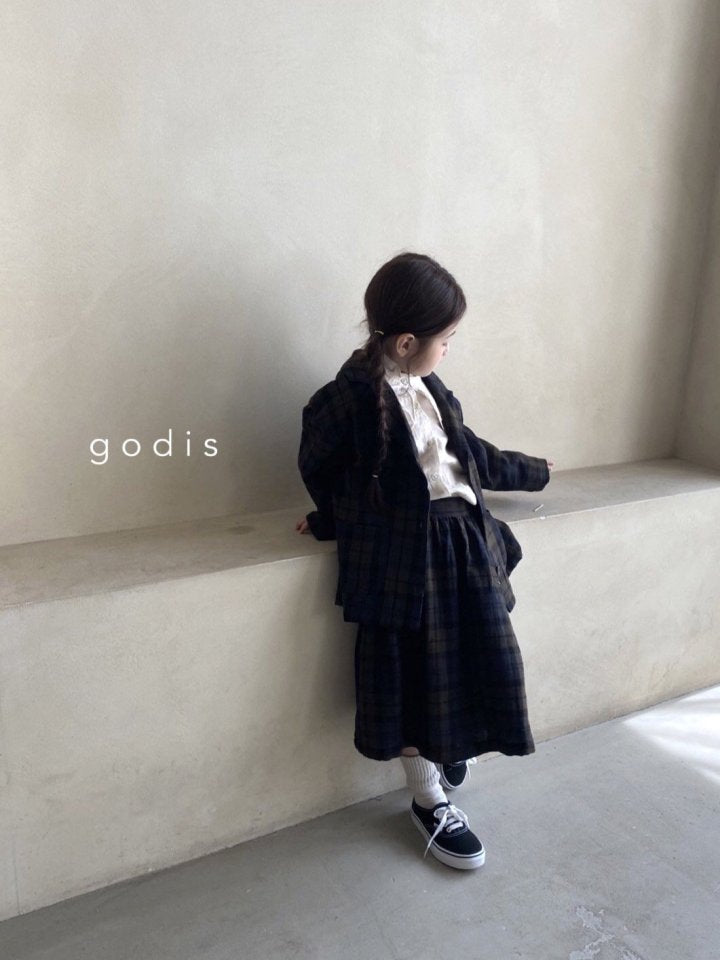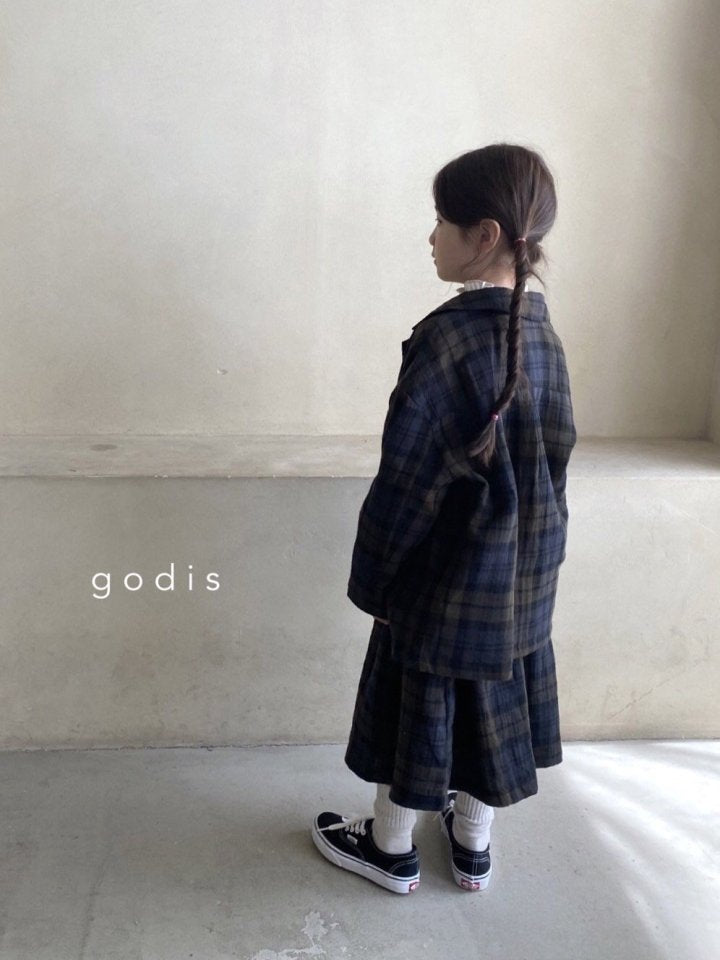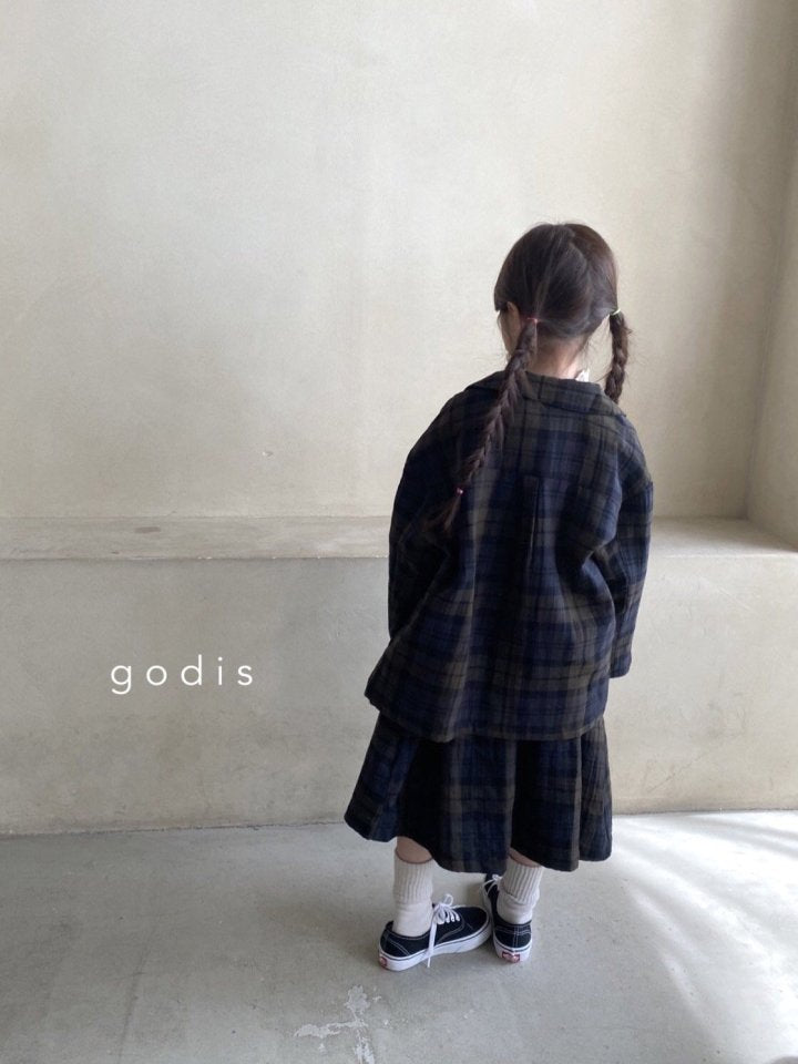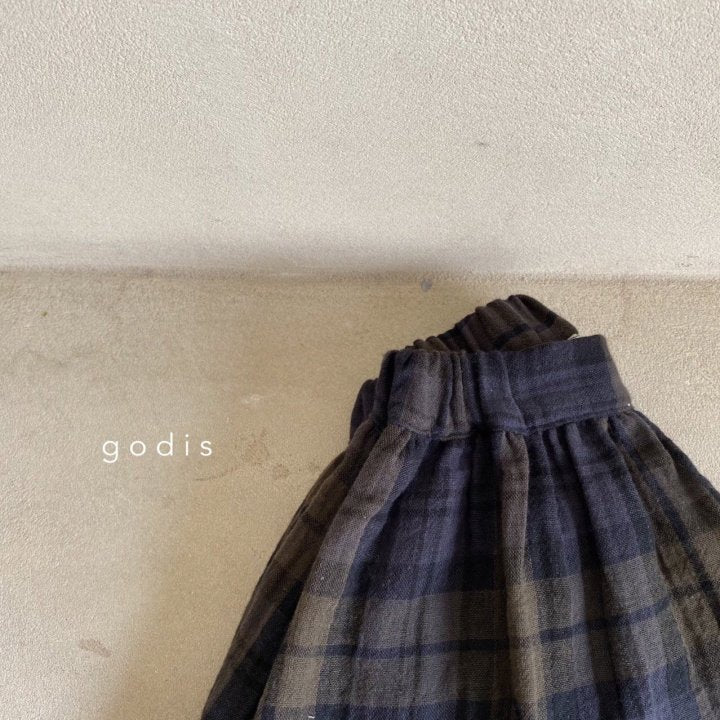女童藏青色格子棉短裙