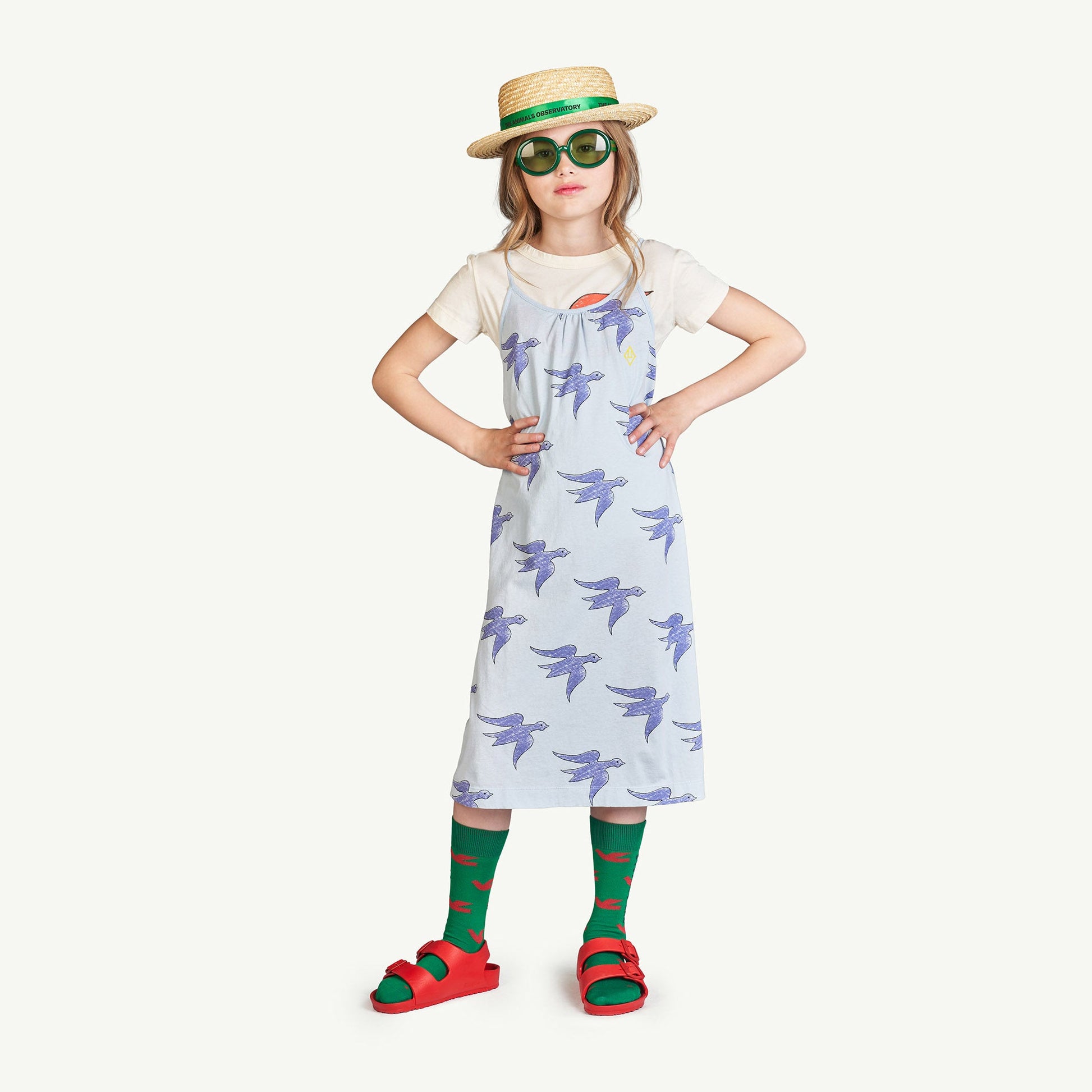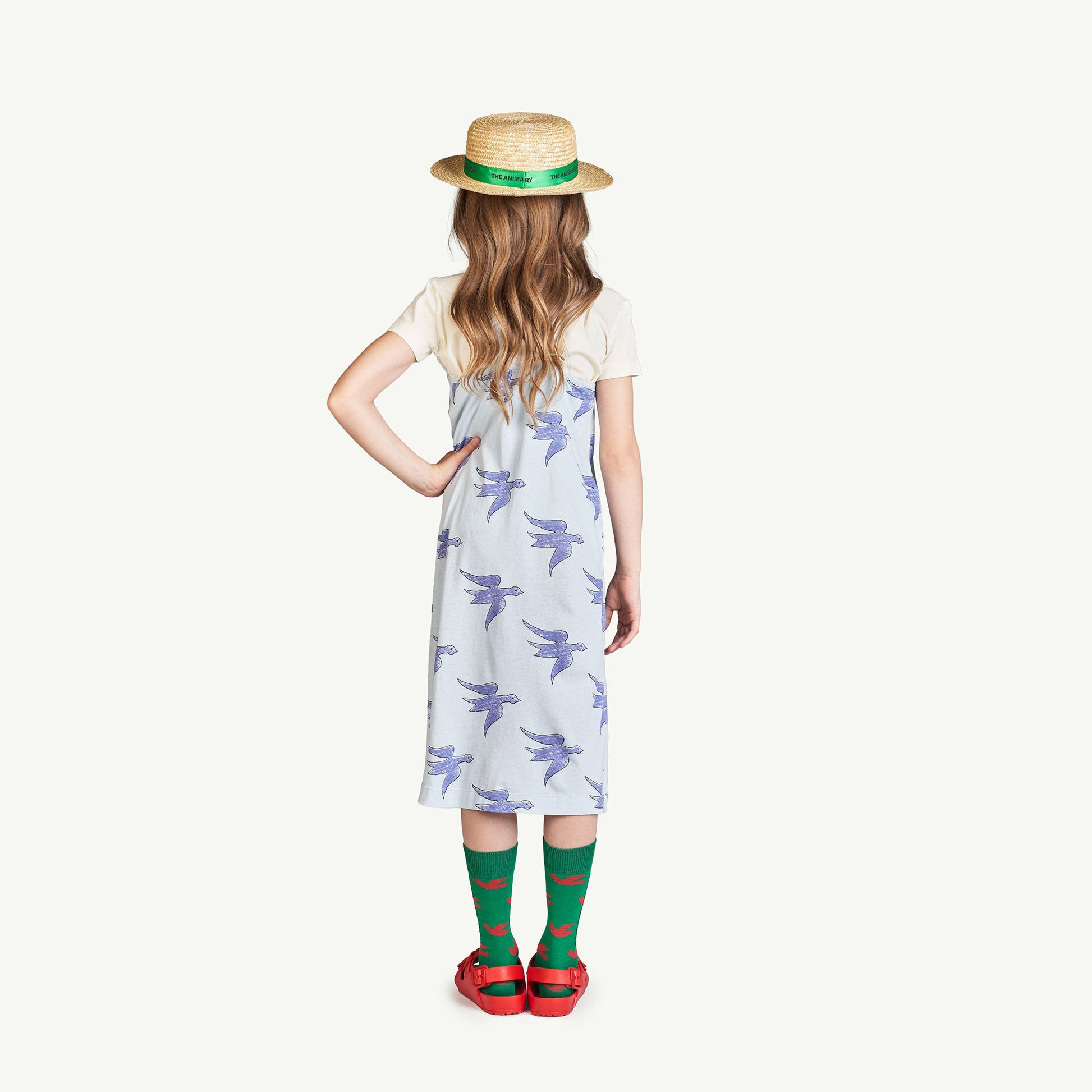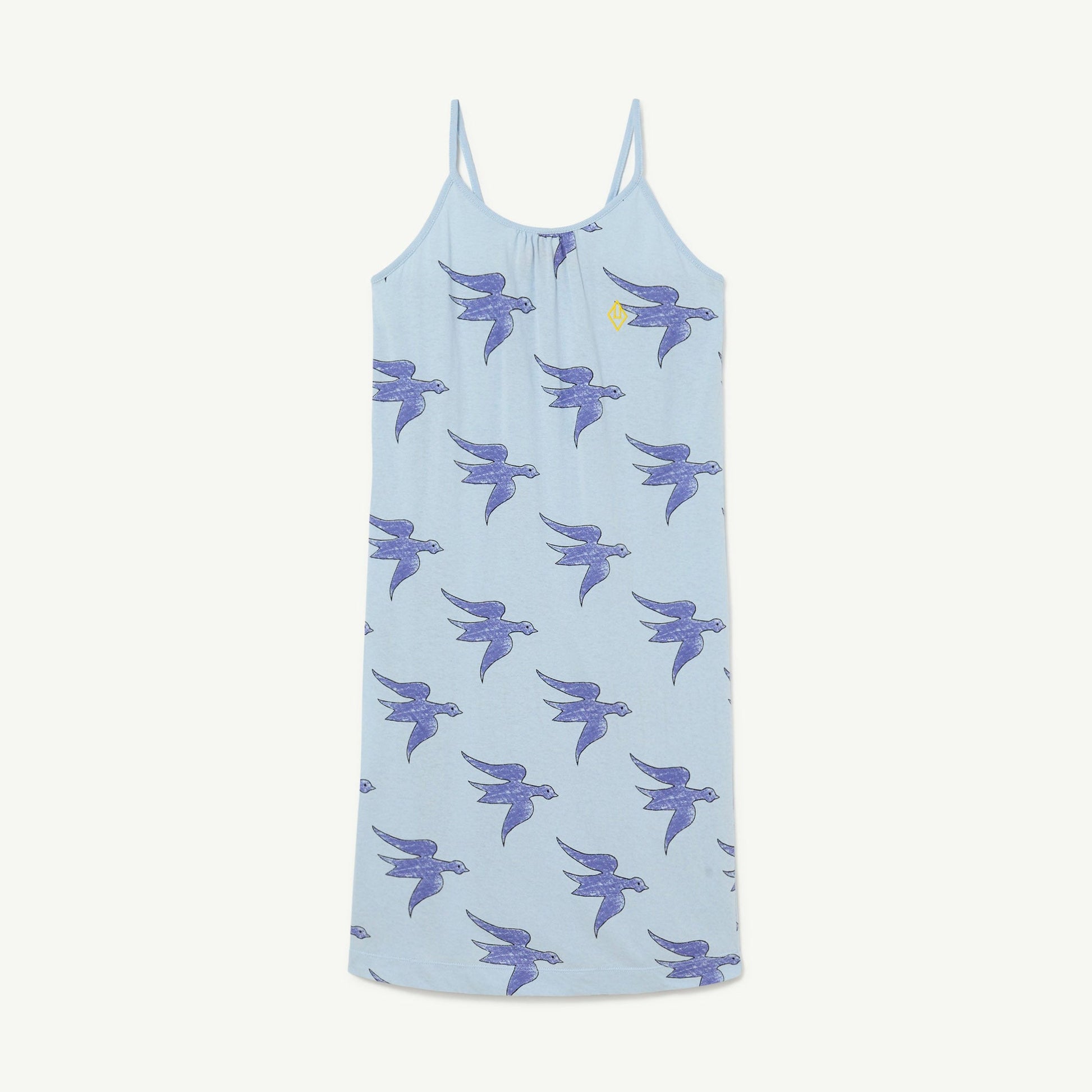 女童蓝色小鸟棉连衣裙