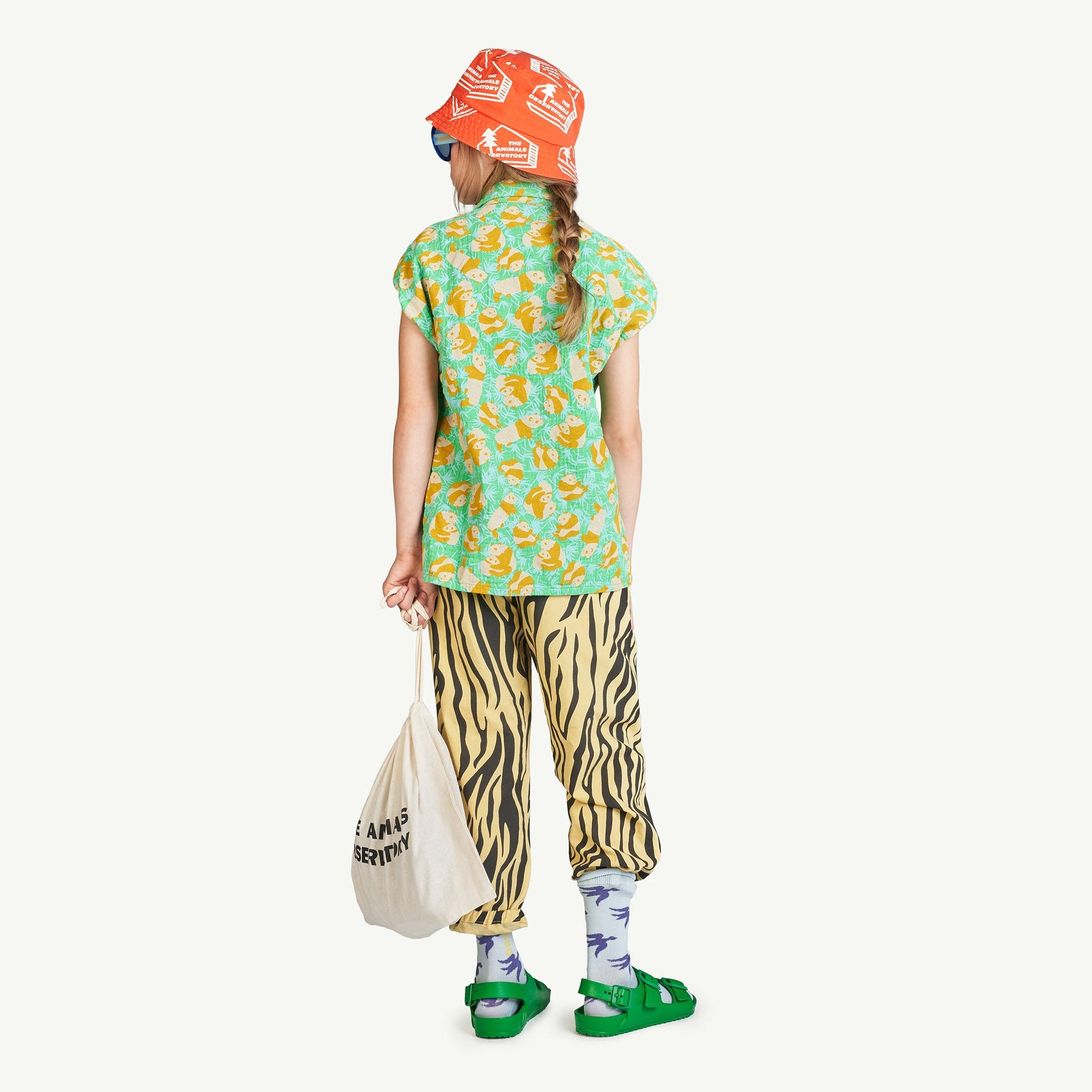 儿童绿色熊猫棉衬衫