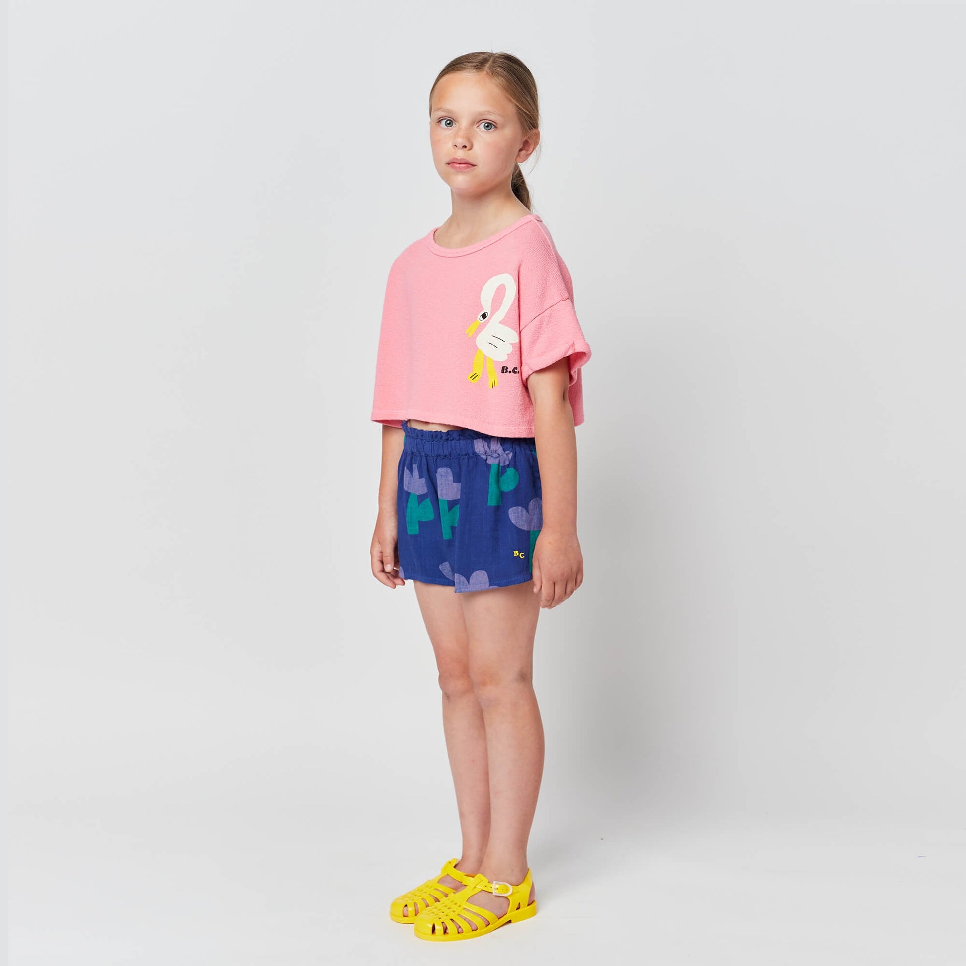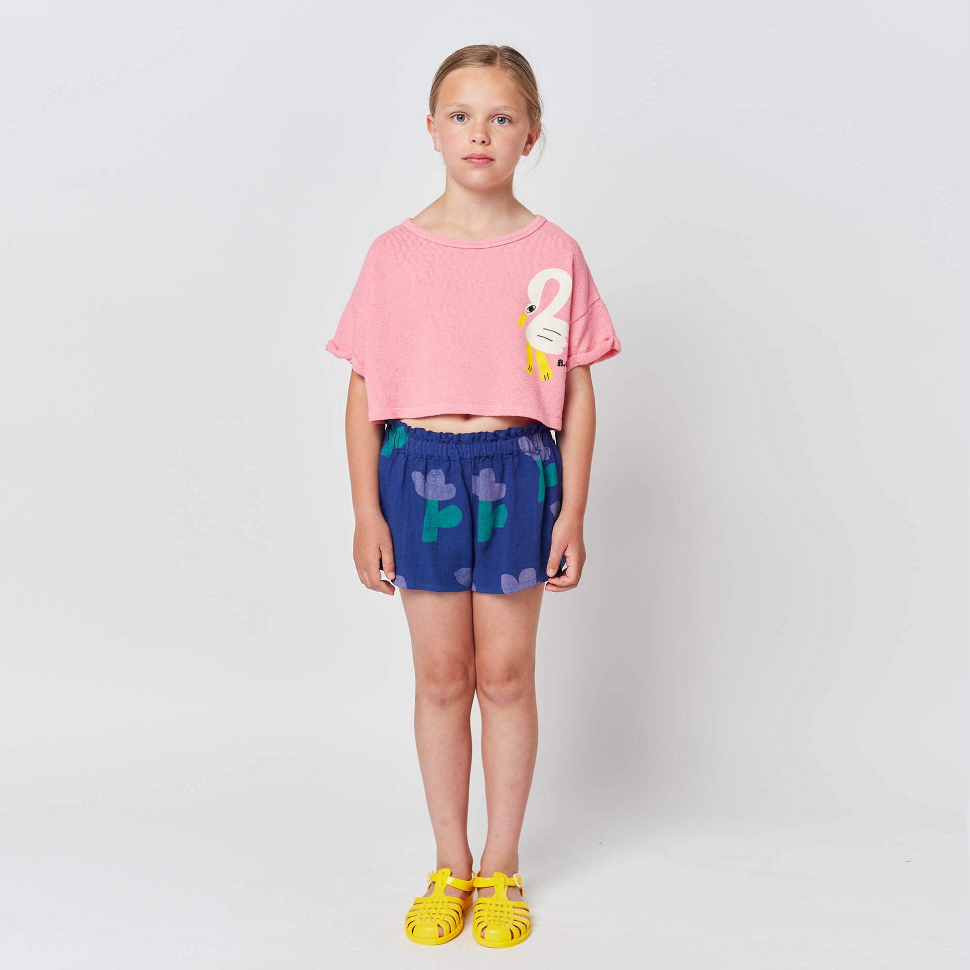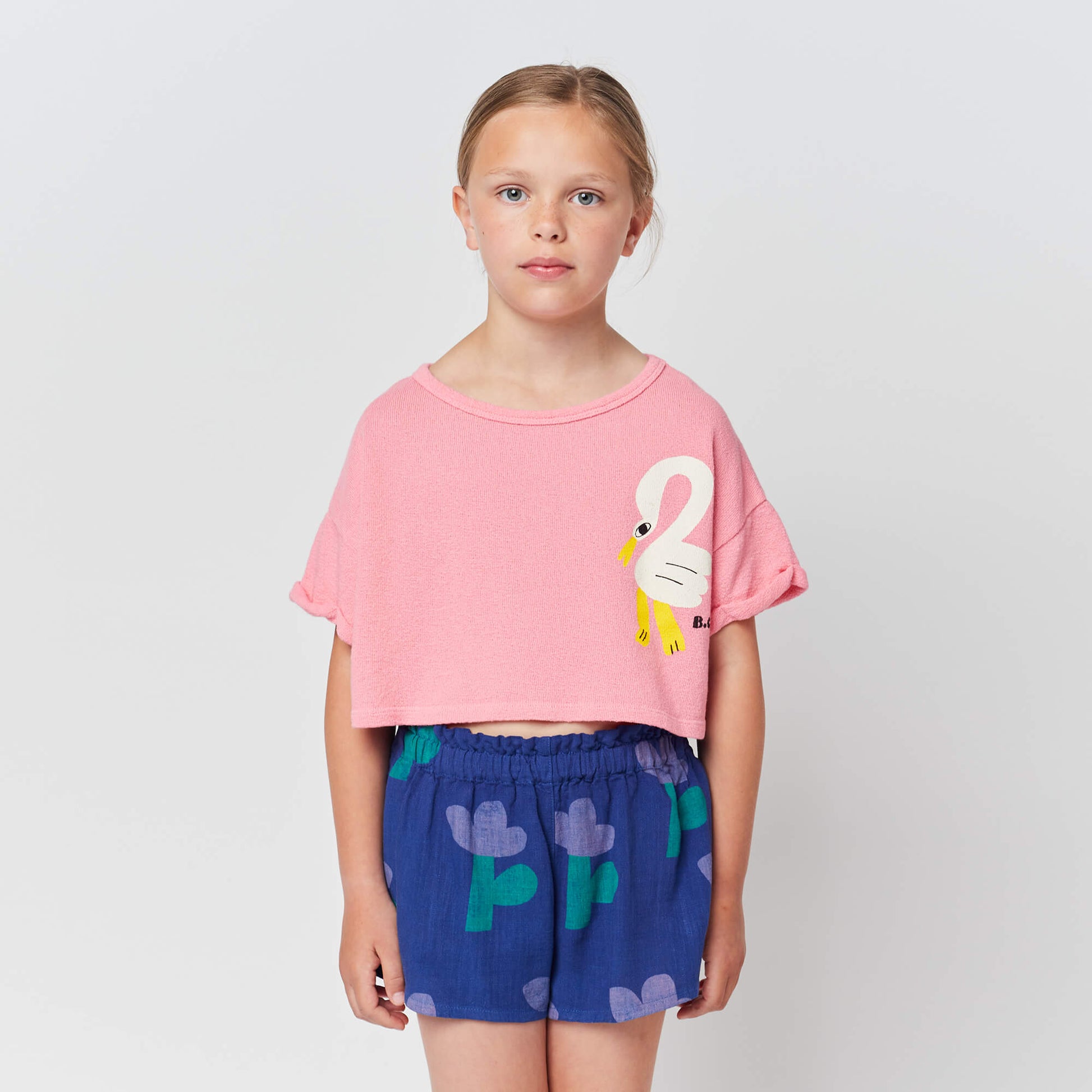 女童粉色印花棉短款卫衣