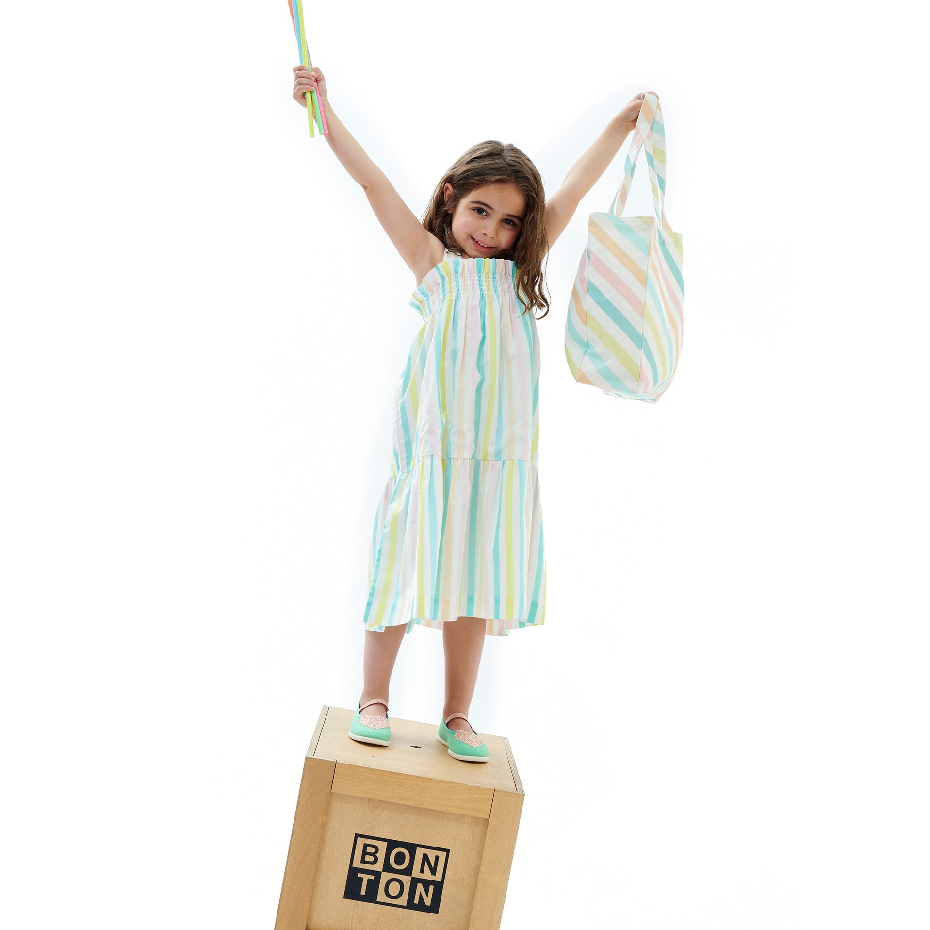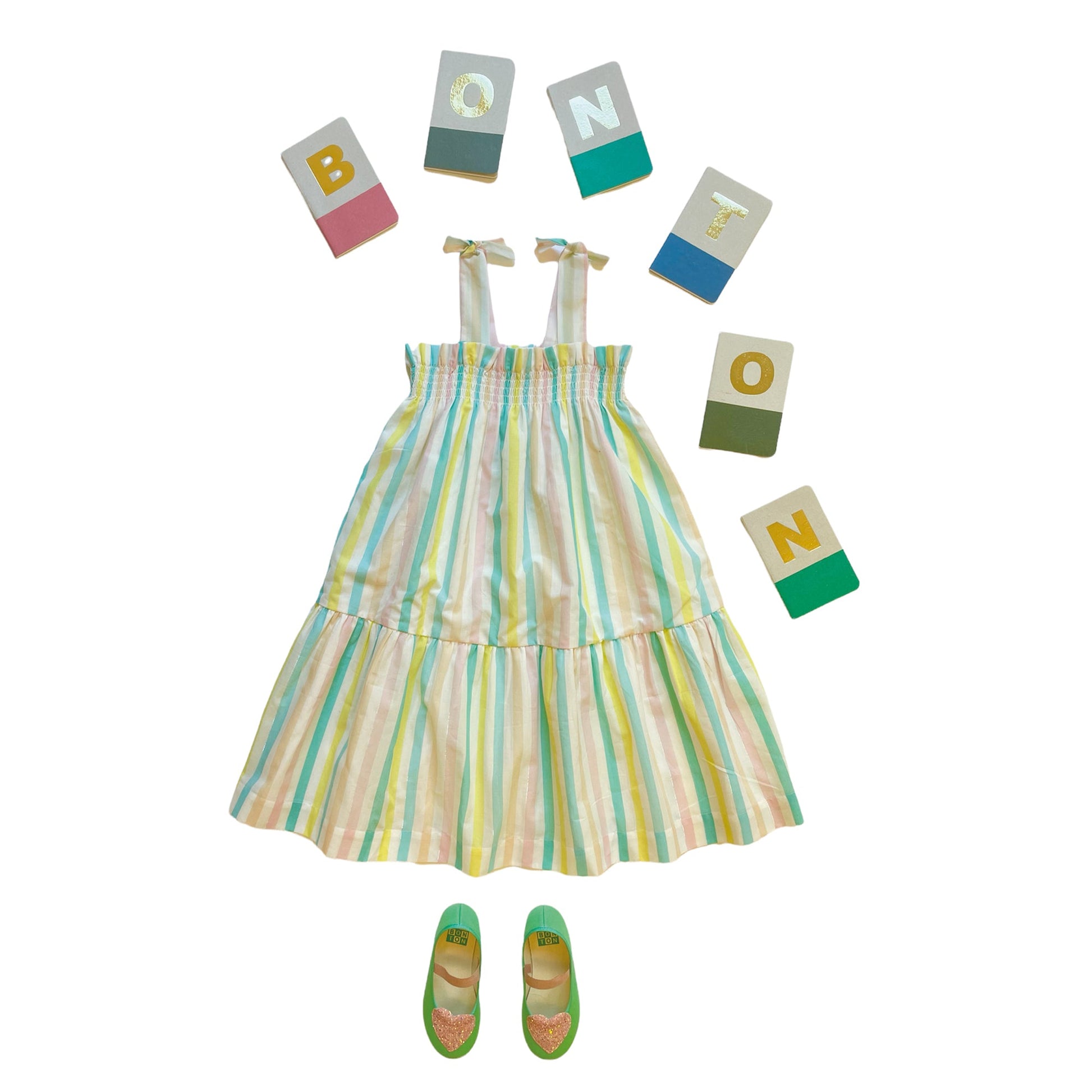 女童彩色条纹棉连衣裙