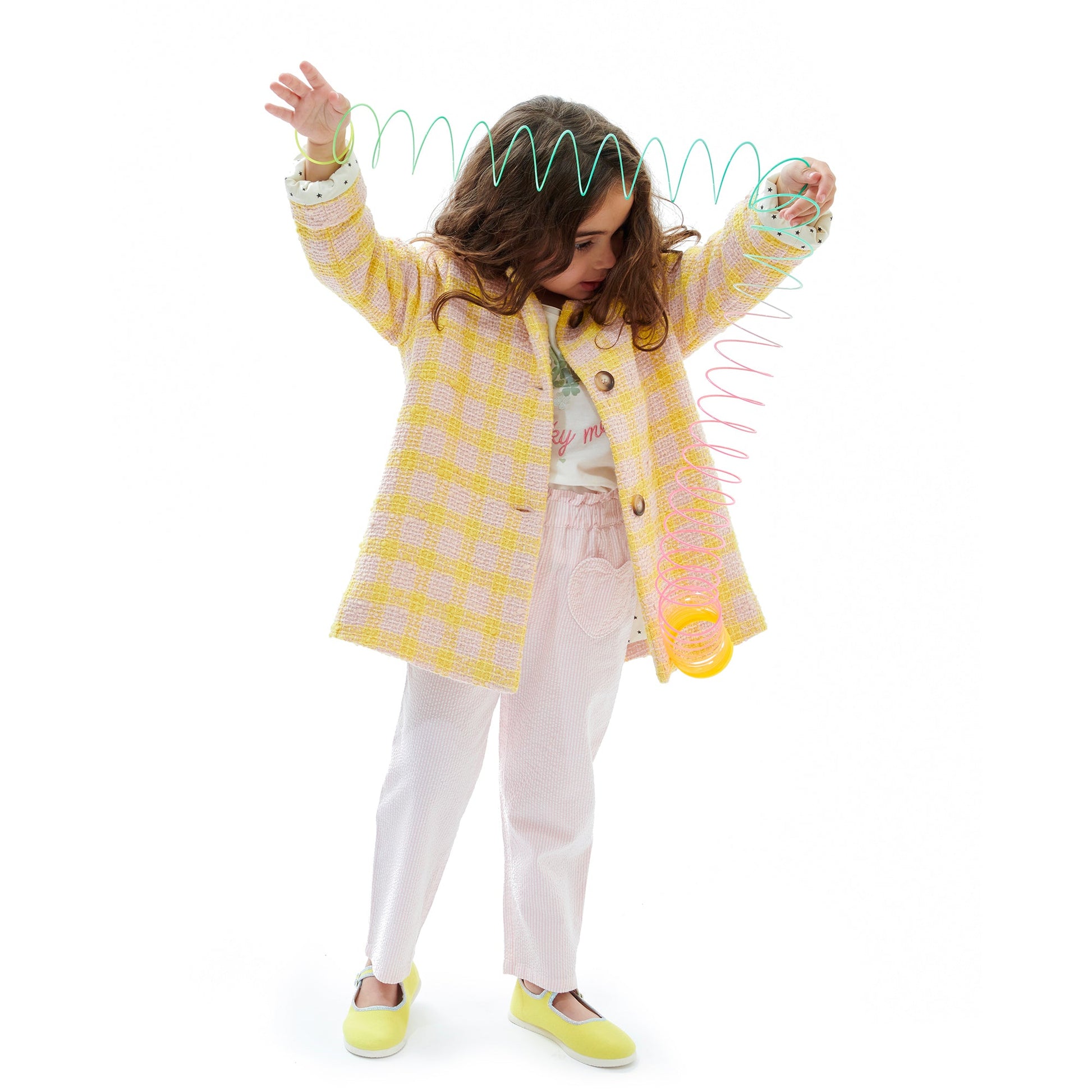 女童粉色条纹棉长裤