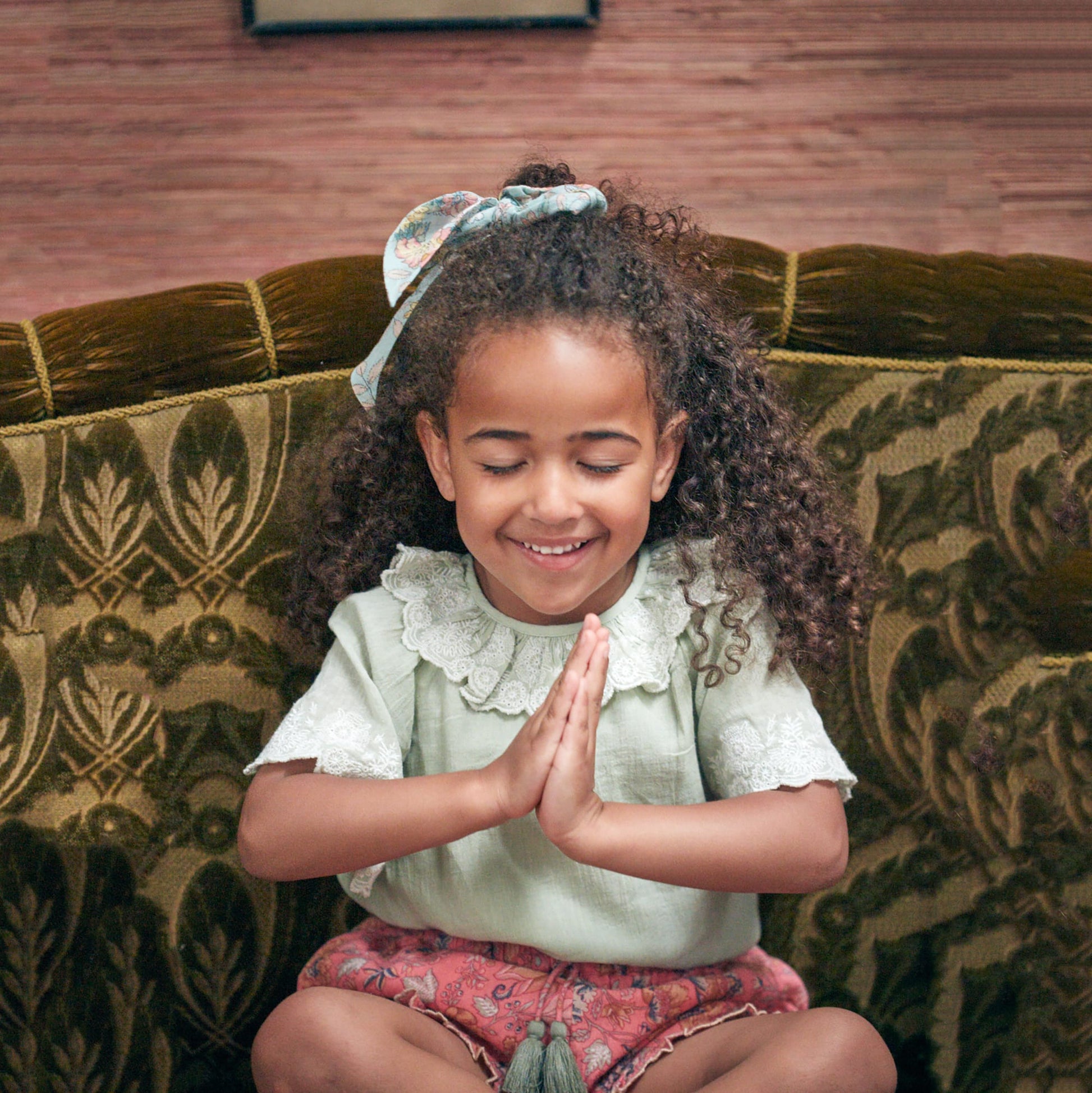 女童绿色碎花发带