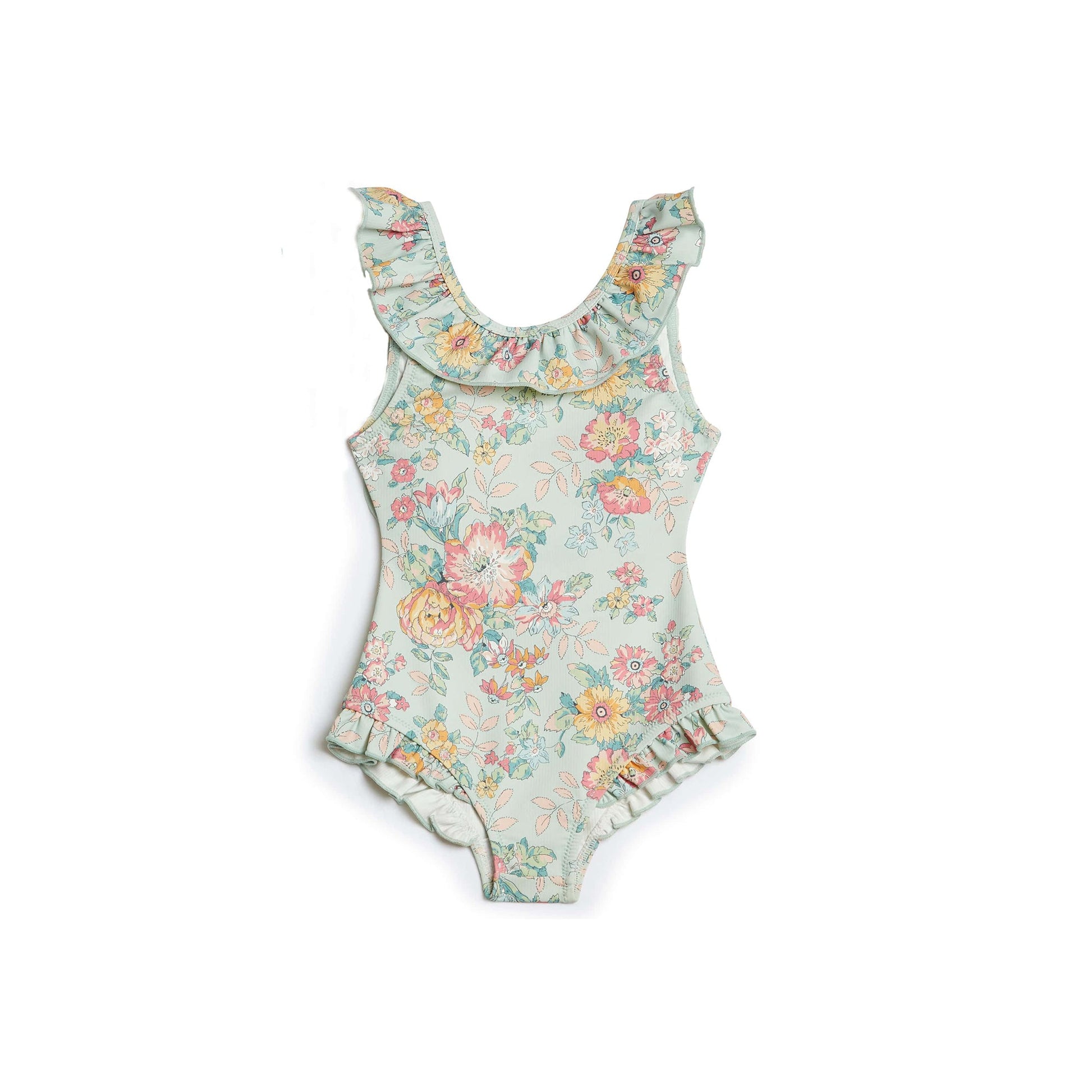 女童绿色花朵印花泳衣