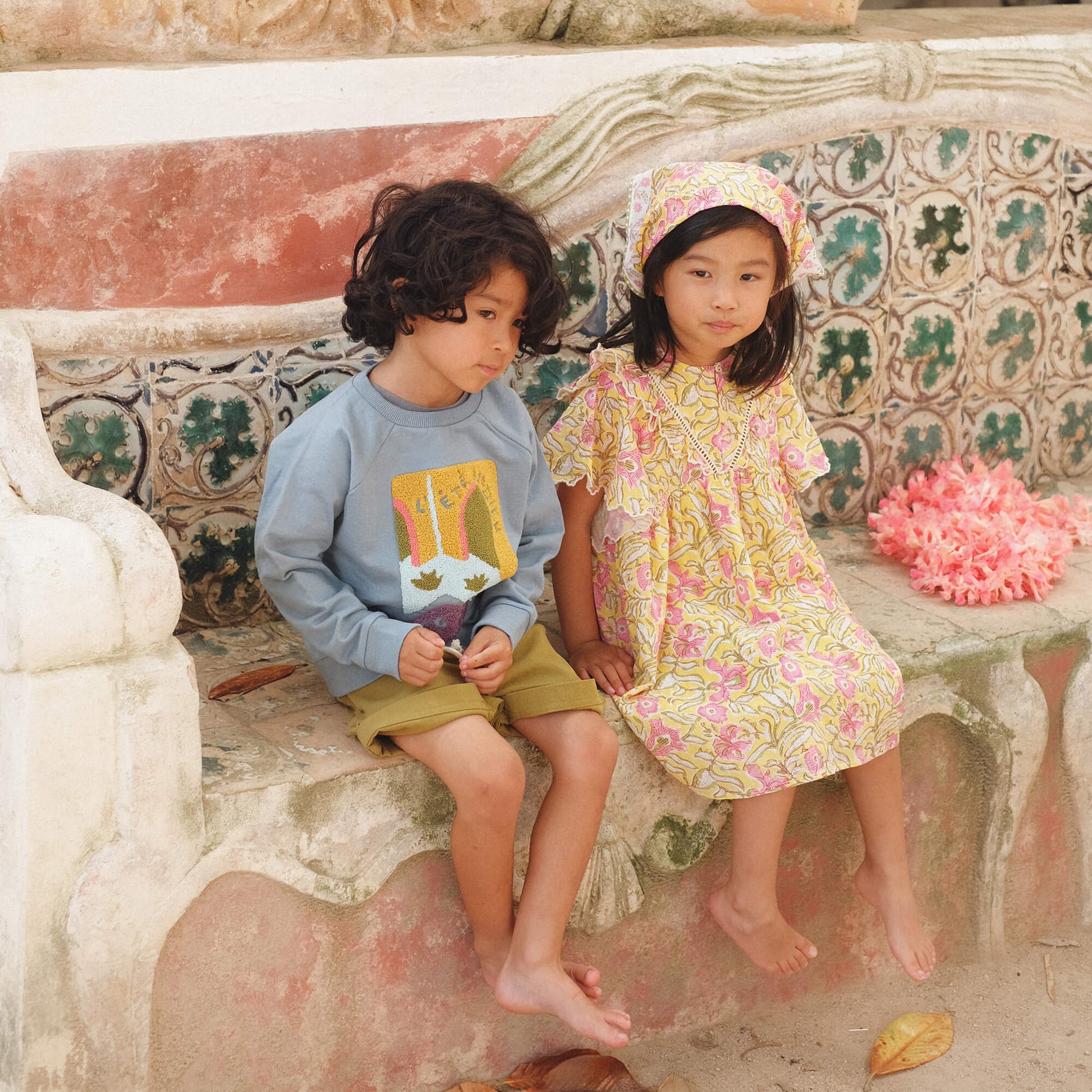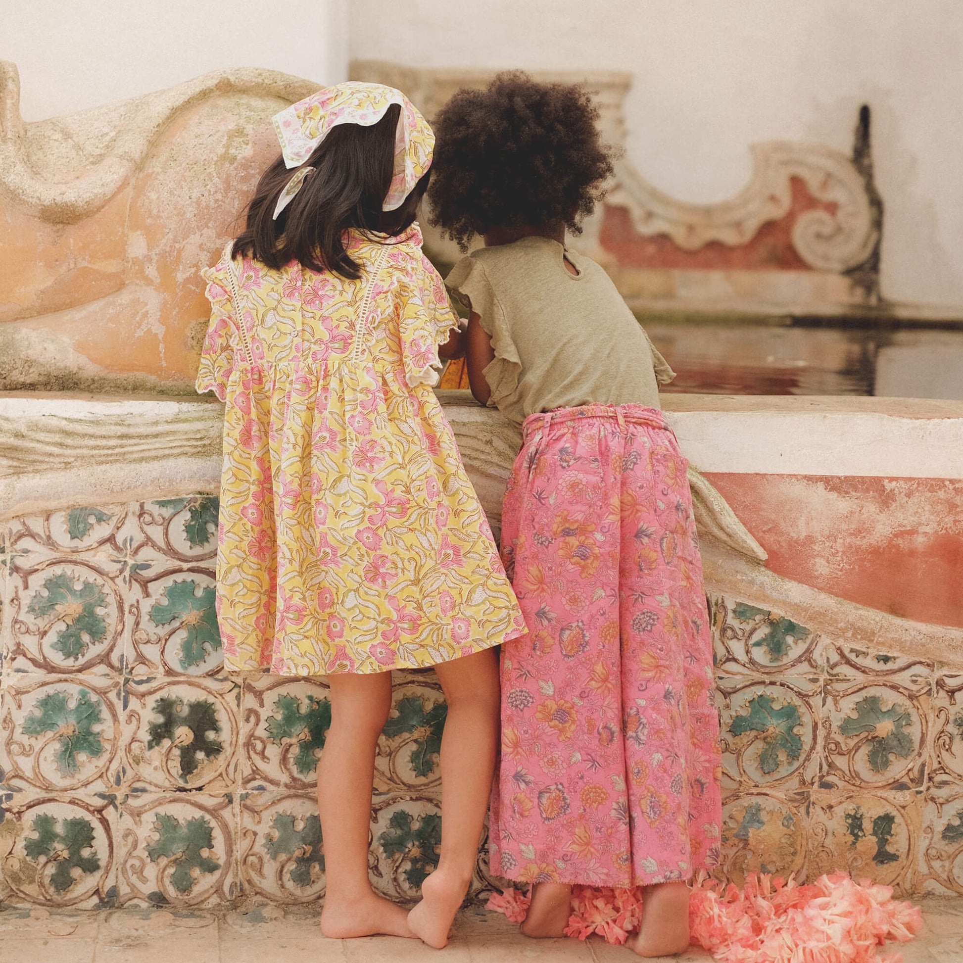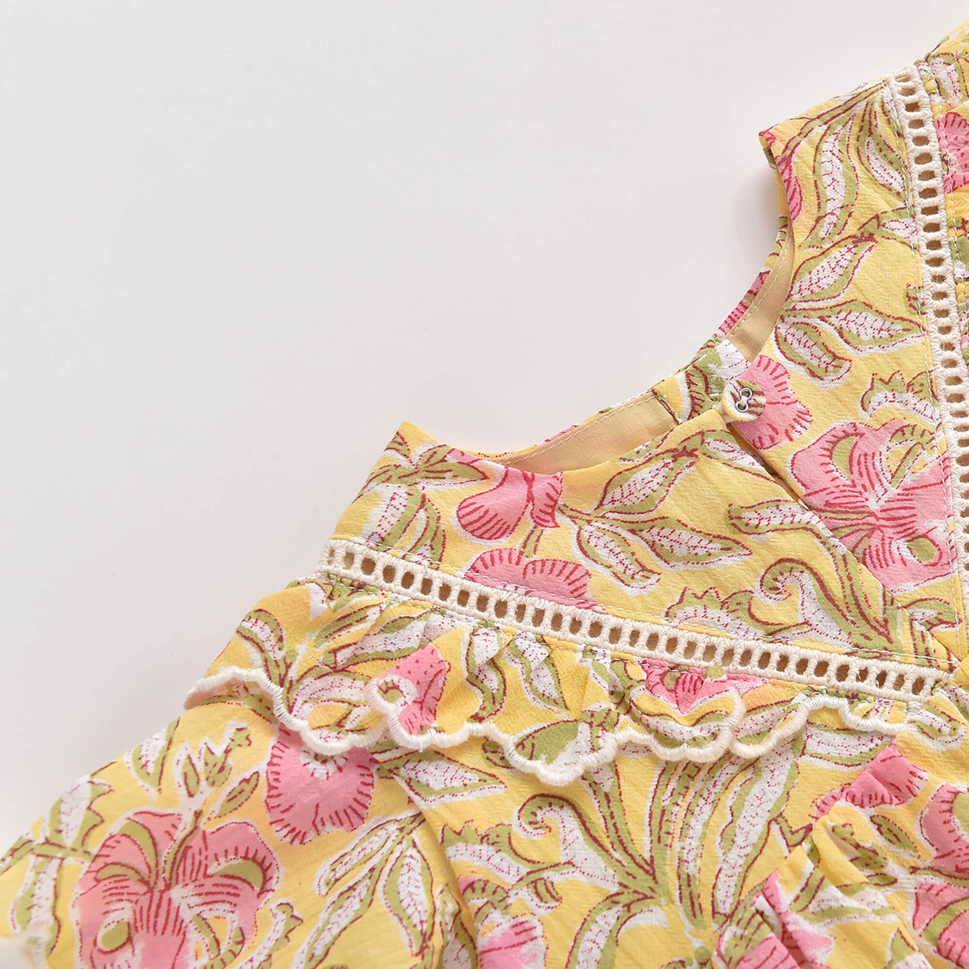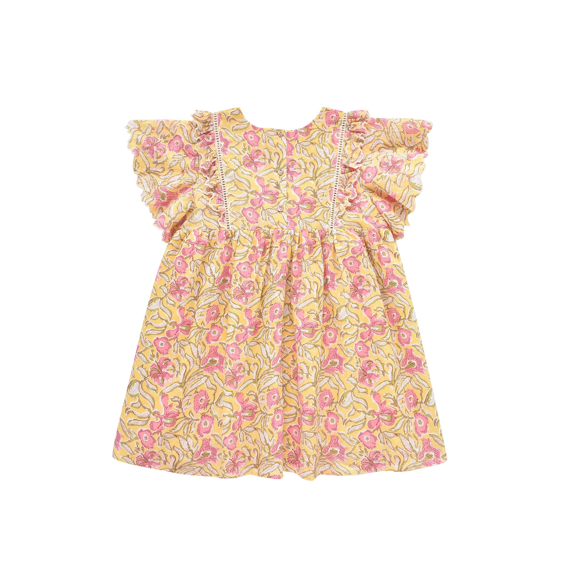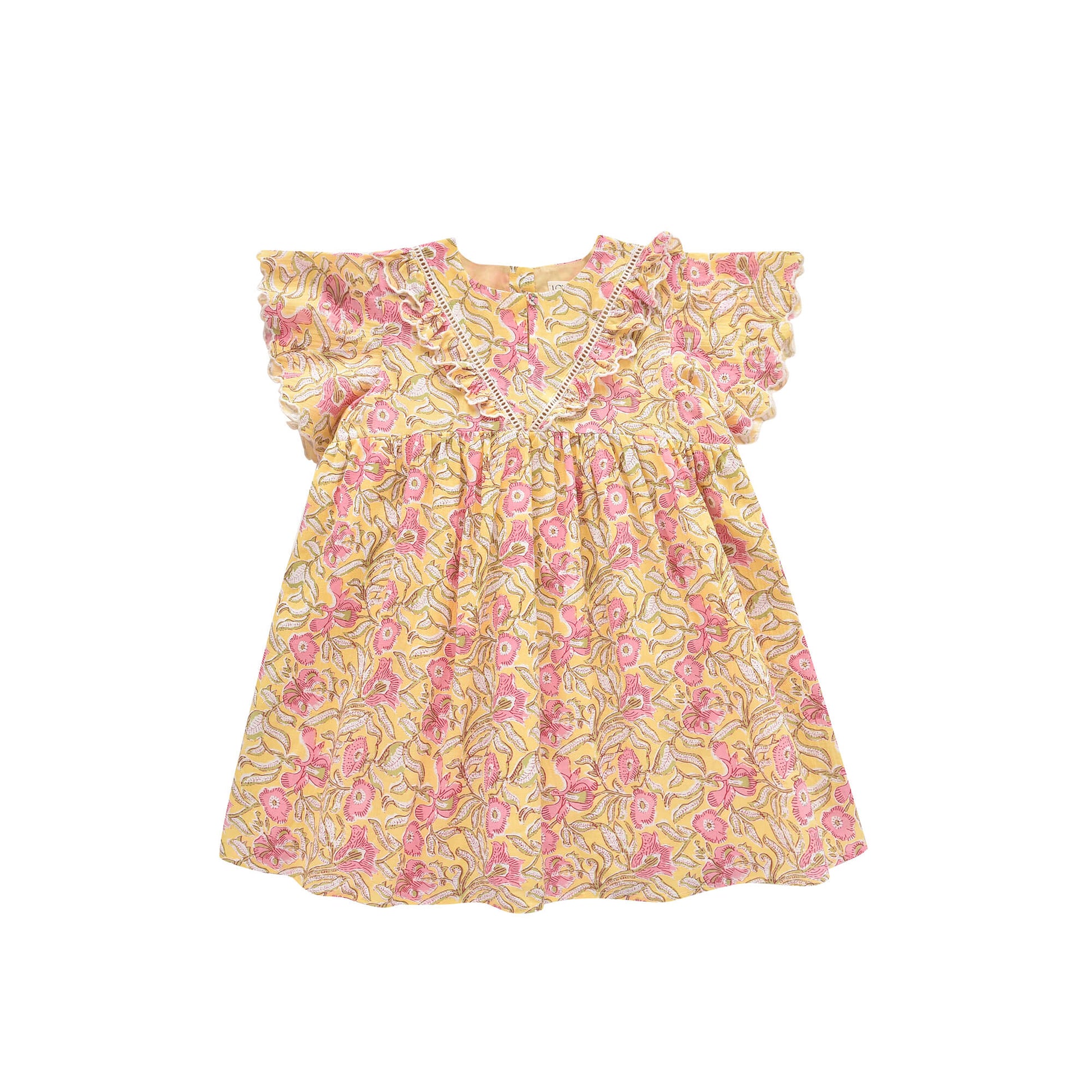 女童黄色花朵棉连衣裙