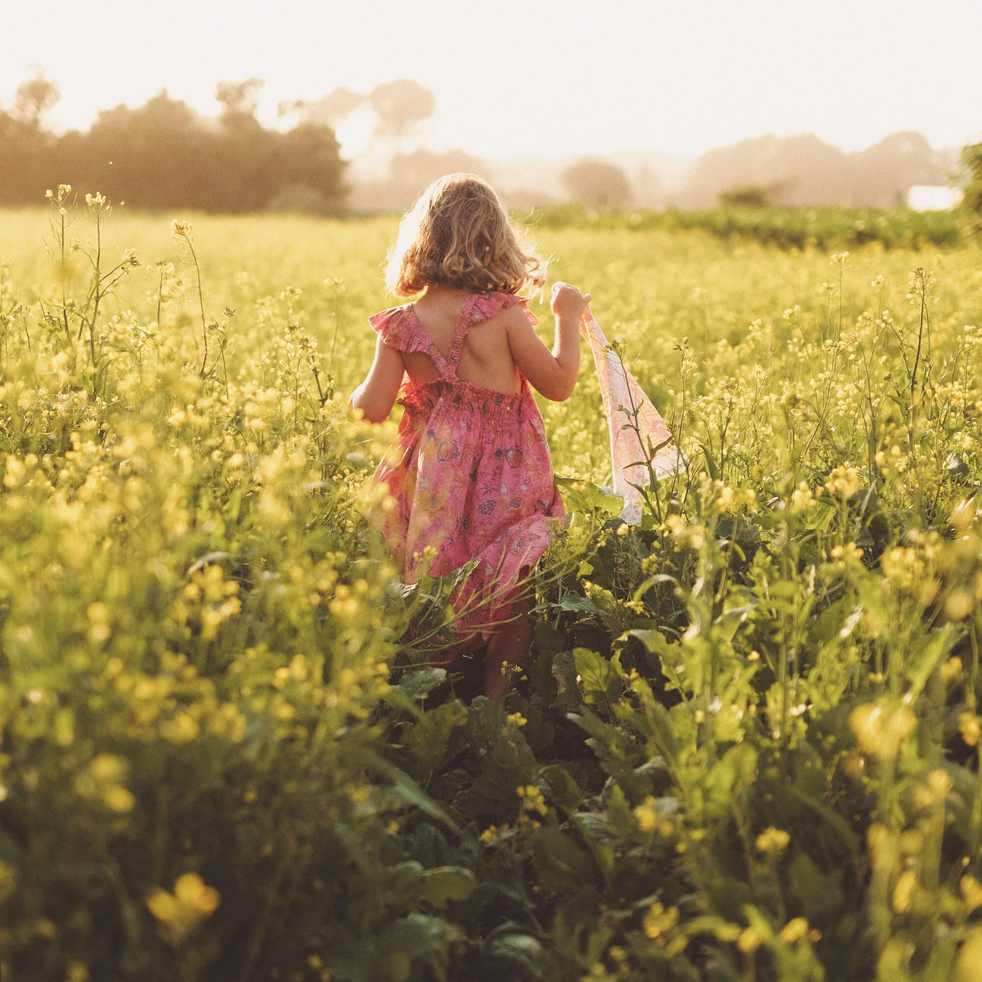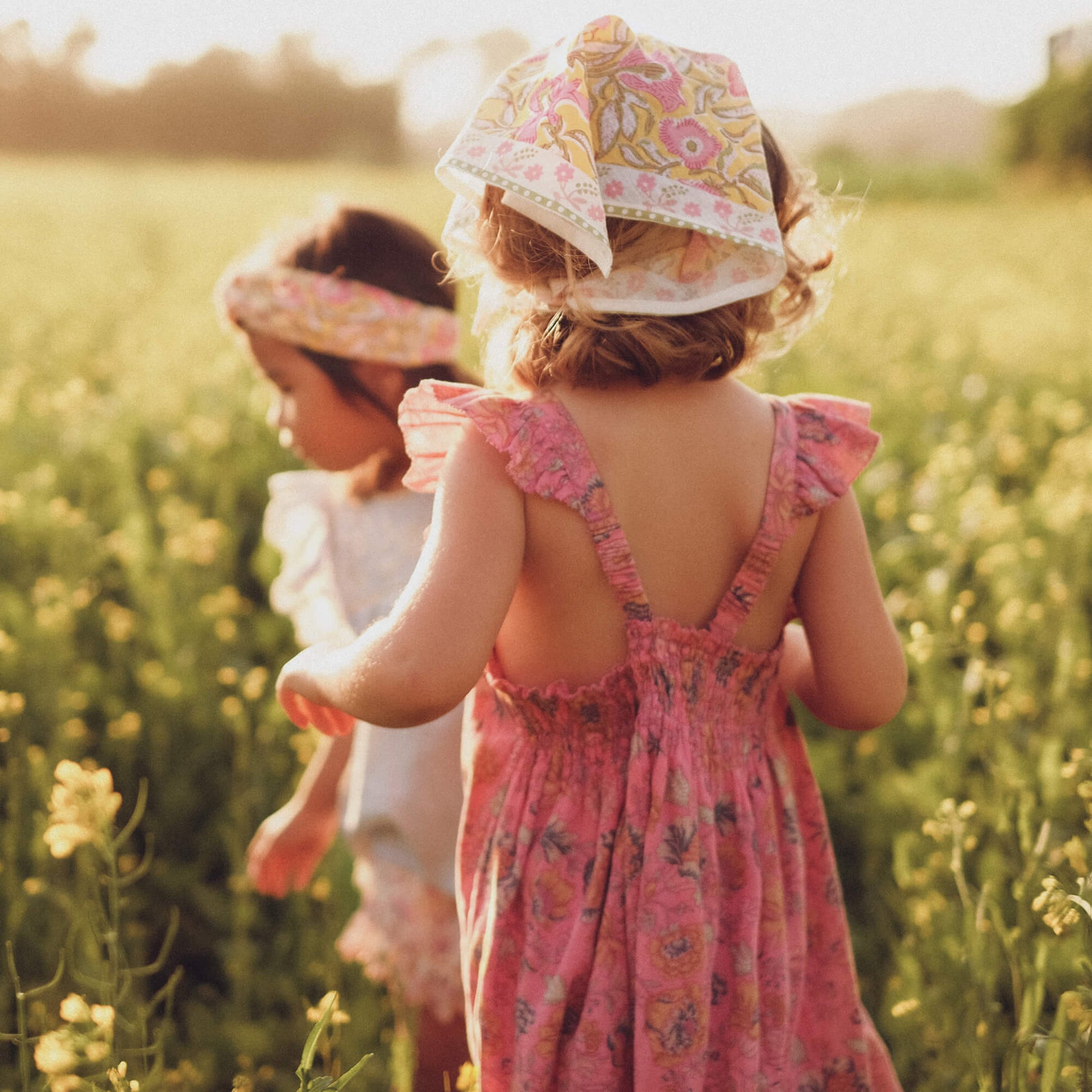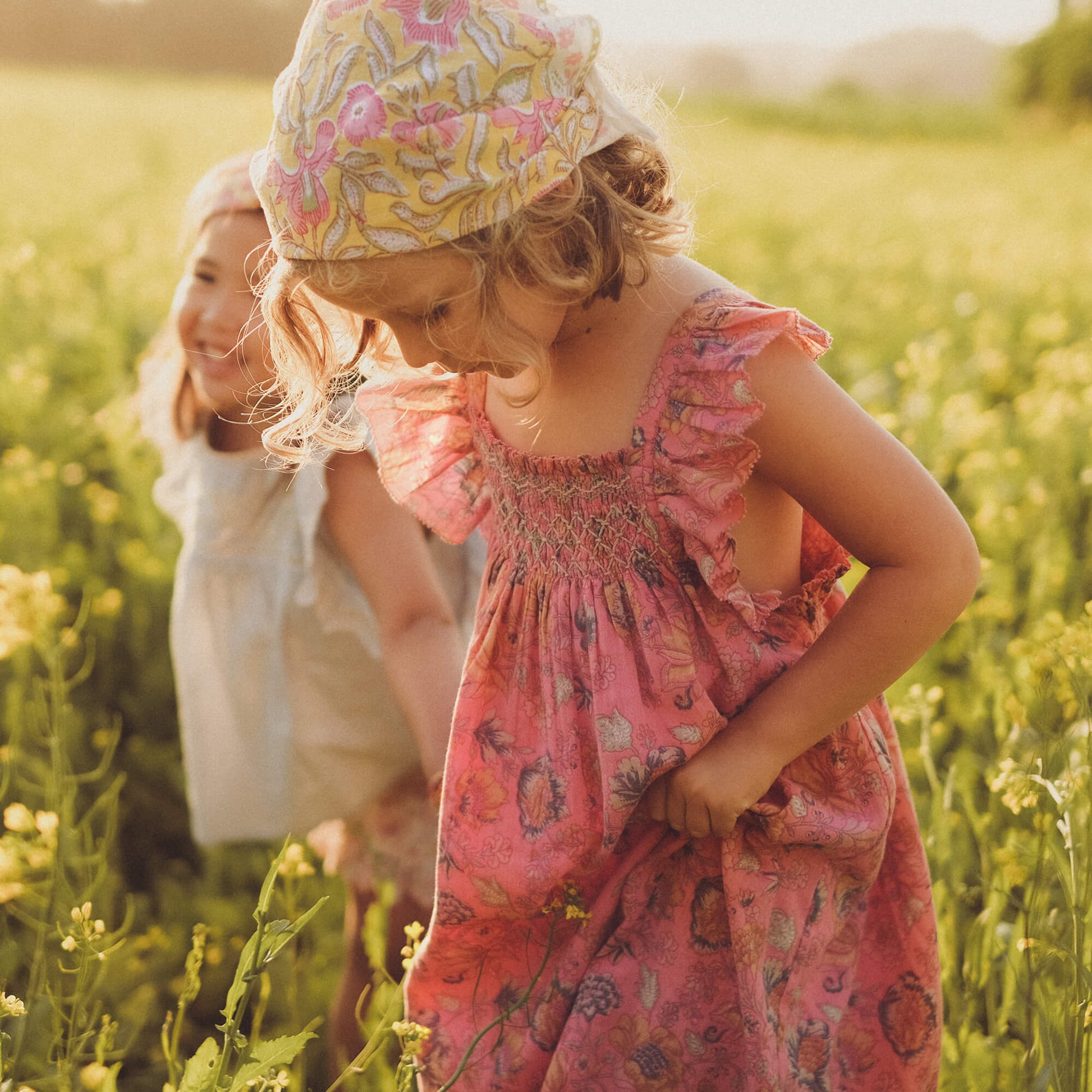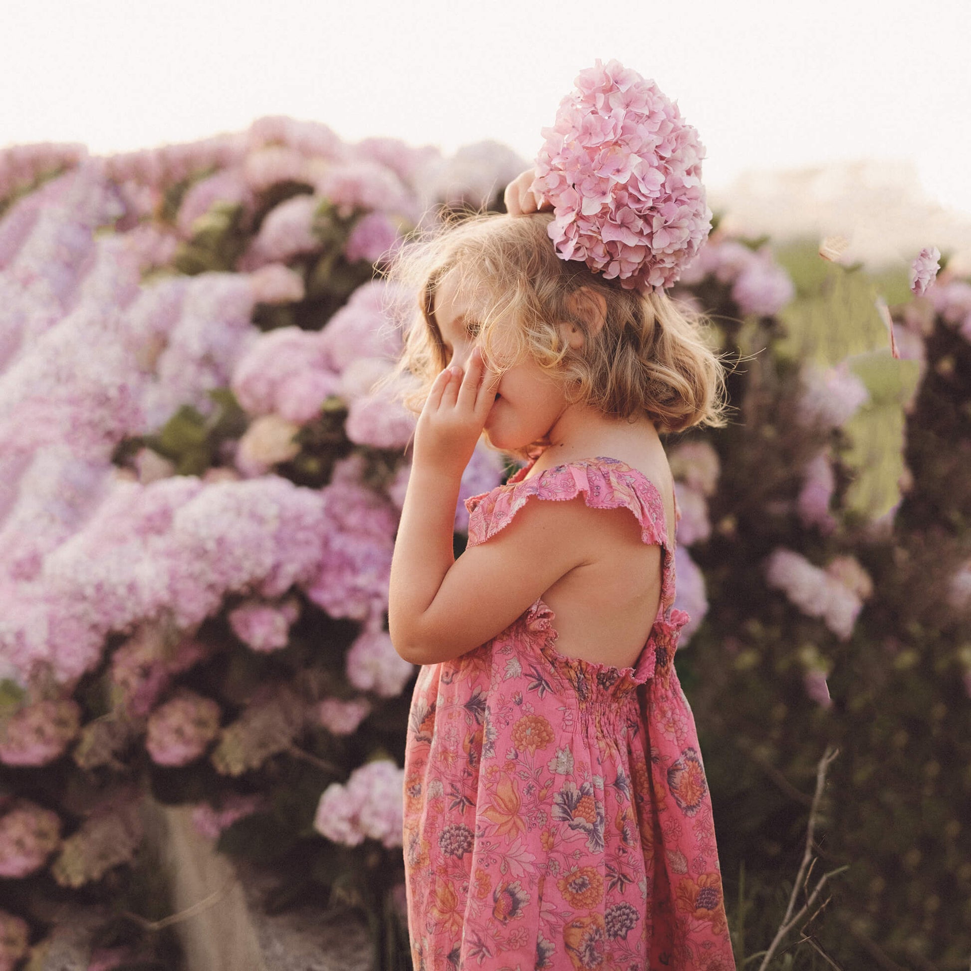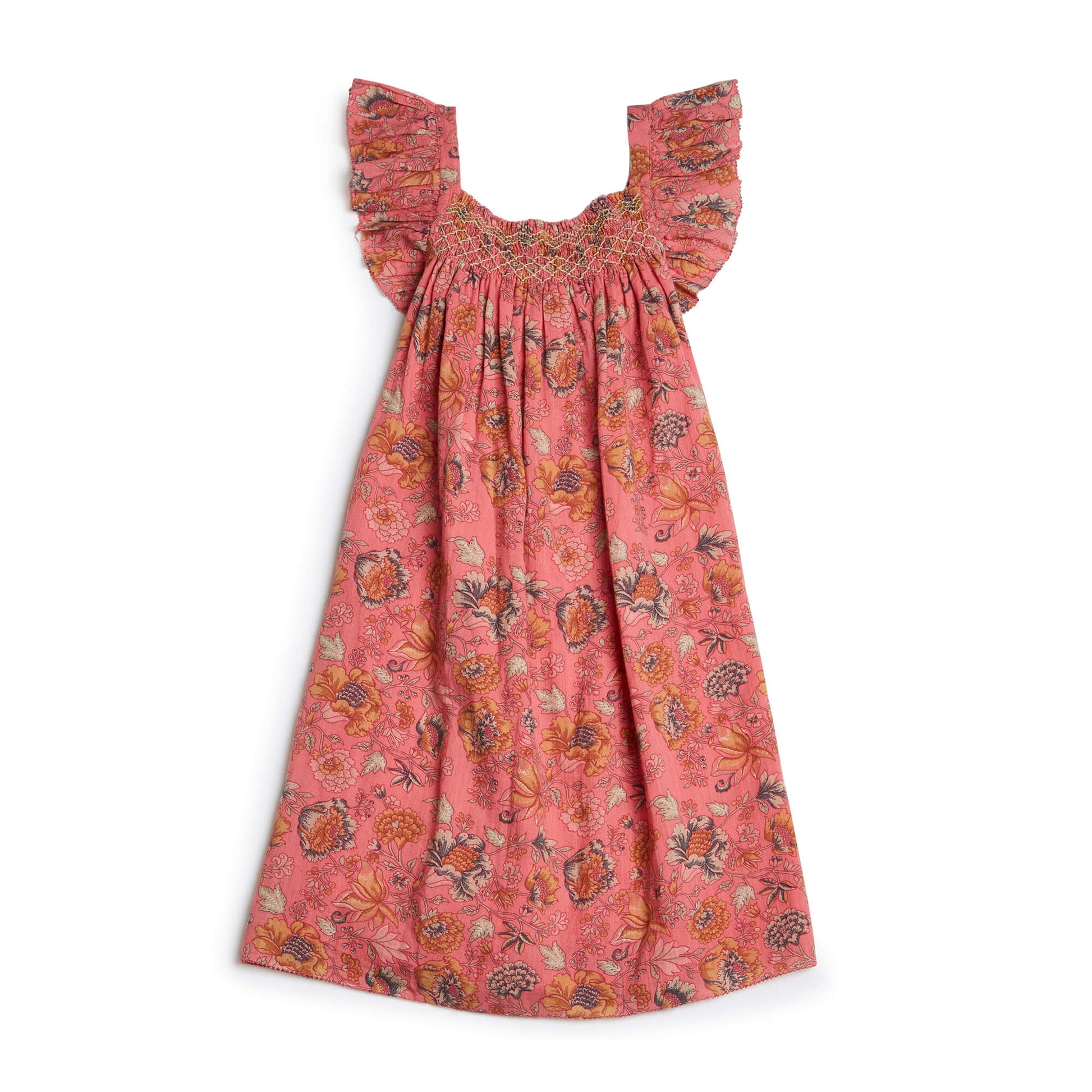 女童粉色花朵棉连衣裙