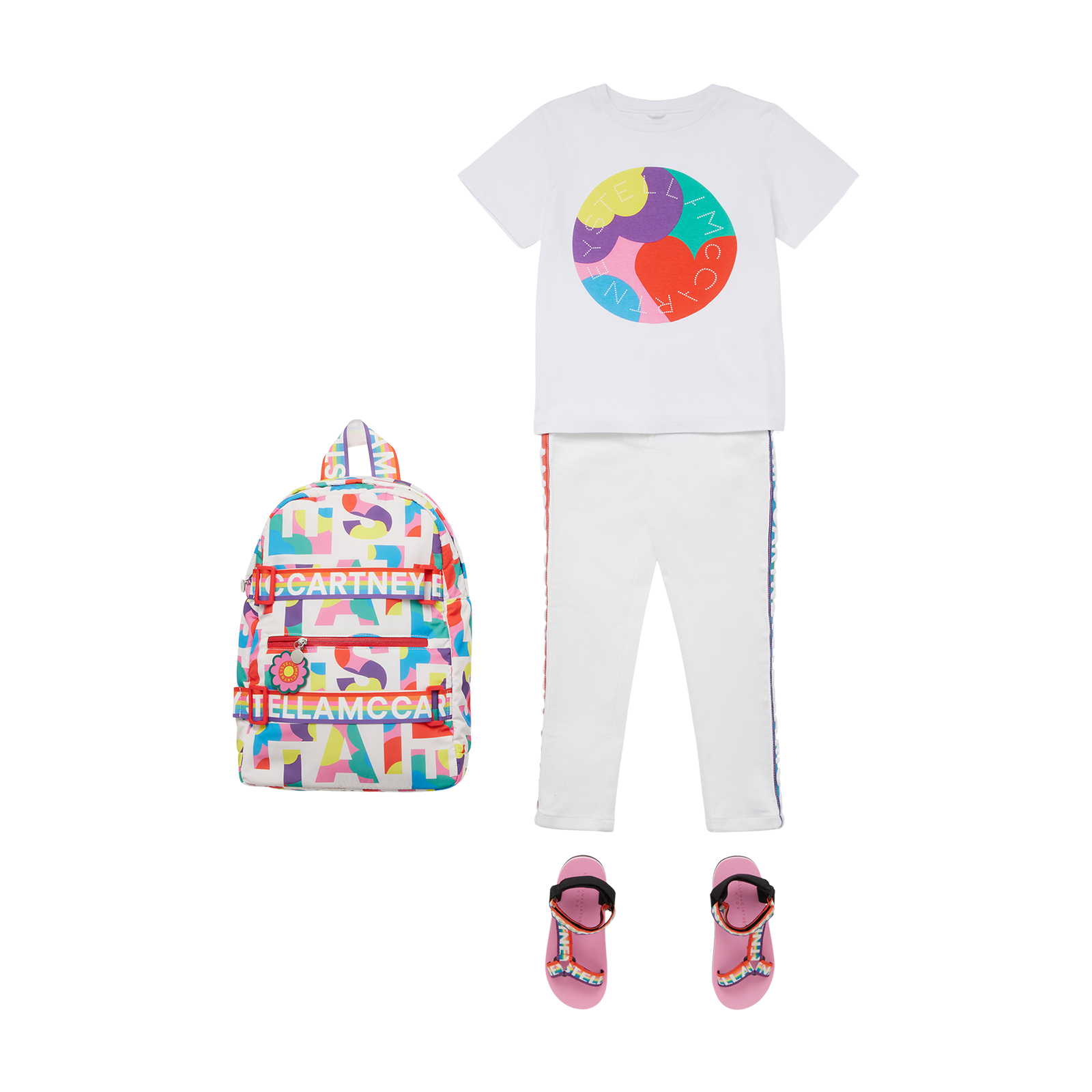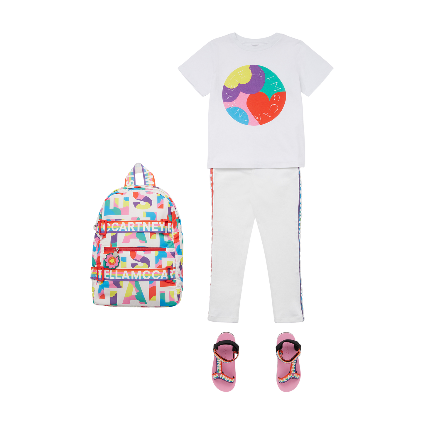 女童白色Logo棉长裤