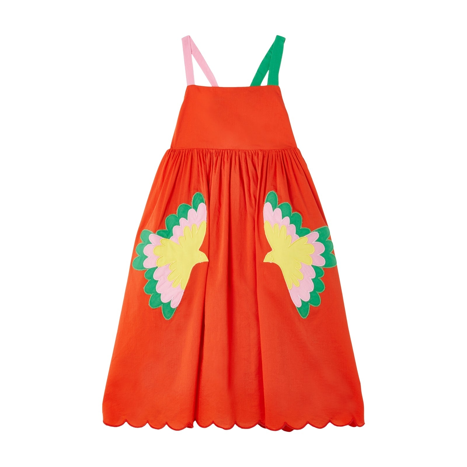 女童红色刺绣棉连衣裙