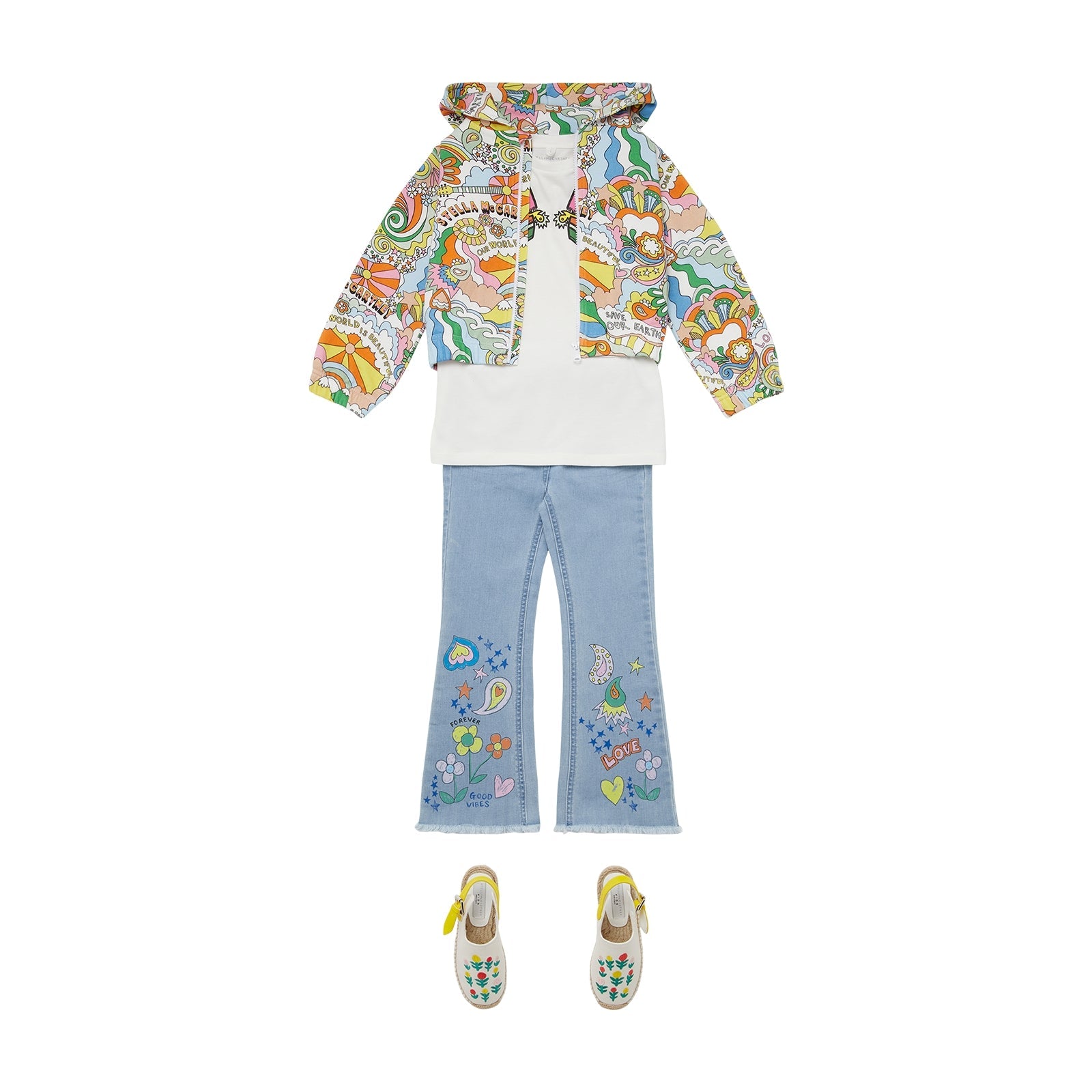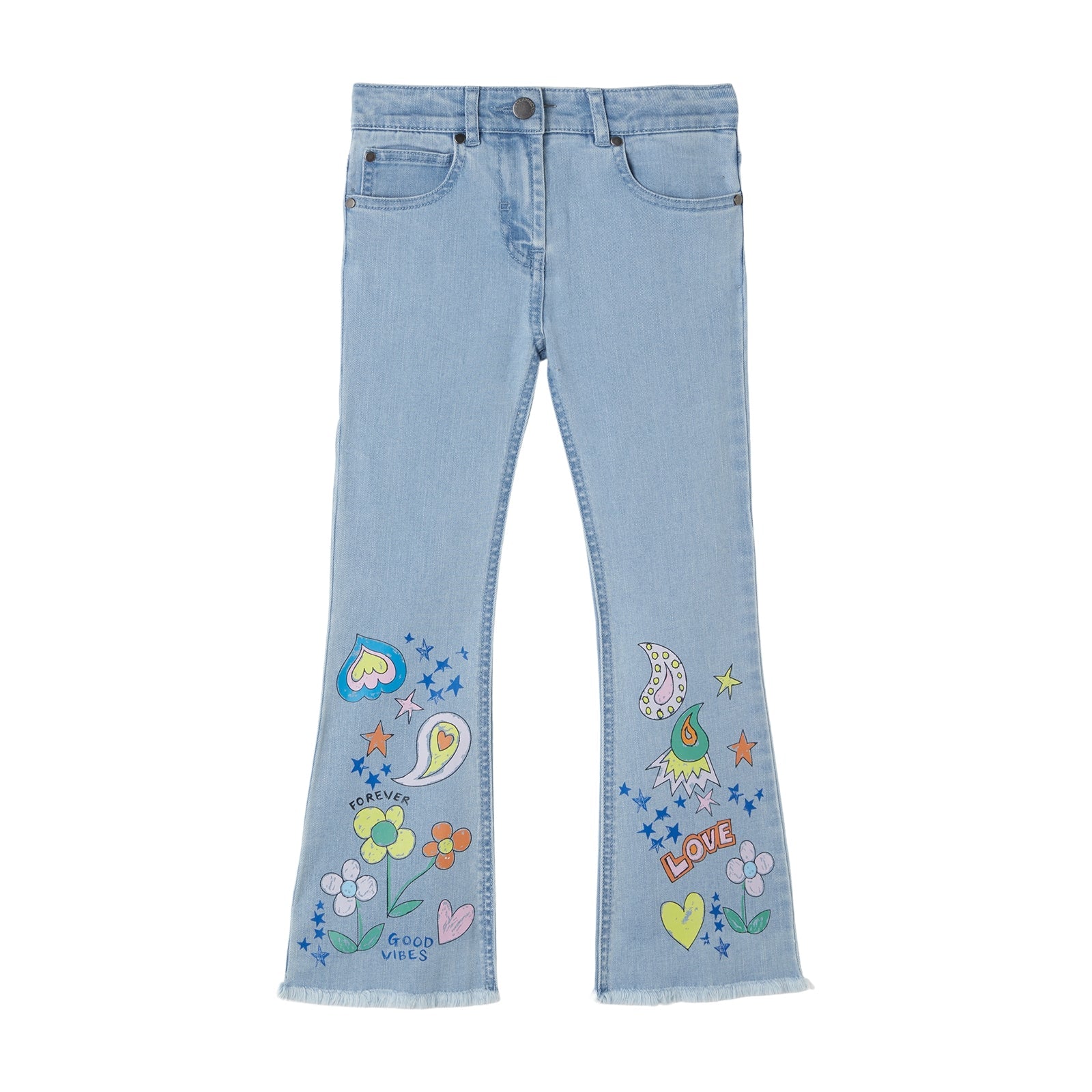 女童浅蓝色印花牛仔裤