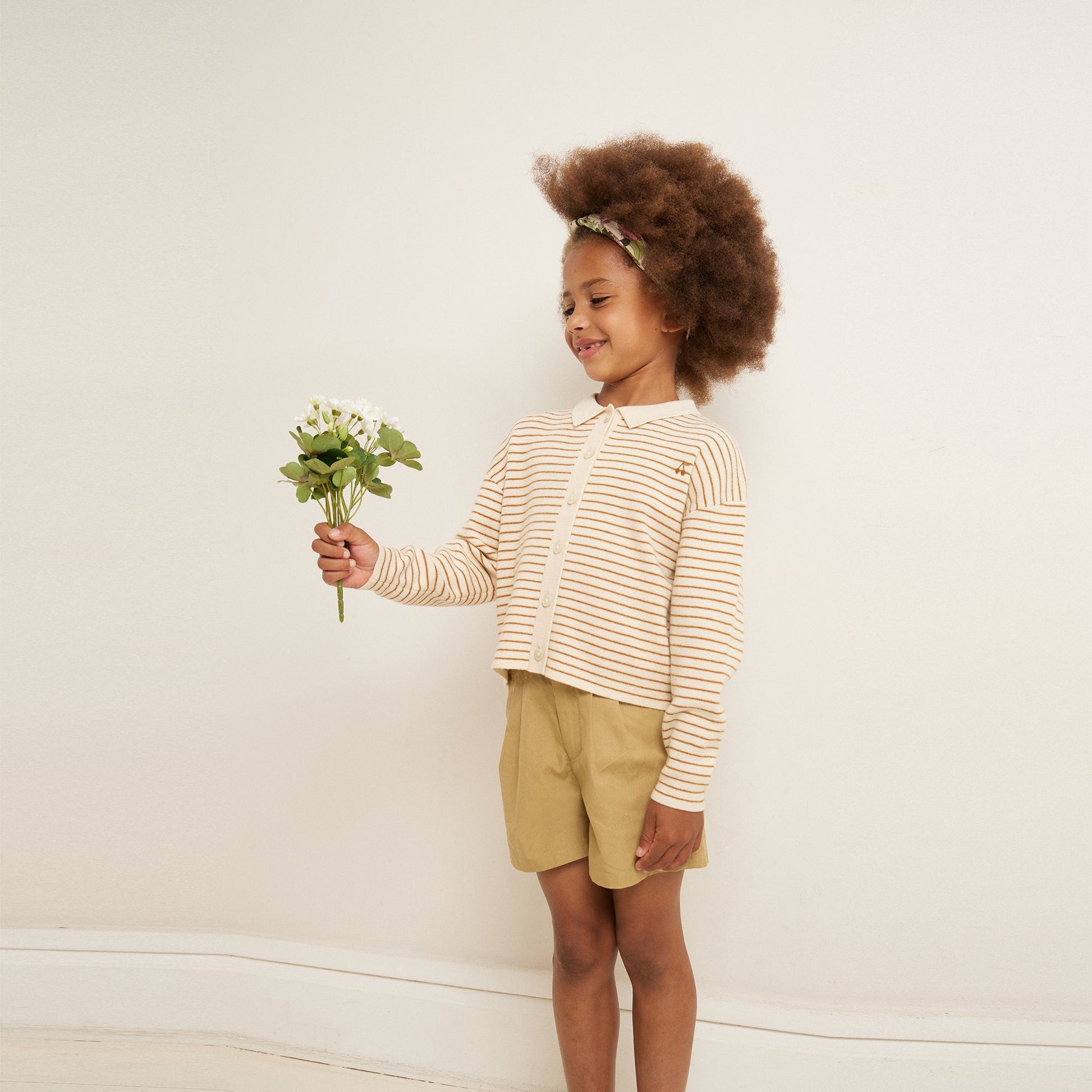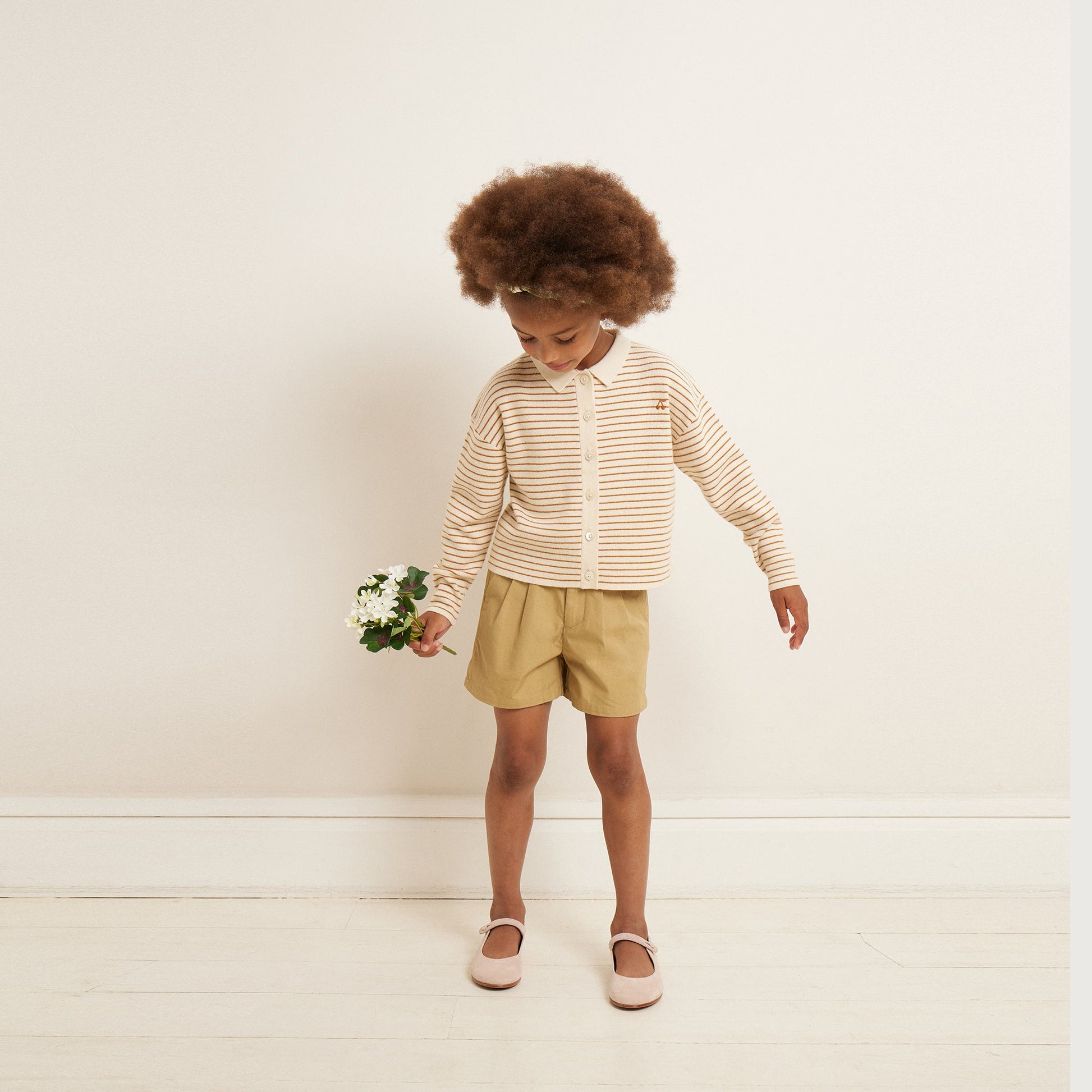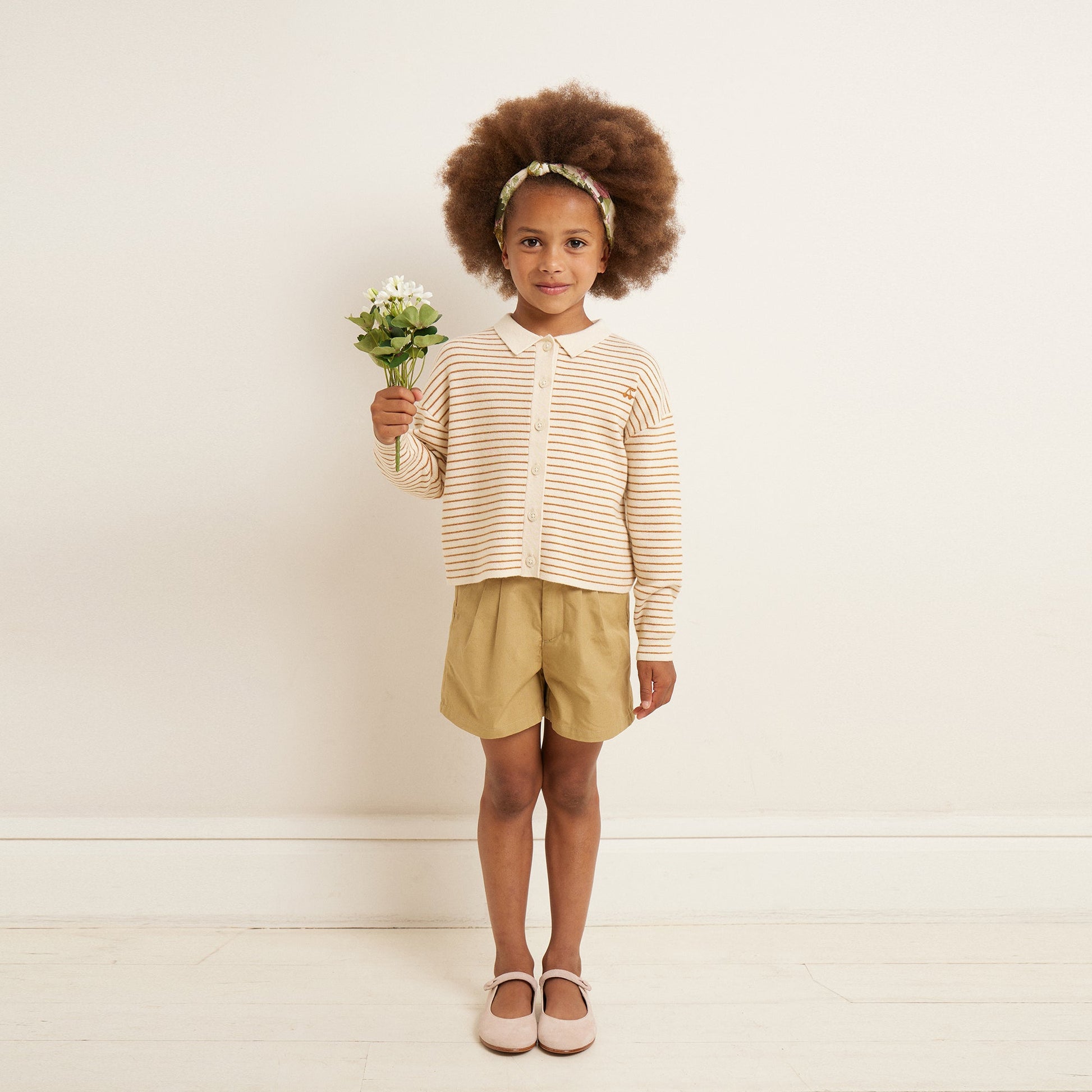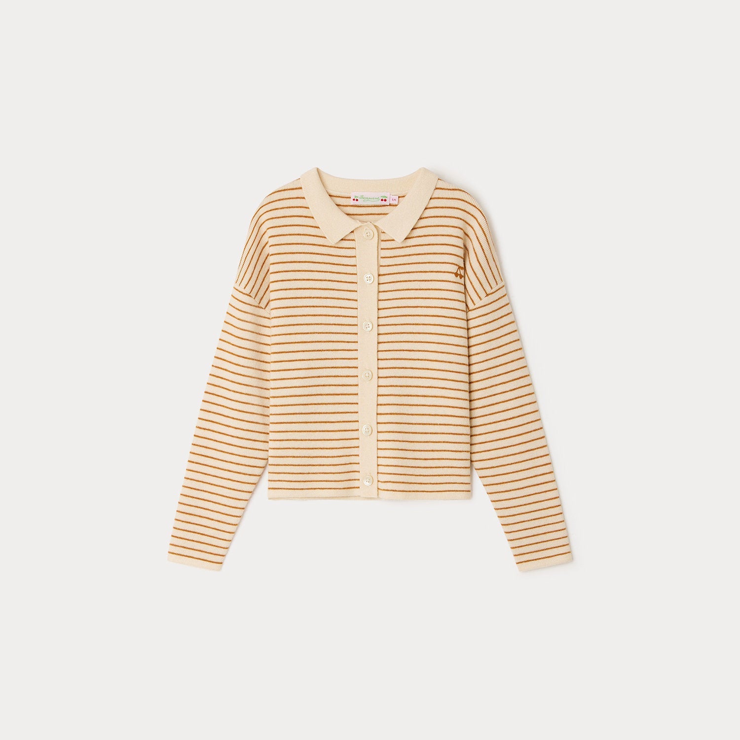 女童米色条纹羊毛开衫