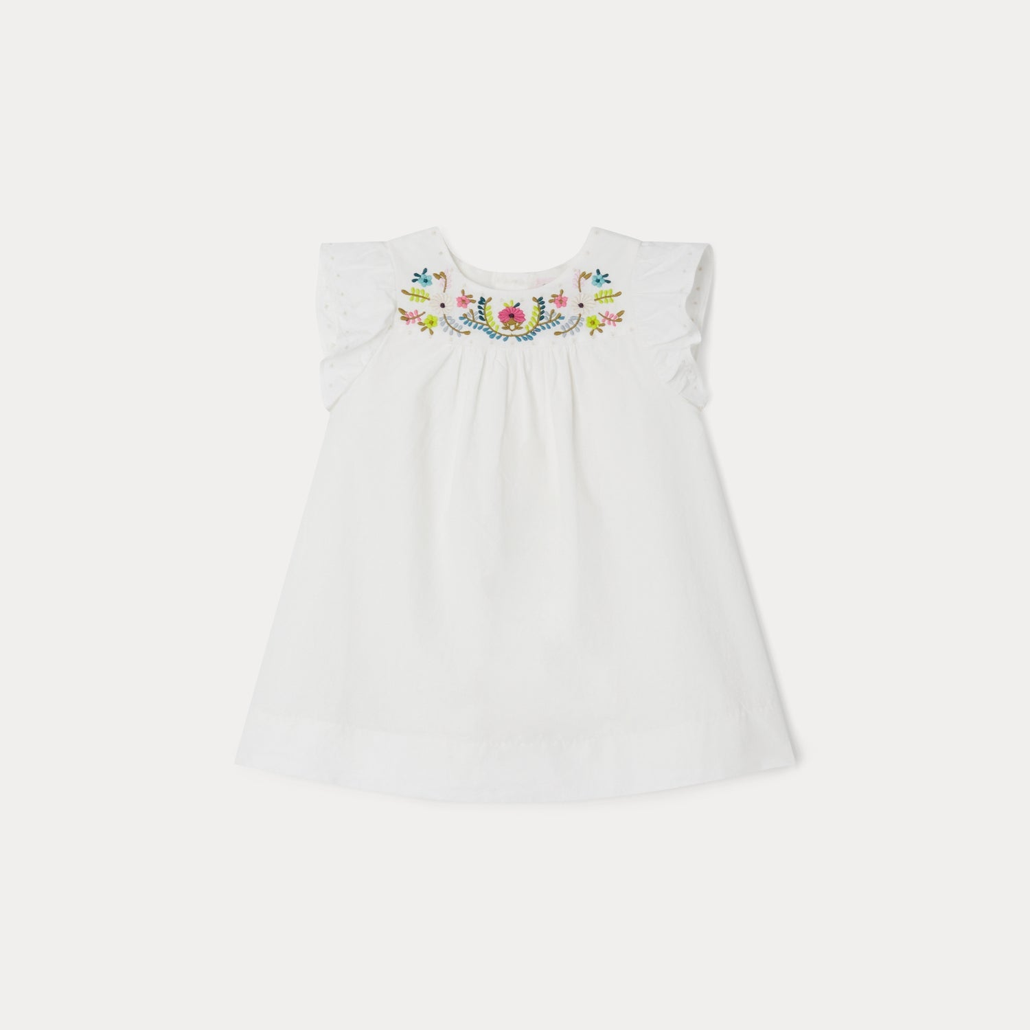 女婴白色刺绣棉连衣裙