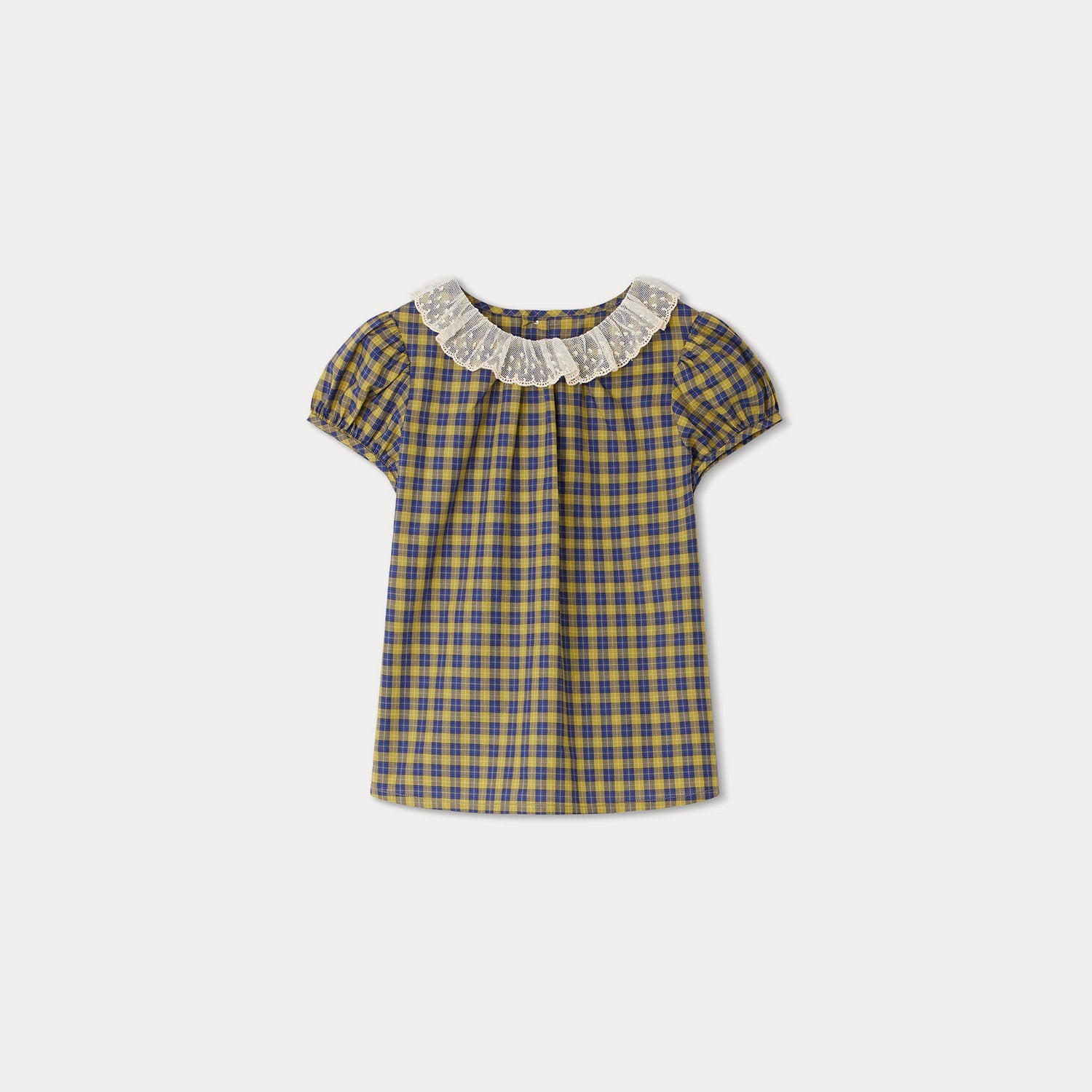 女童黄色格子棉上衣