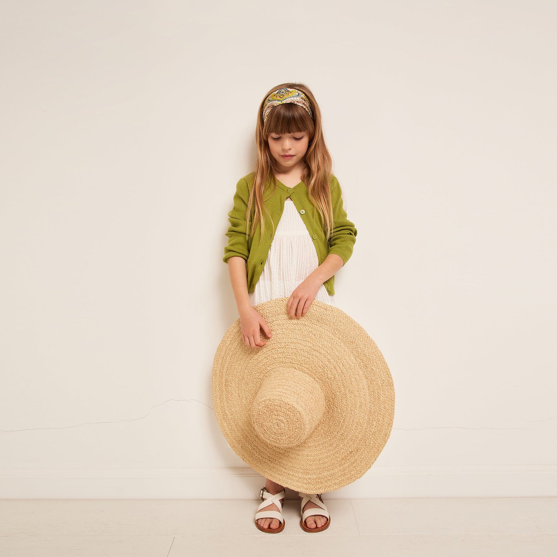 女童绿色棉开衫