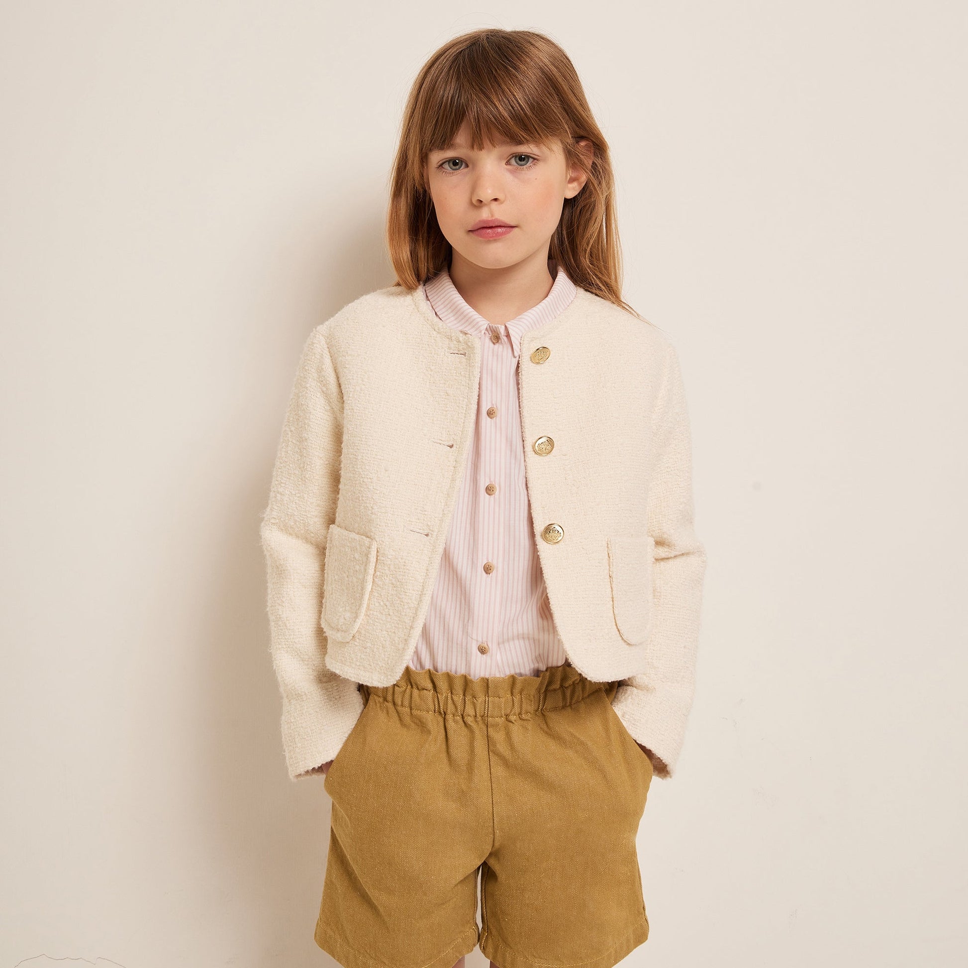 女童粉色条纹棉衬衫