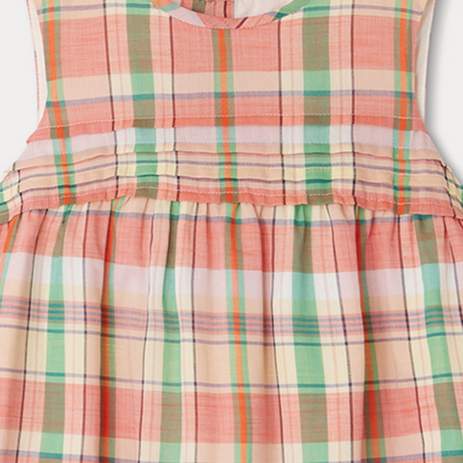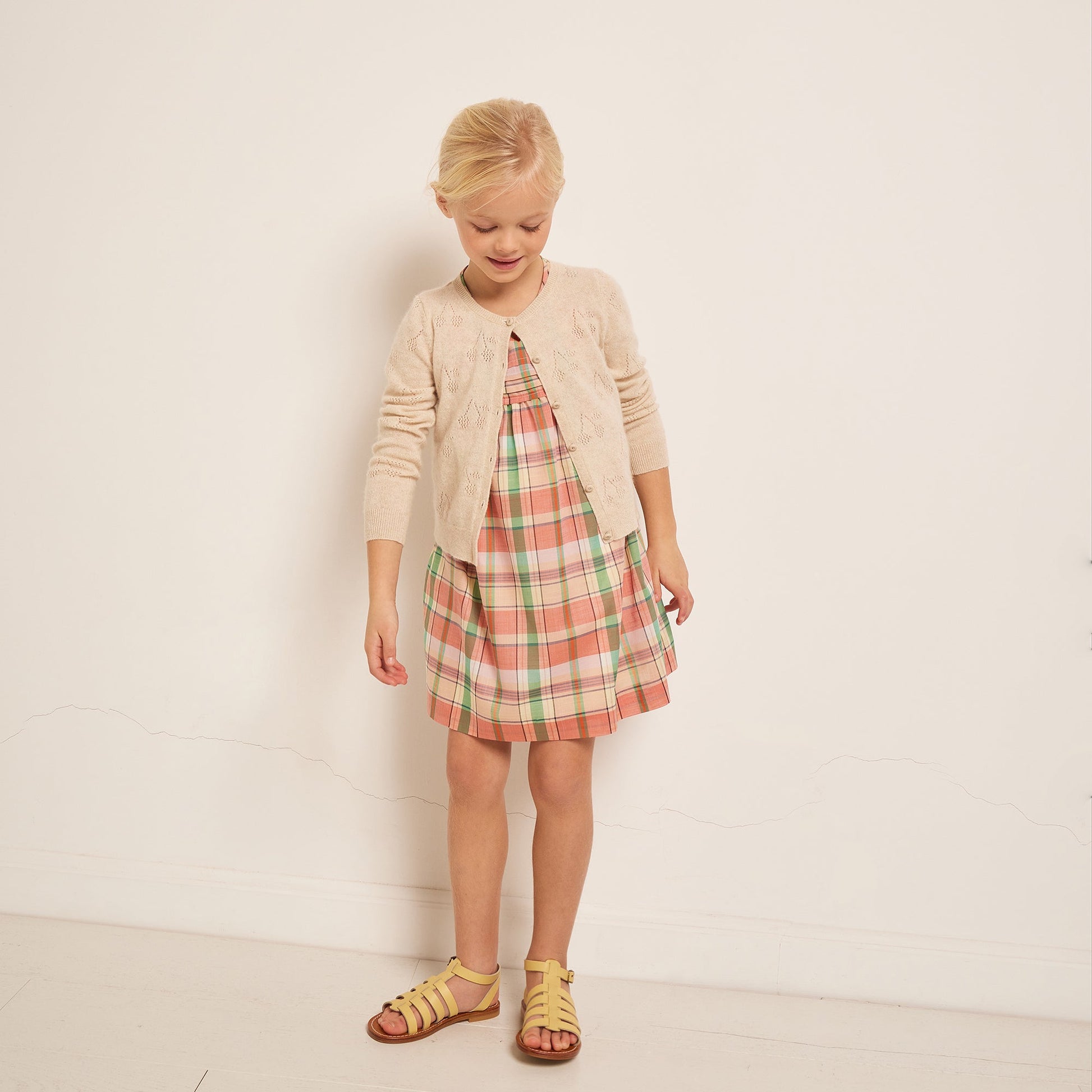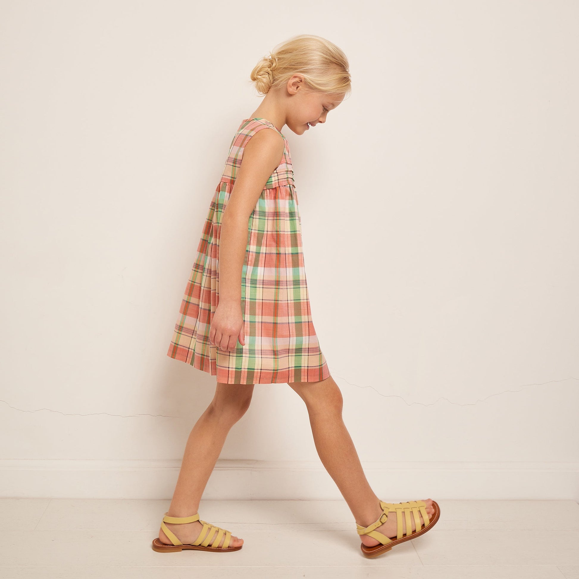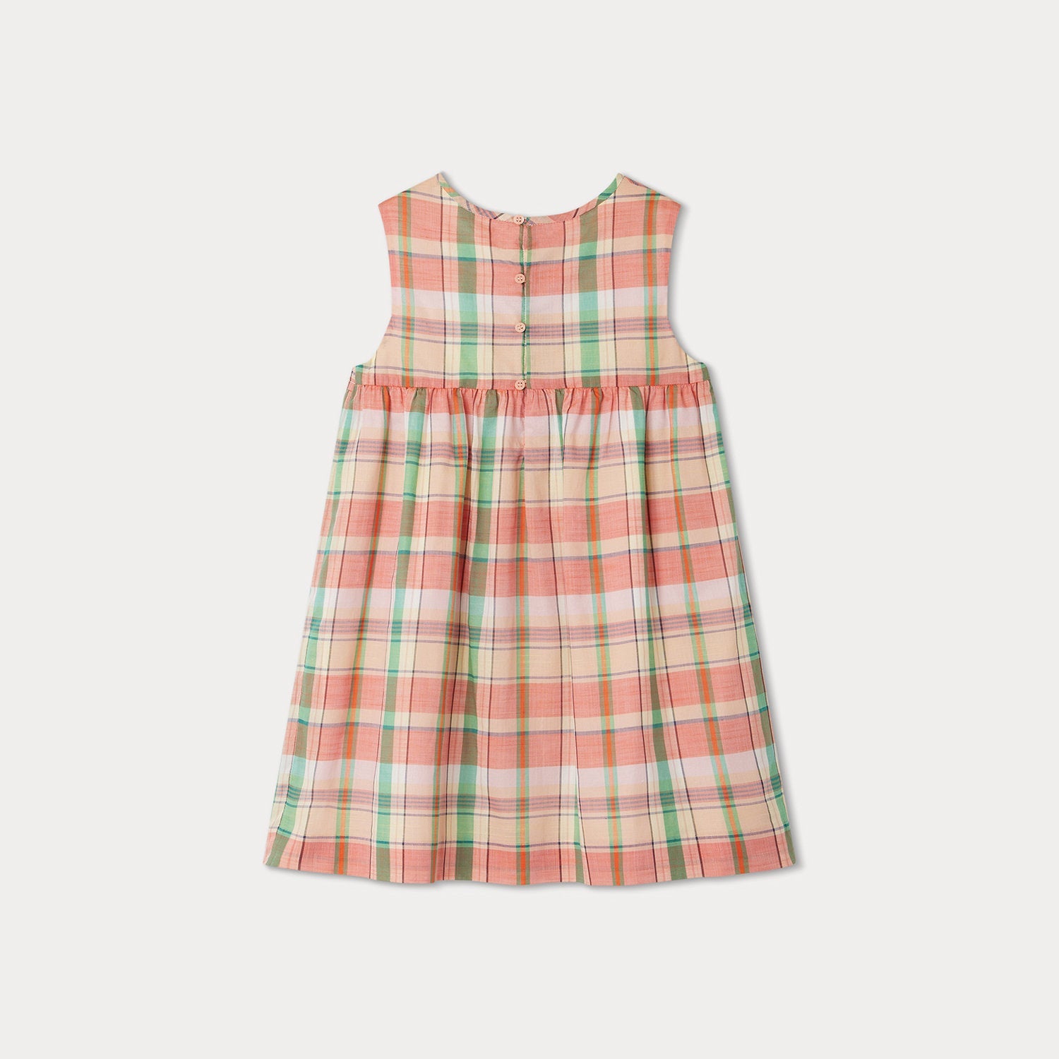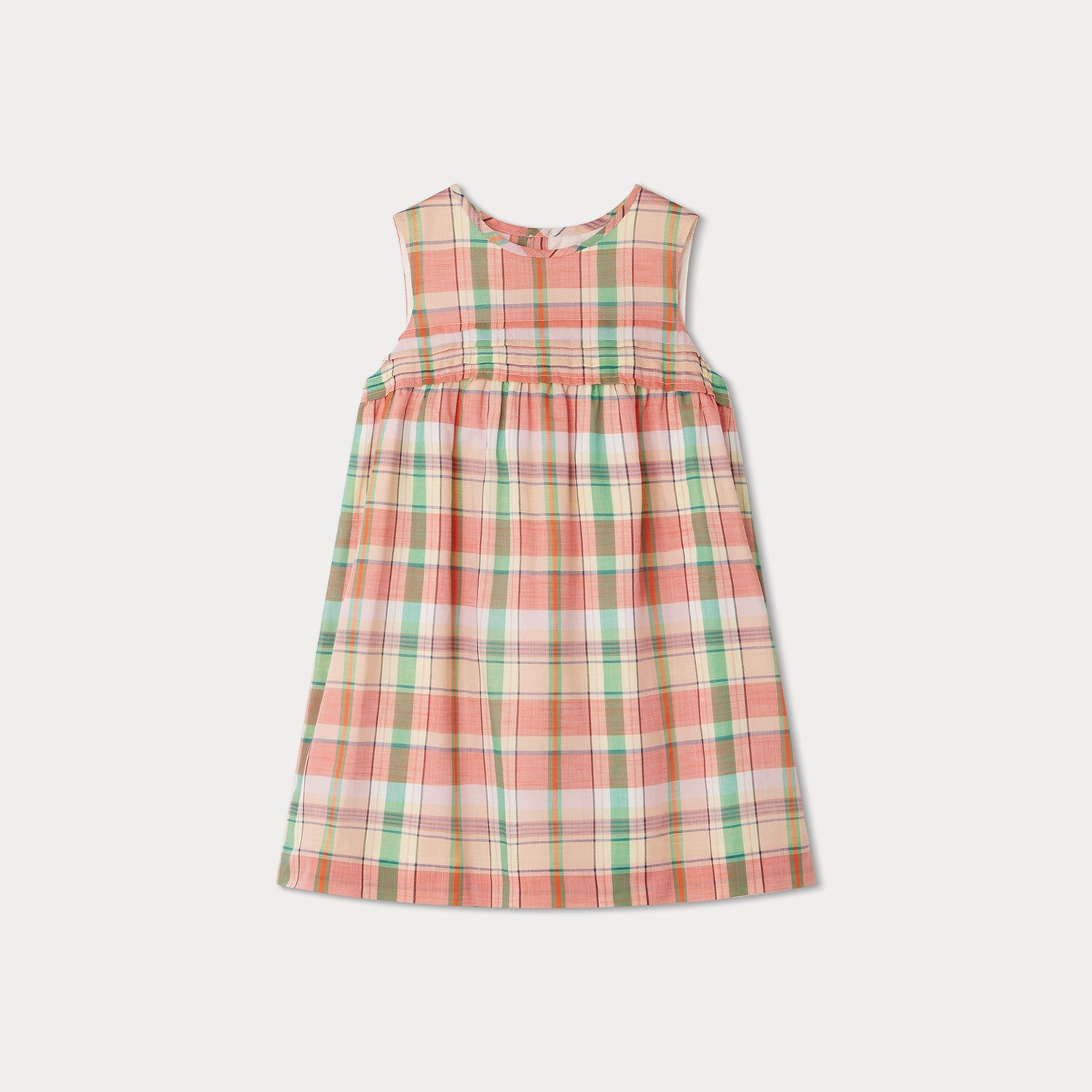 女童粉色格子棉连衣裙