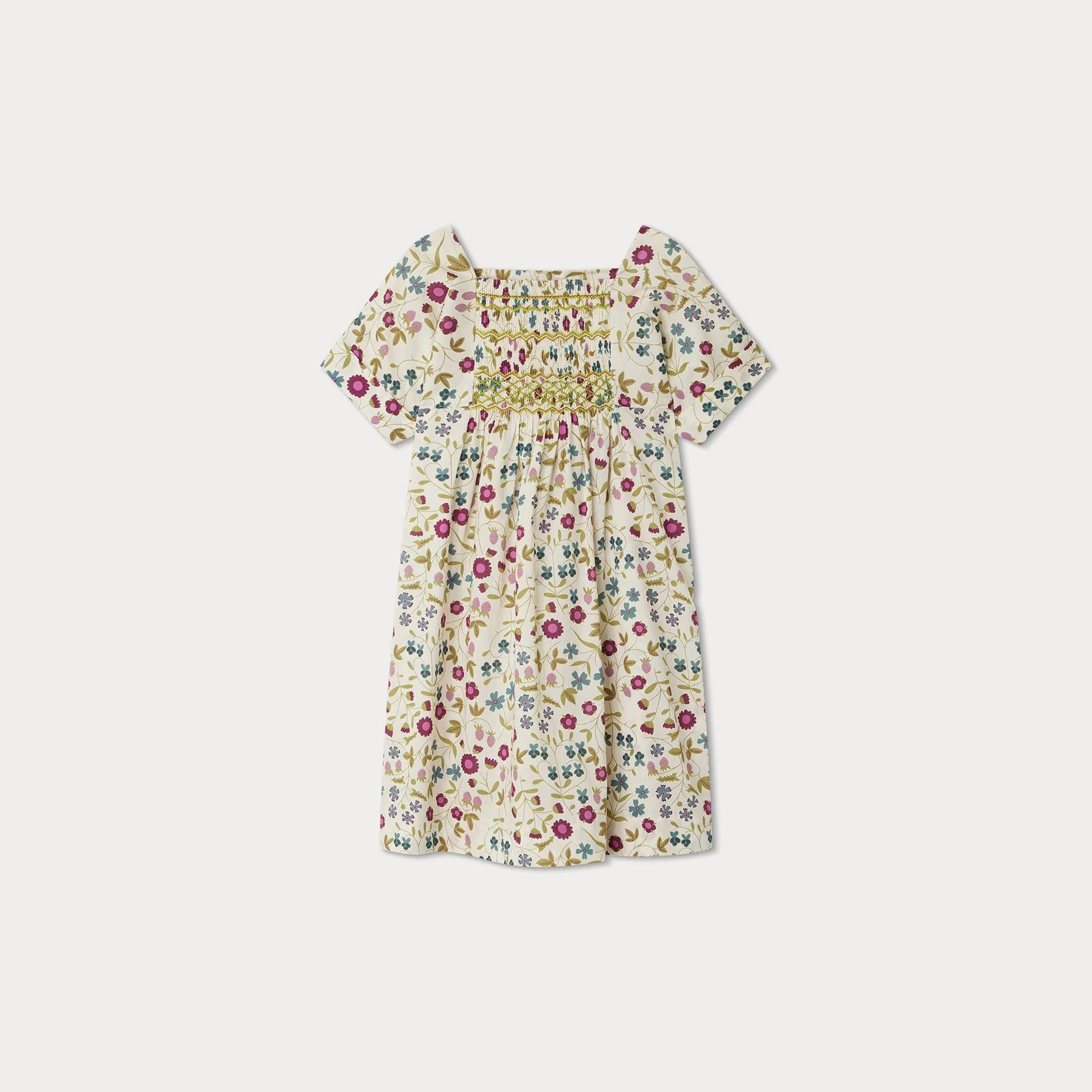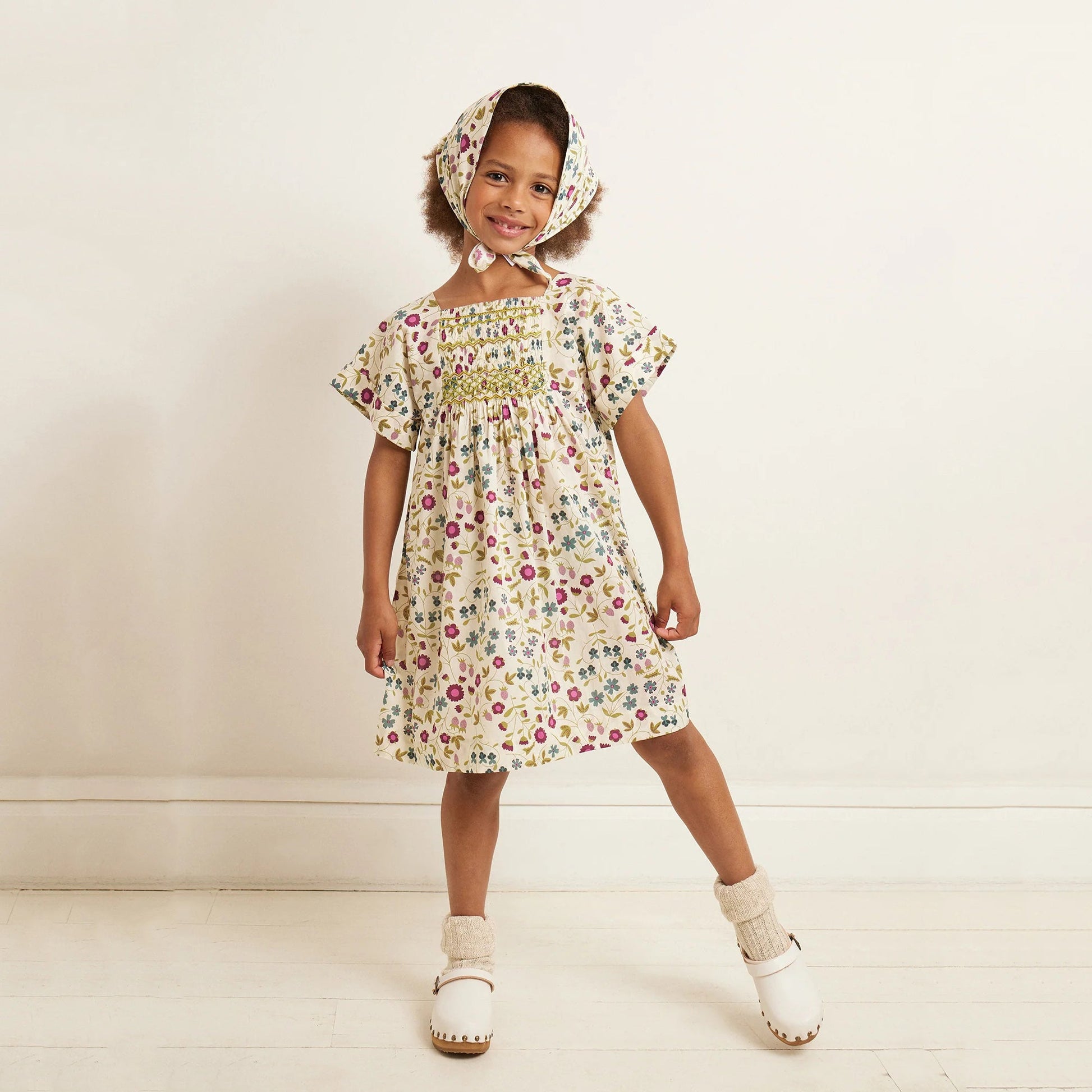 女童白色碎花棉连衣裙