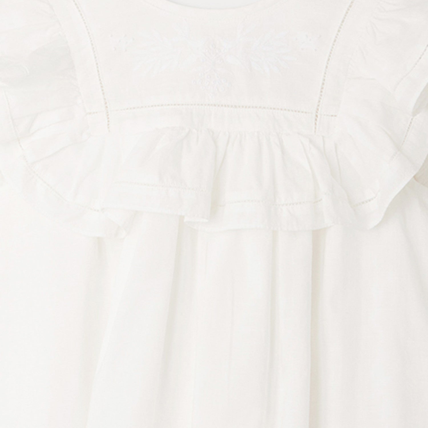 女童白色荷叶边棉连衣裙